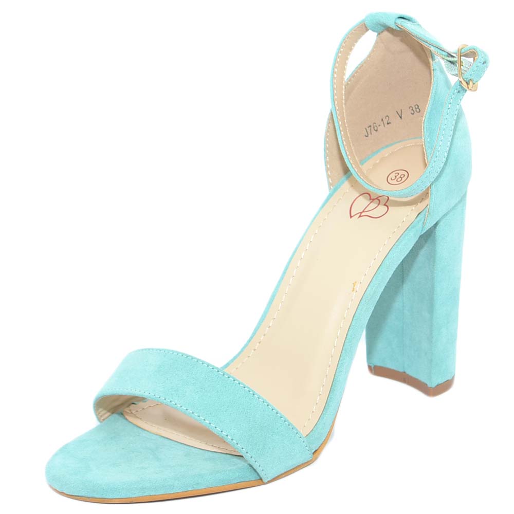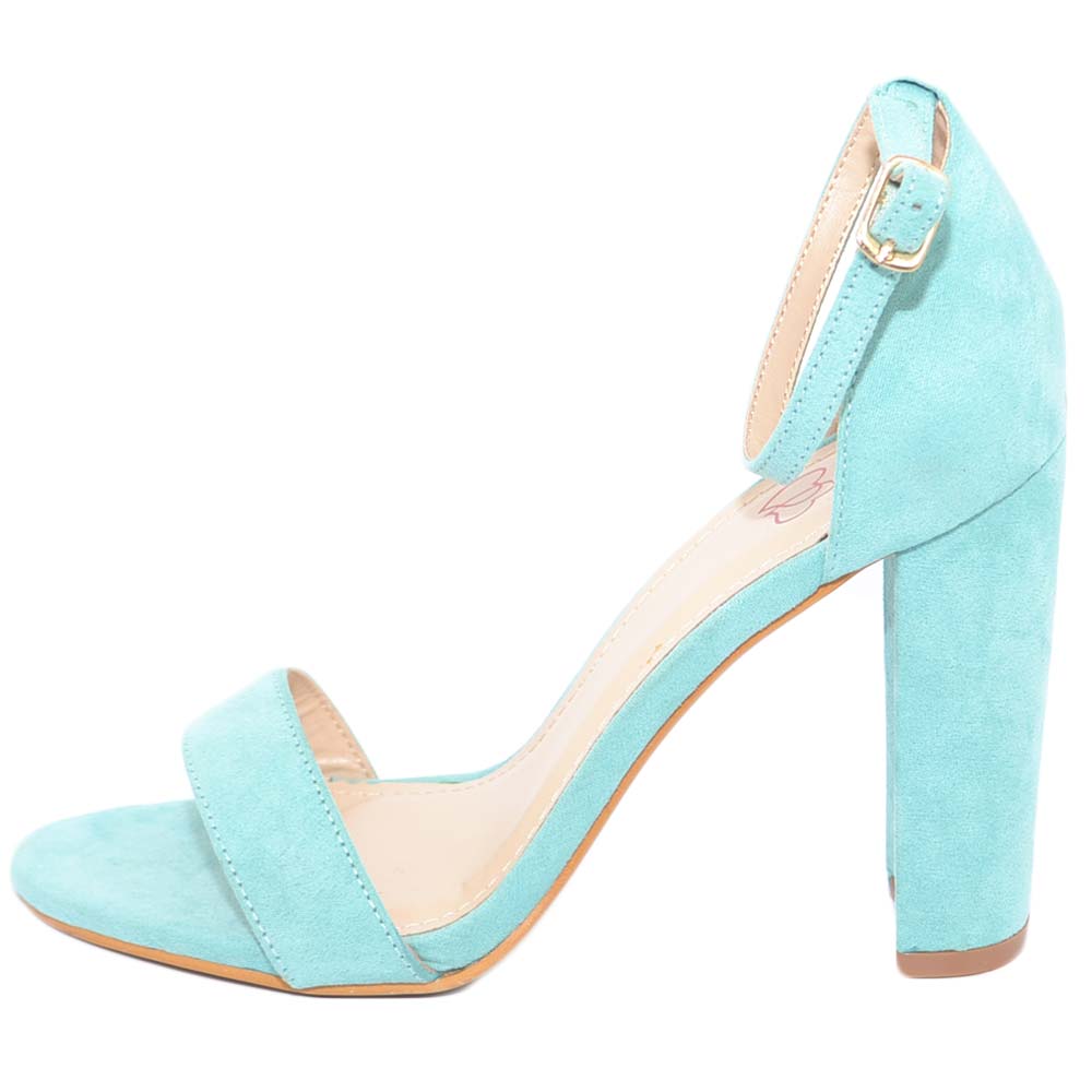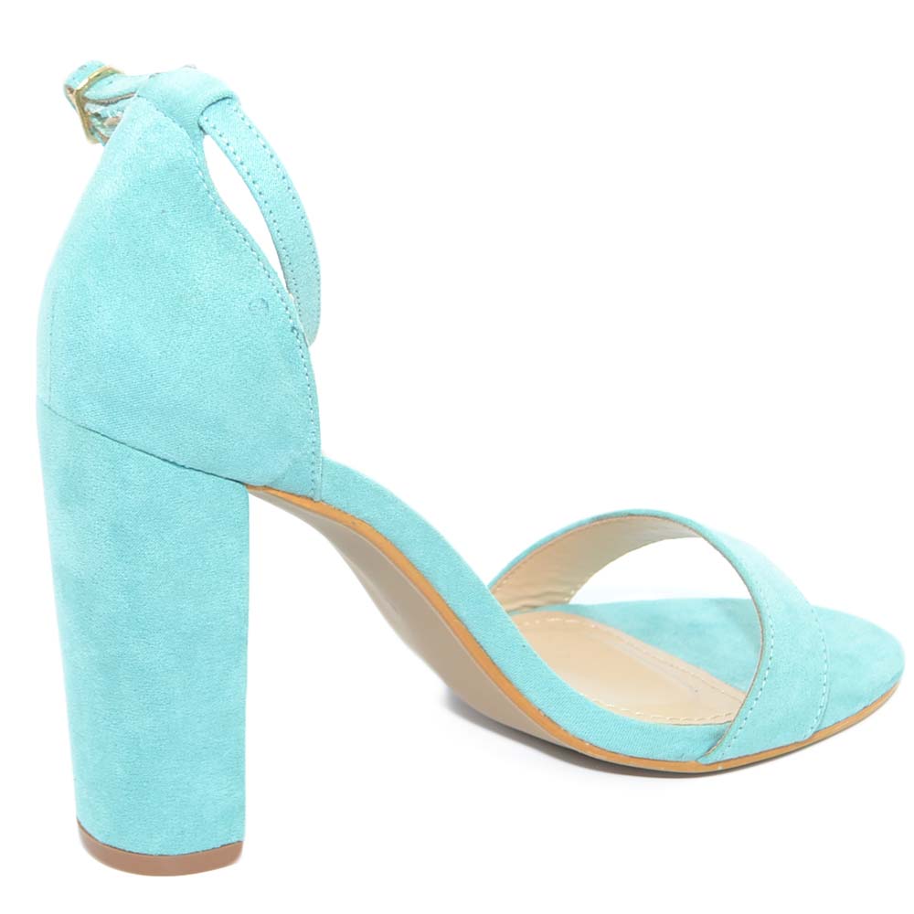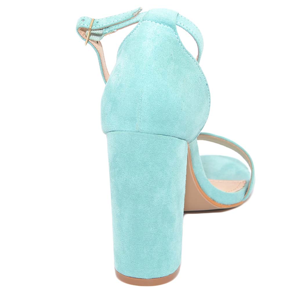 Sandalo donna verde acqua Tiffany scamosciato tacco largo alto 10 cm cinturino alla caviglia linea basic moda comodo