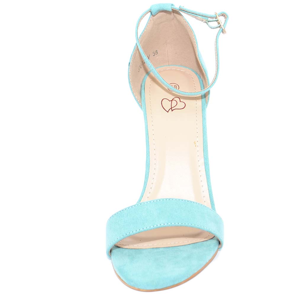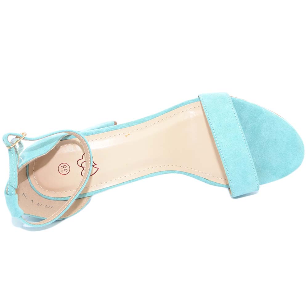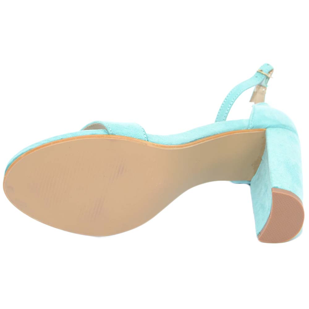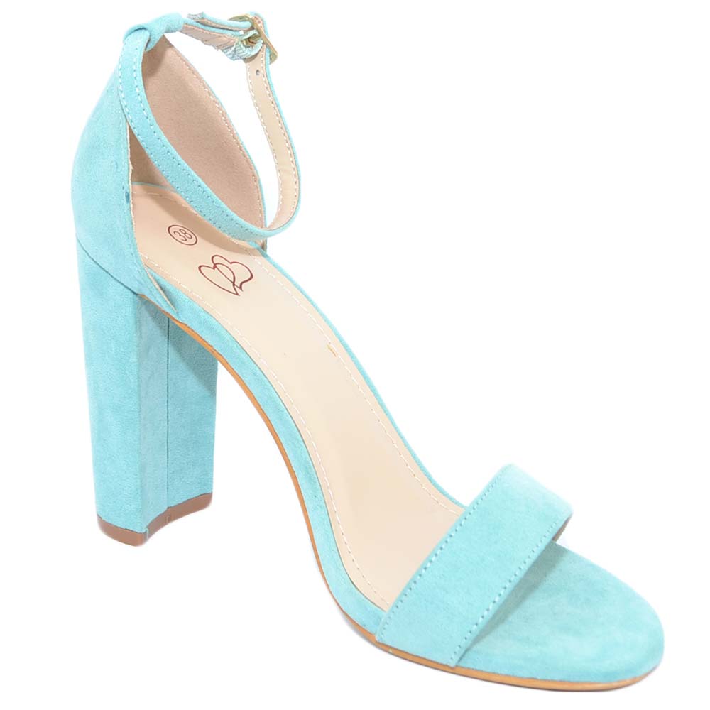 Sandalo donna verde acqua Tiffany scamosciato tacco largo alto 10 cm cinturino alla caviglia linea basic moda comodo