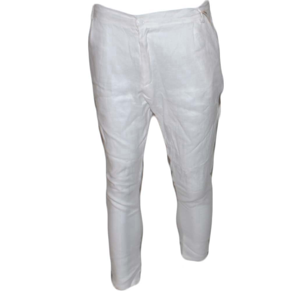 Pantalone Uomo Classic Tinta Unita Bianco Tasca America Cavallo Basso Misto Lino Viscosa Moda Giovanile