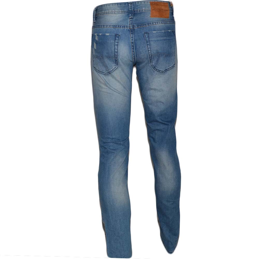 Jeans denim uomo jogger fit cavallo basso lavaggio chiaro Cinque tasche cerniera e bottone con strappi made in Italy.