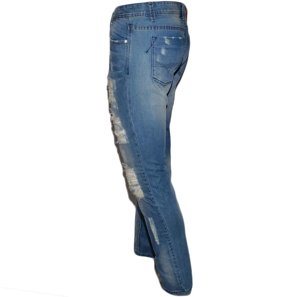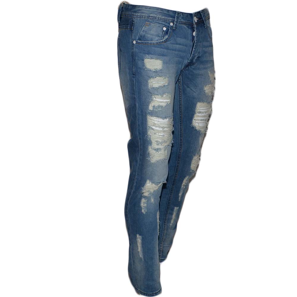 Pantalone Jeans Uomo Denim Rotture Mod Jeans Effetto Sfumato Cinque Tasche Con Rotture Moda Giovanile