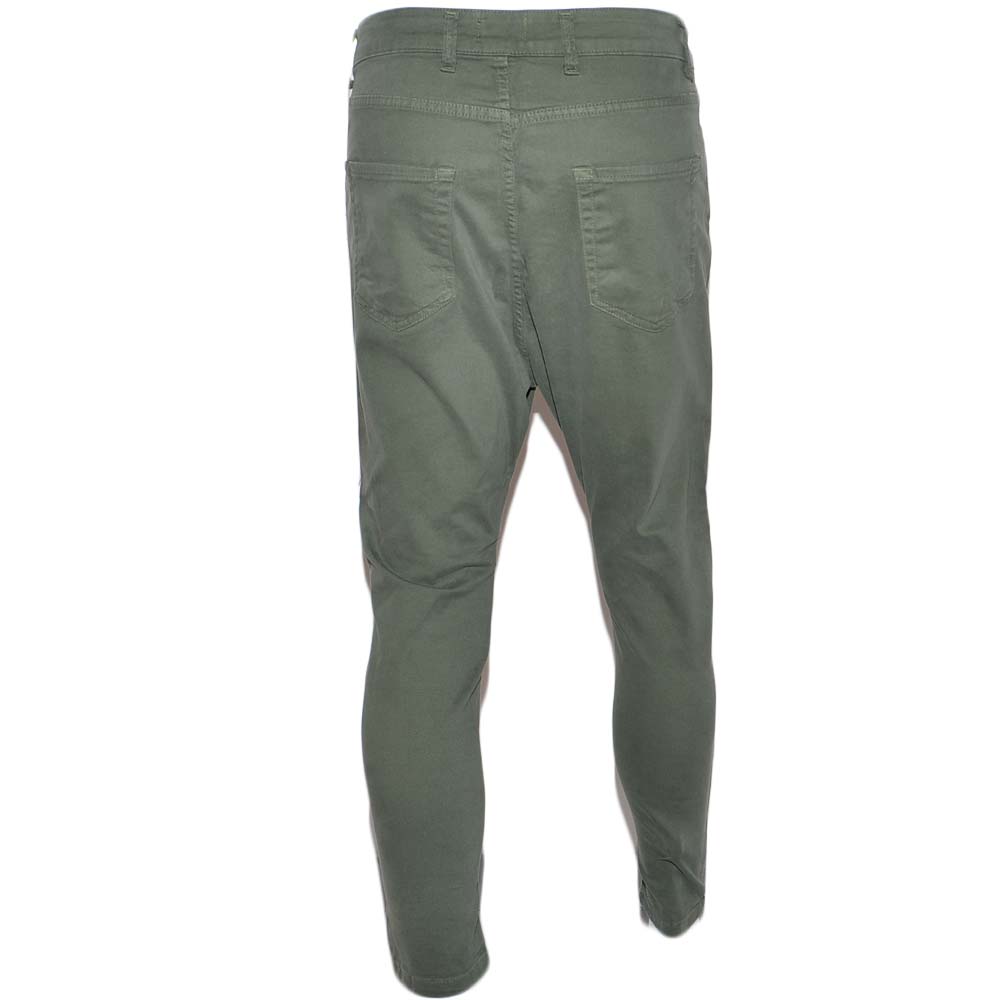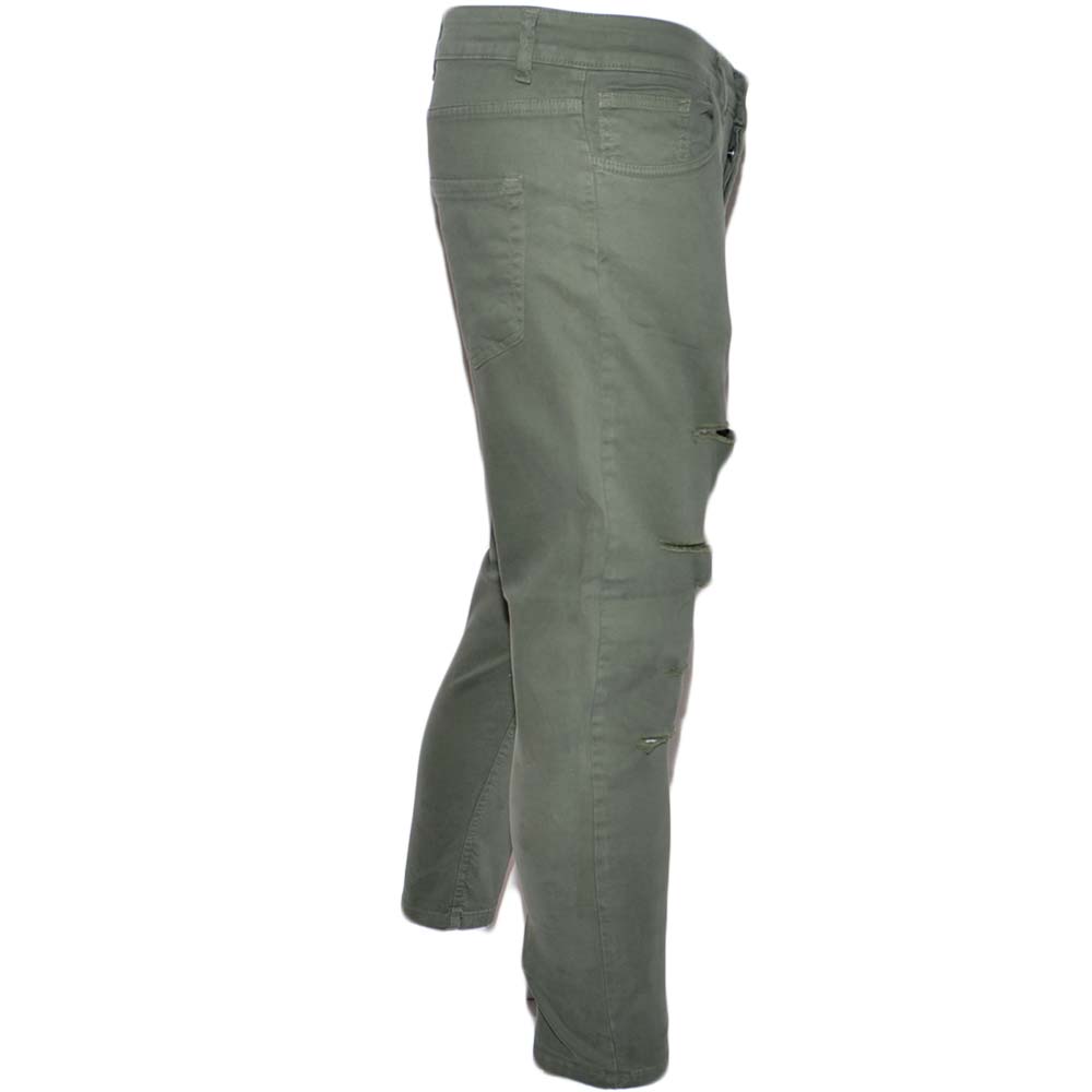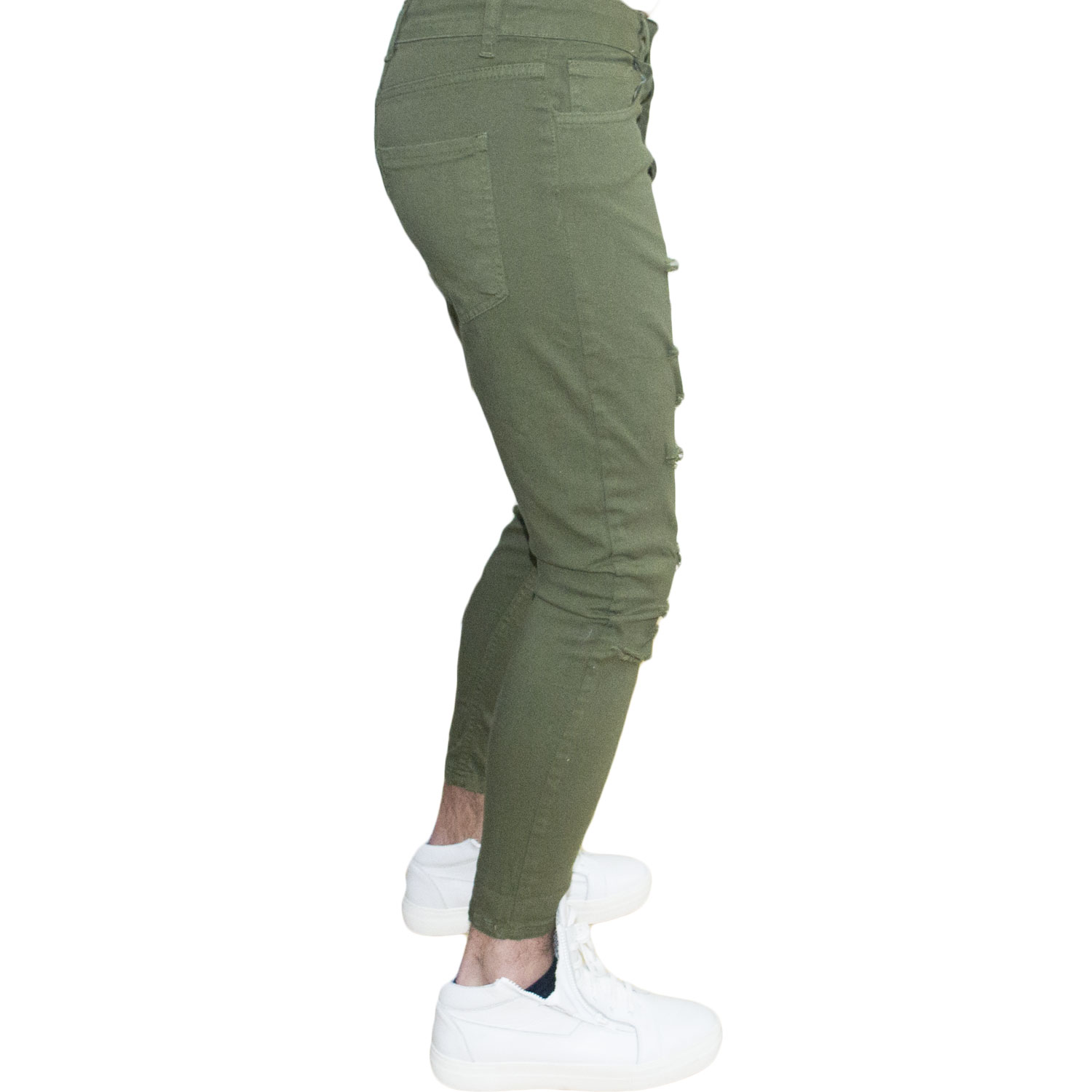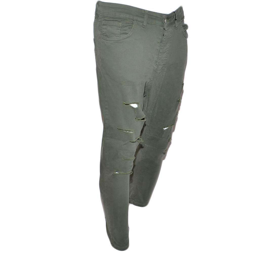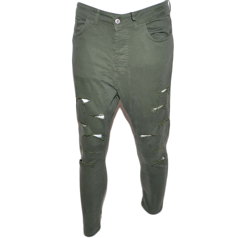 Pantaloni uomo verde militare chino con strappi slim fit in cotone tinta unita linea giovane elasticizzato