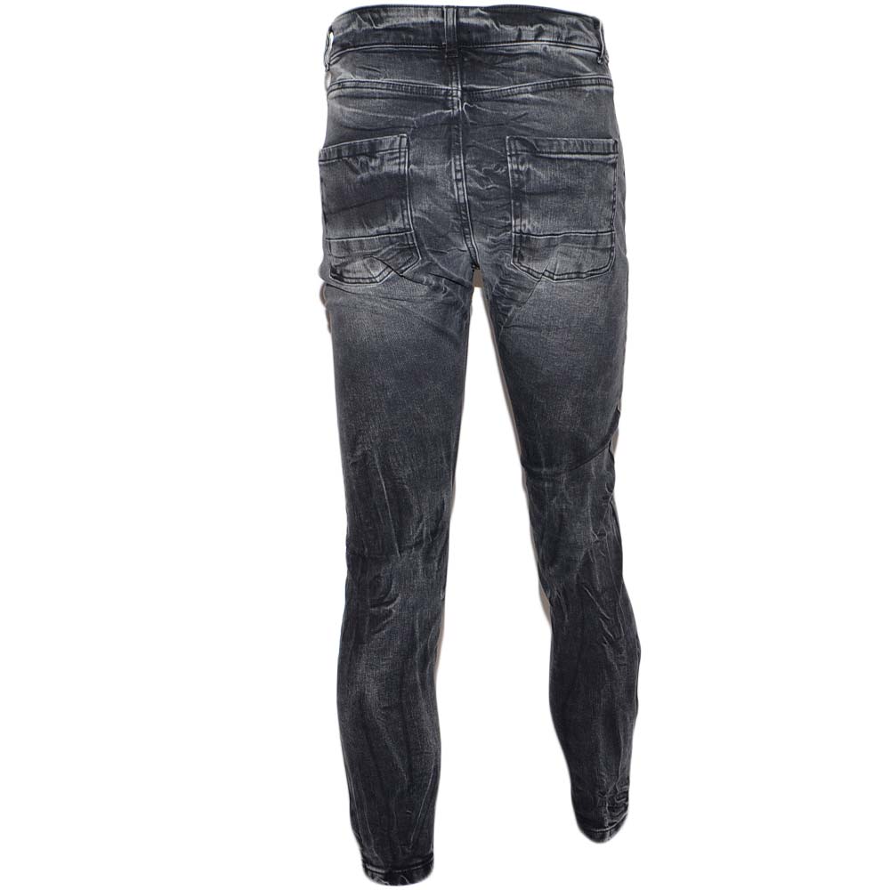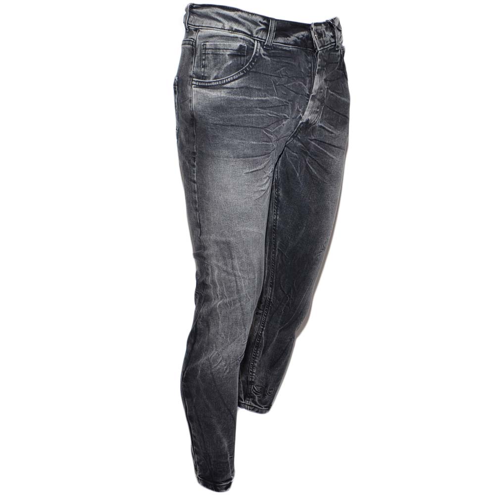 Jeans uomo nero denim lavaggio graduale slim fit a cavallo basso 4 tasche moda cross elasticizzato tendenza