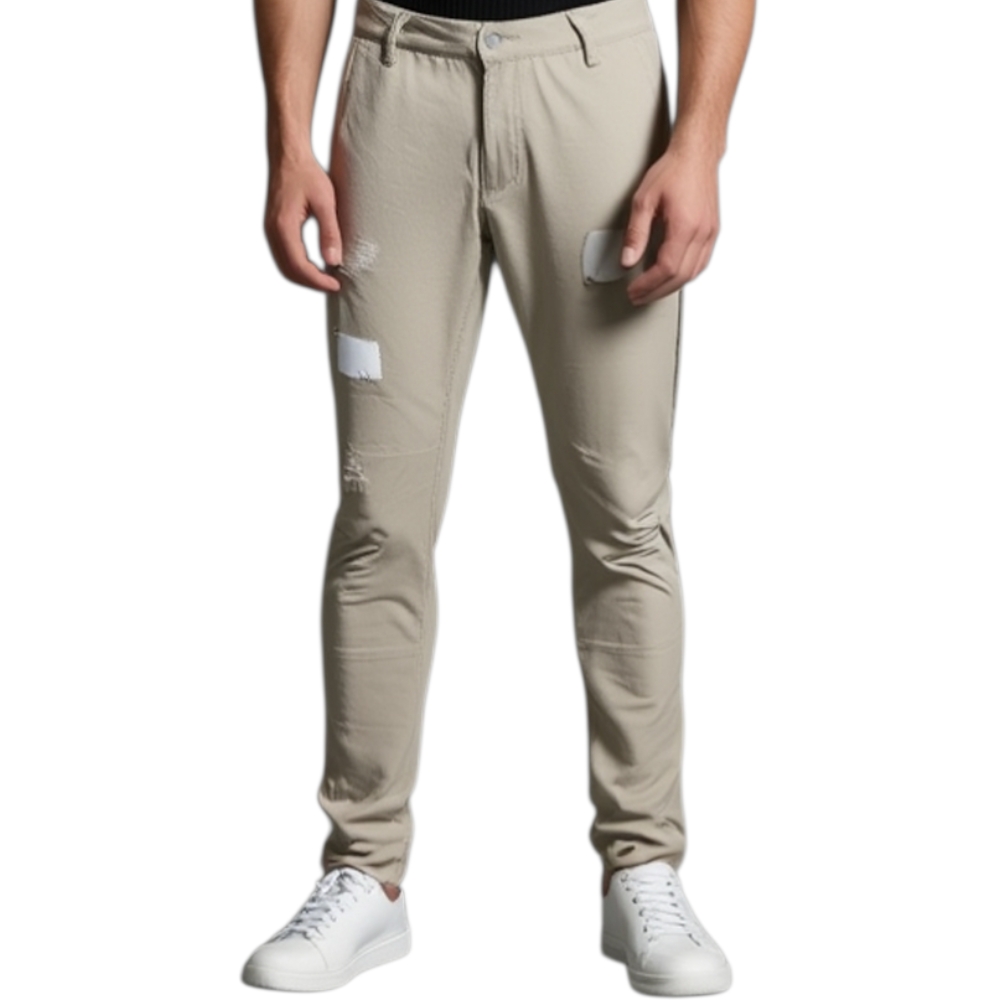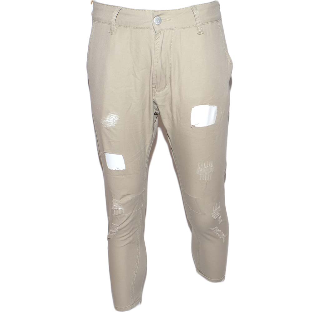 Pantaloni jogger neri beige con bottone e tasche laterali con strappi e toppe cavallo basso moda giovane