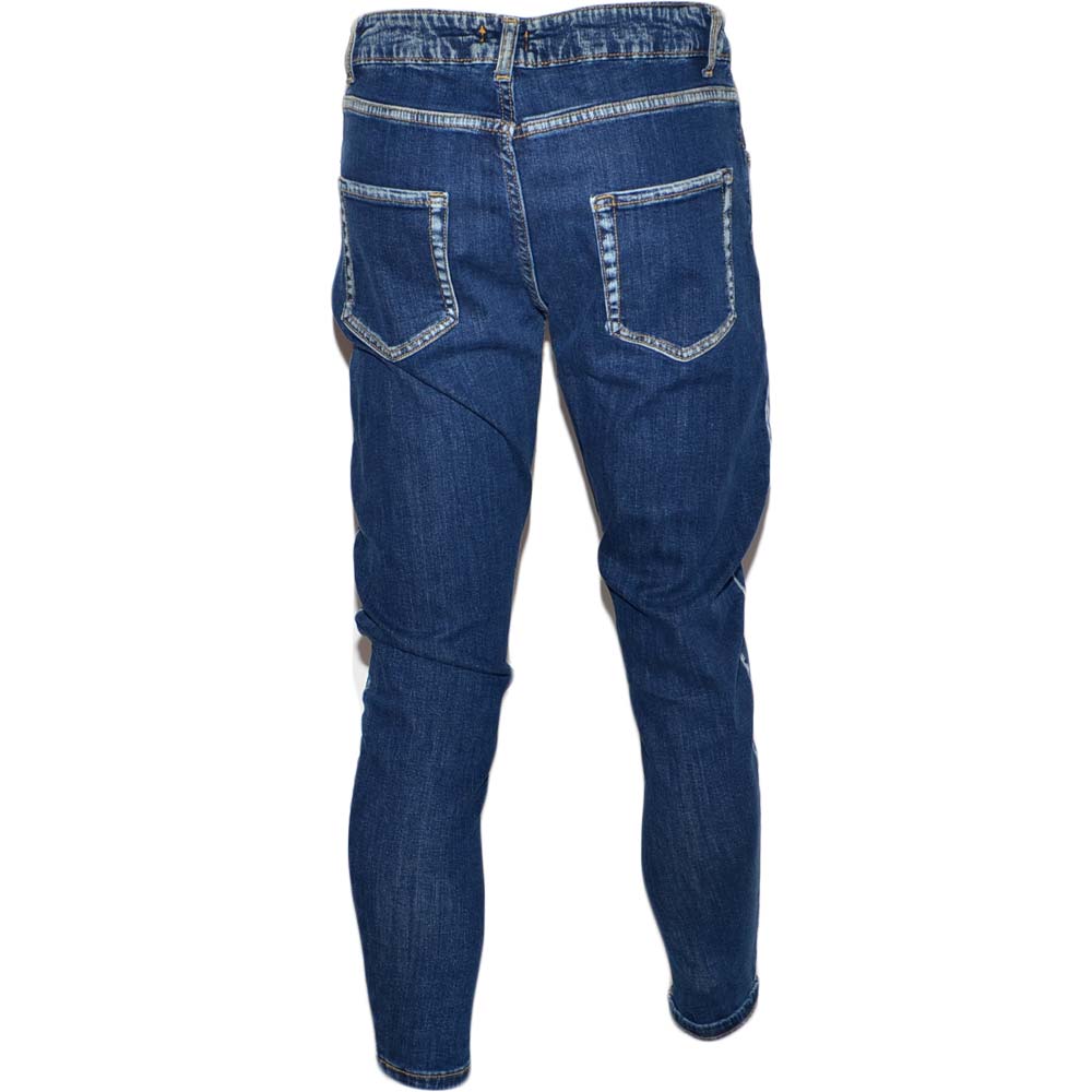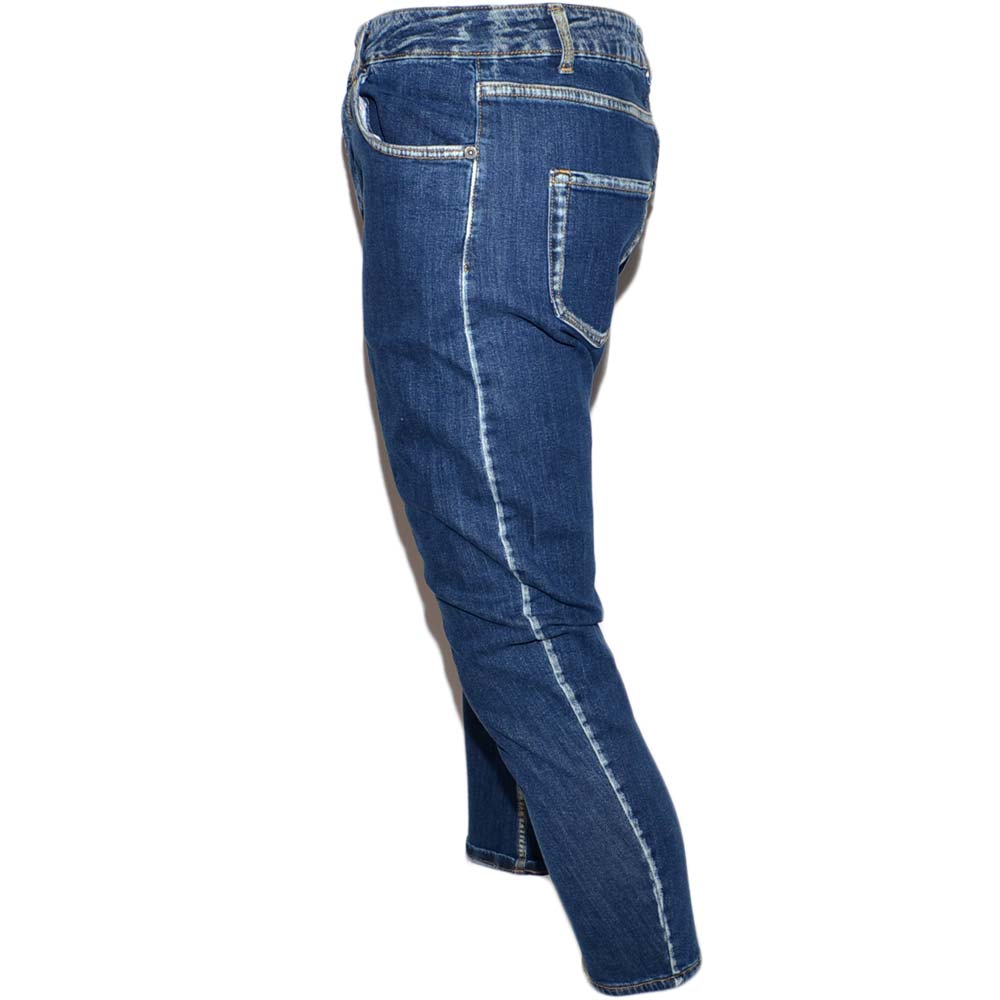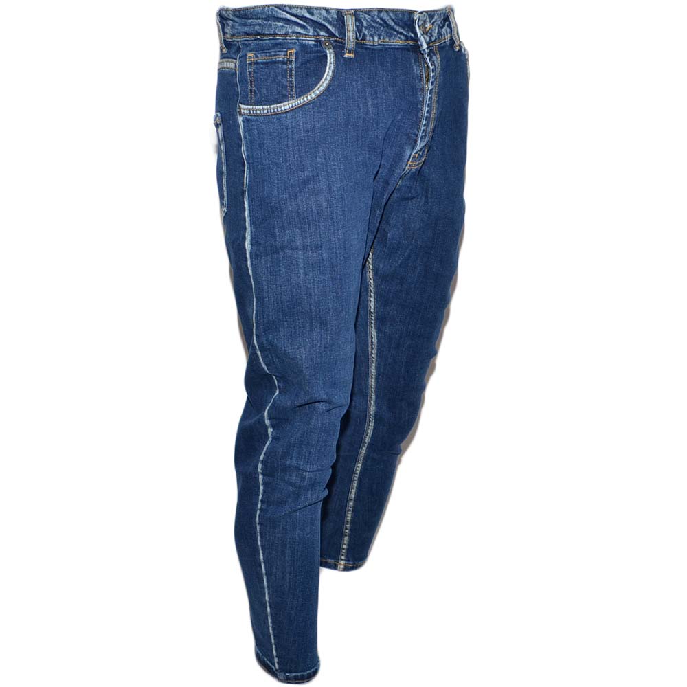 Jeans uomo slim tapered con cintura regolare, tasche anteriori e posteriori, chiusura con bottoni e passanti per cintura.
