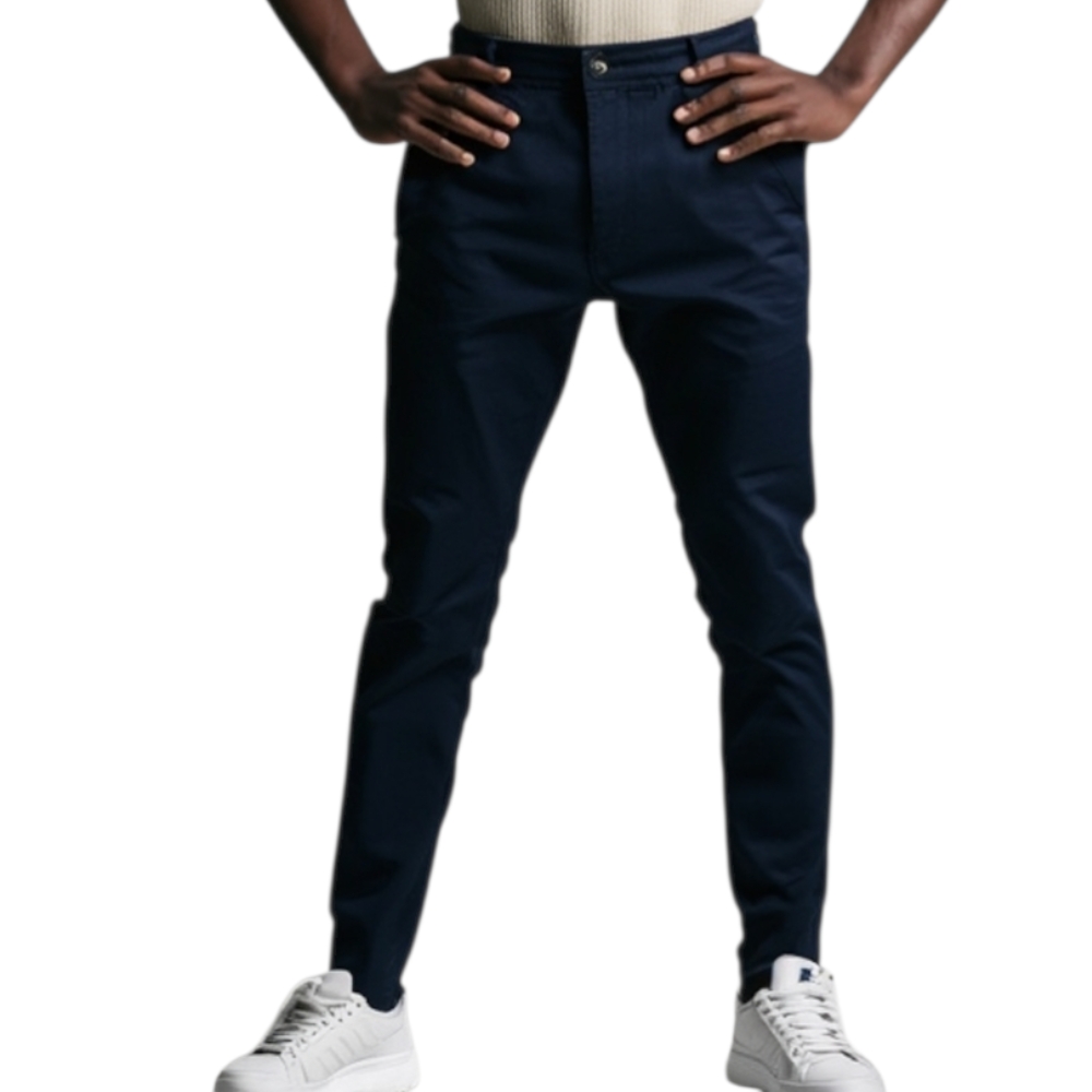 Pantalone moda uomo blu notte cotone chino elastico colori vari classico sportivo tasca america made in italy.