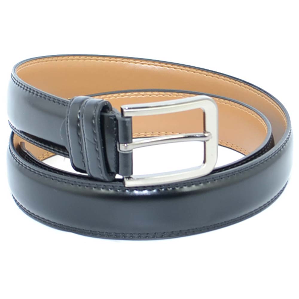 Cintura Uomo Cintura Regolabile Pellame Opaco Nero Tinta Unita con Fibbia in Metallo Argento Linea Classica.