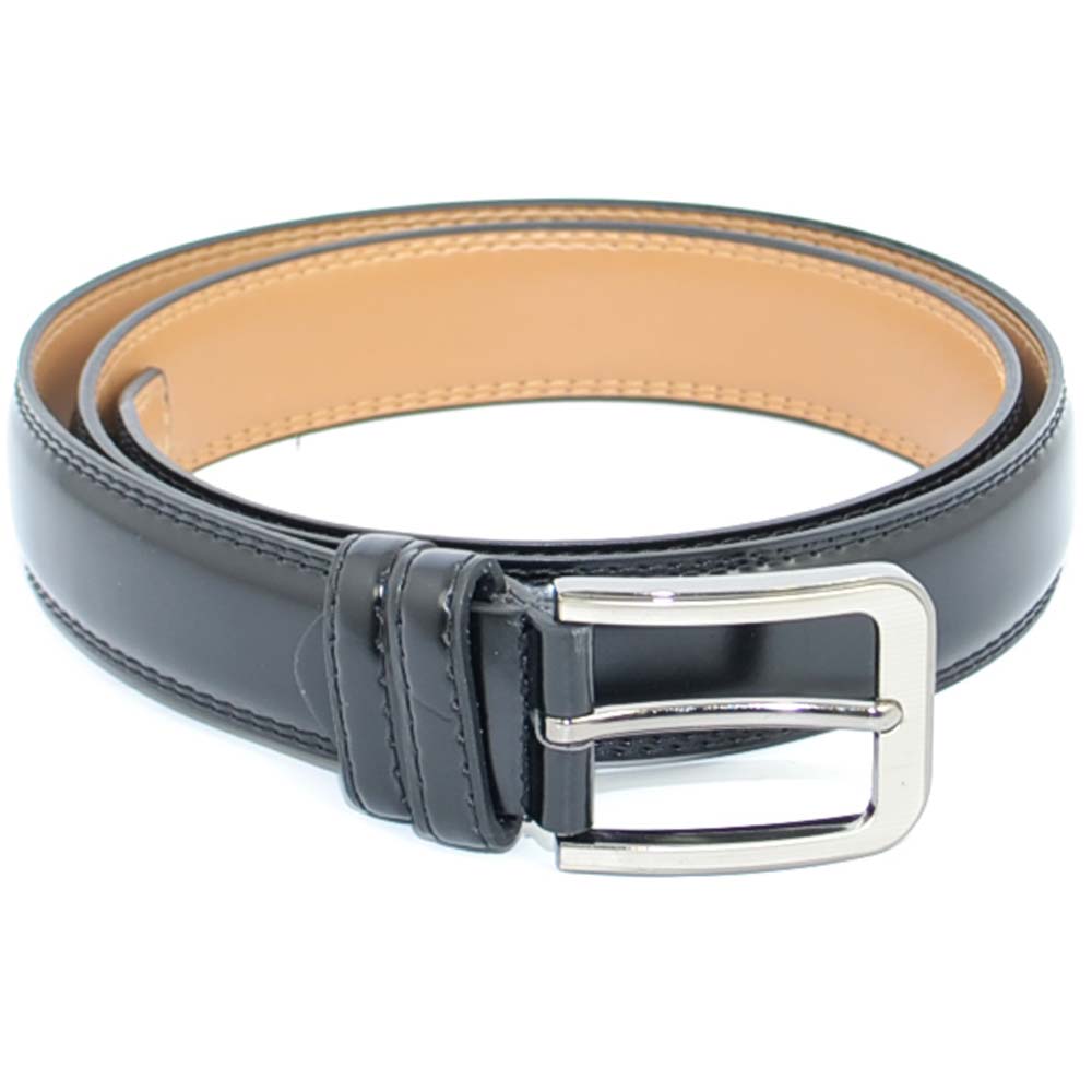Cintura Uomo Cintura Regolabile Pellame Lucido Abrasivato Nero Tinta Unita con Fibbia in Metallo Linea Classica