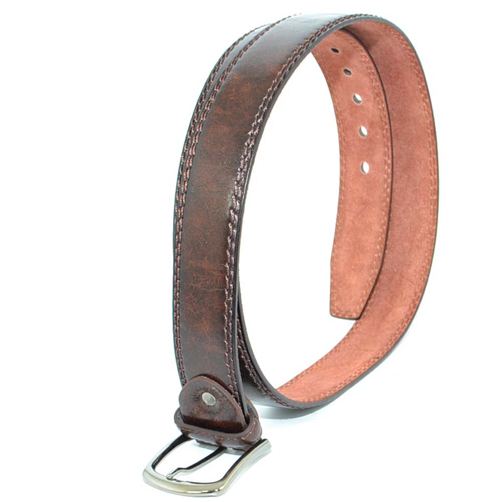 Cintura uomo vera pelle marrone sfumato a mano con doppia cucitura fibbia in metallo cintura regolabile linea cerimonia