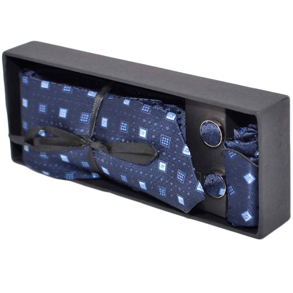 Ridefinisci il tuo stile con questo set coordinato che comprende cravatta, fazzoletto da taschino e gemelli custoditi in elegante cofanetto regalo.