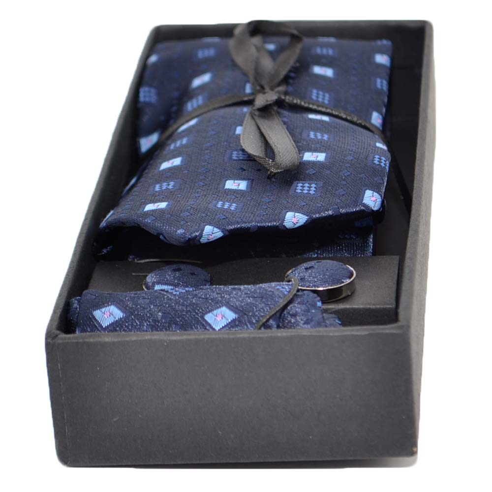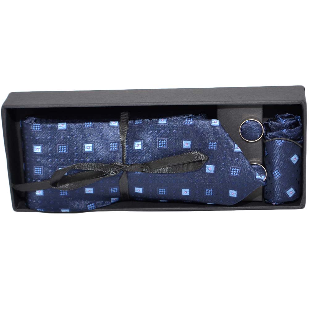 Set cravatta pochette e gemelli in raso blu con dettagli confezione regalo per professionisti e collezionisti