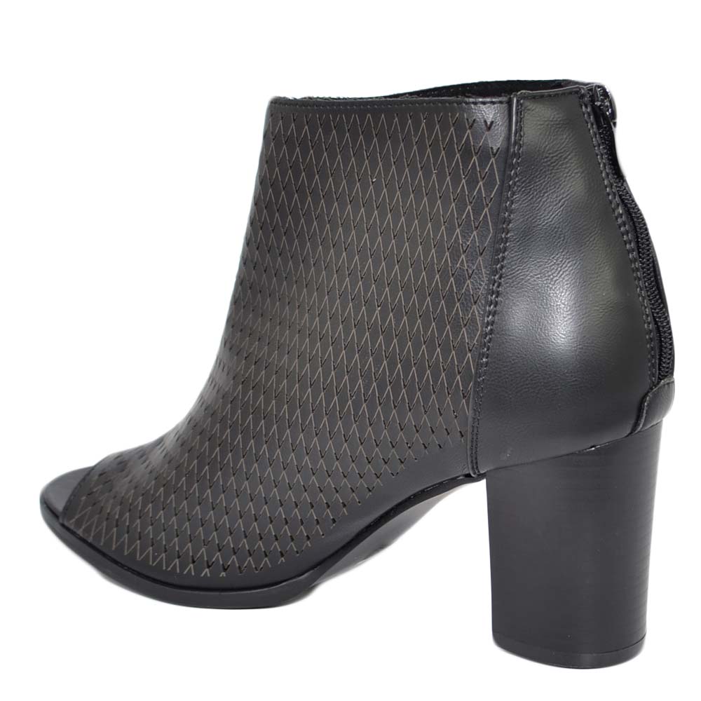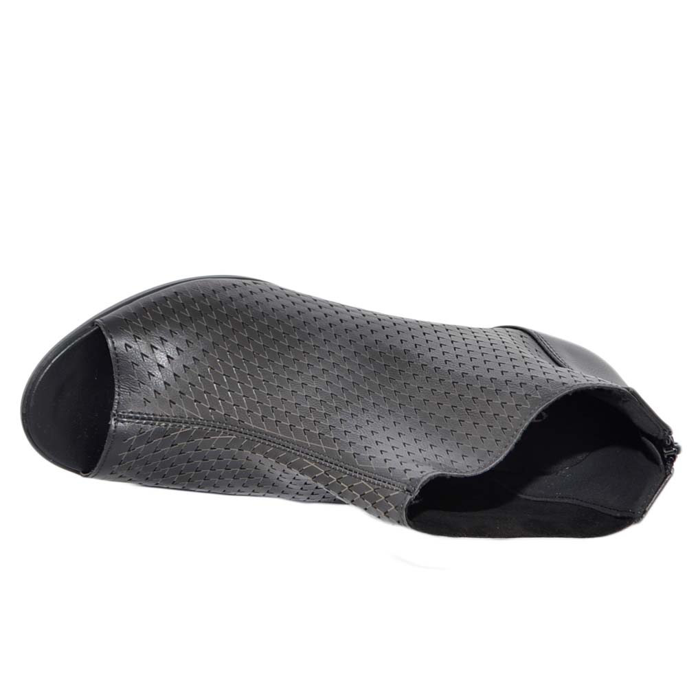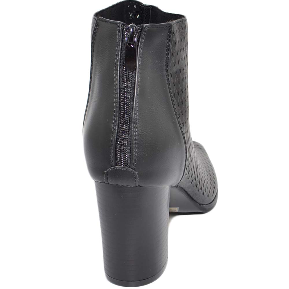 Tronchetto donna estivo alla caviglia nero con tacco largo comodo traforato open toe spuntato con zip