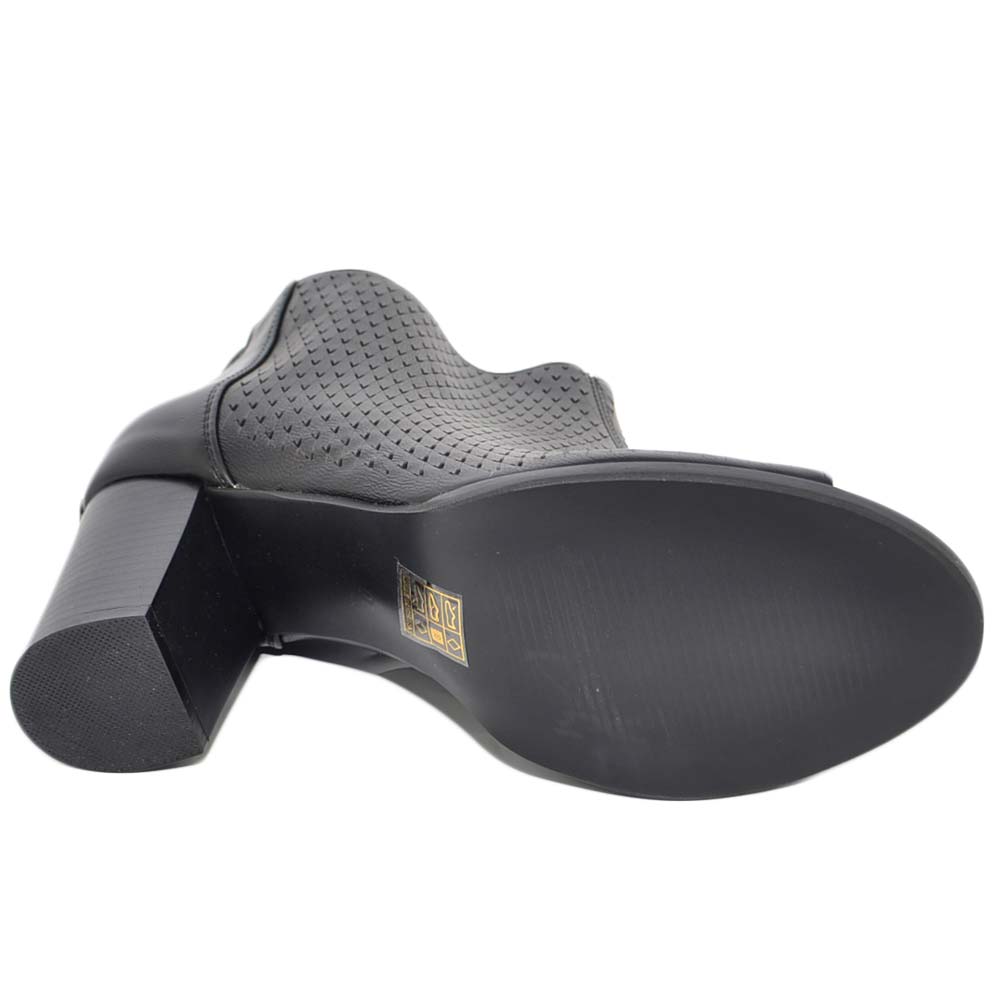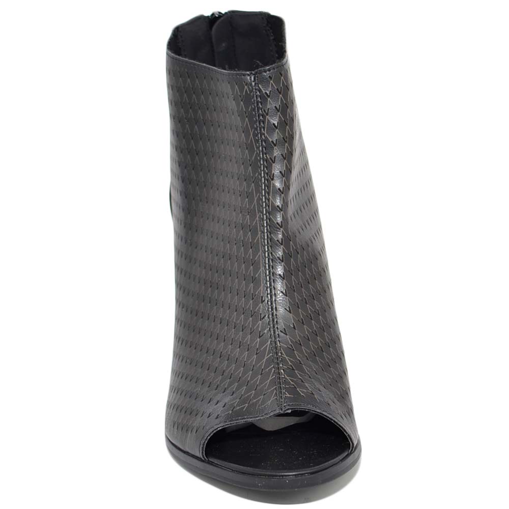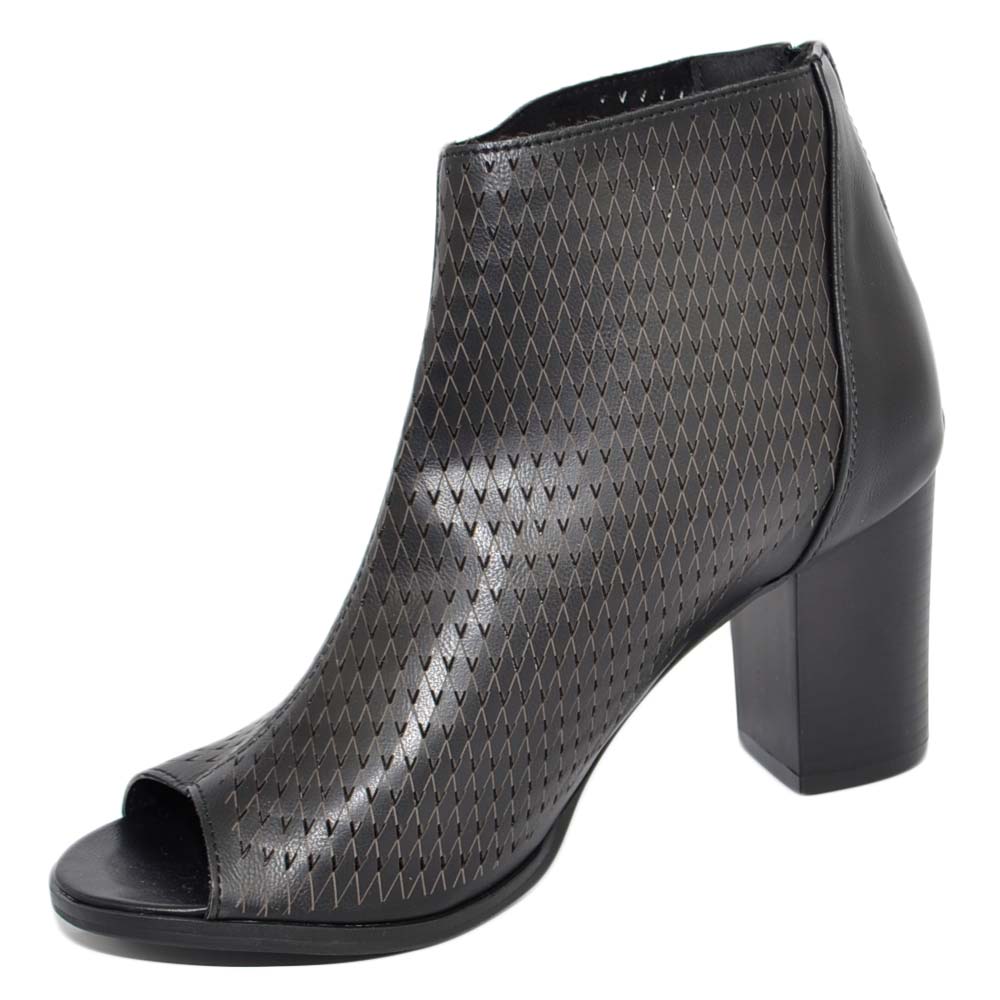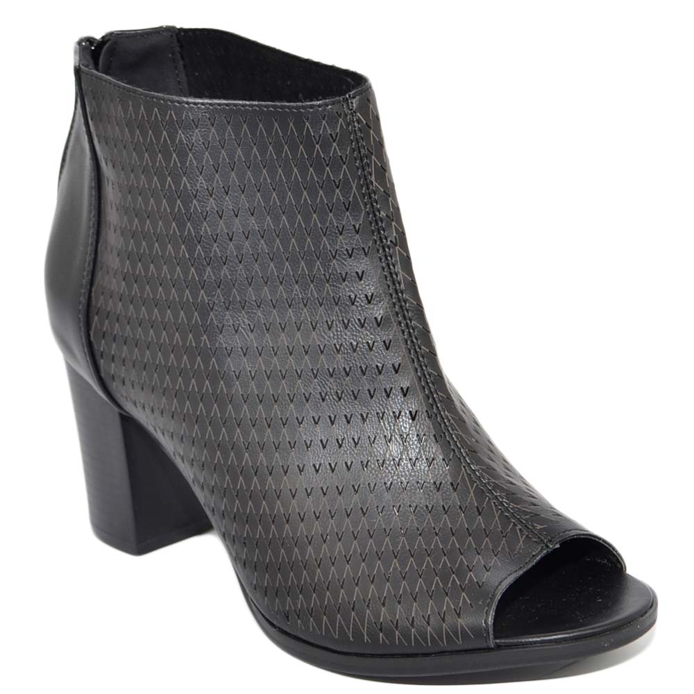 Tronchetto donna estivo alla caviglia nero con tacco largo comodo traforato open toe spuntato con zip