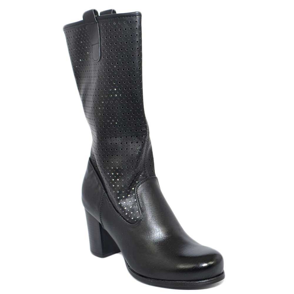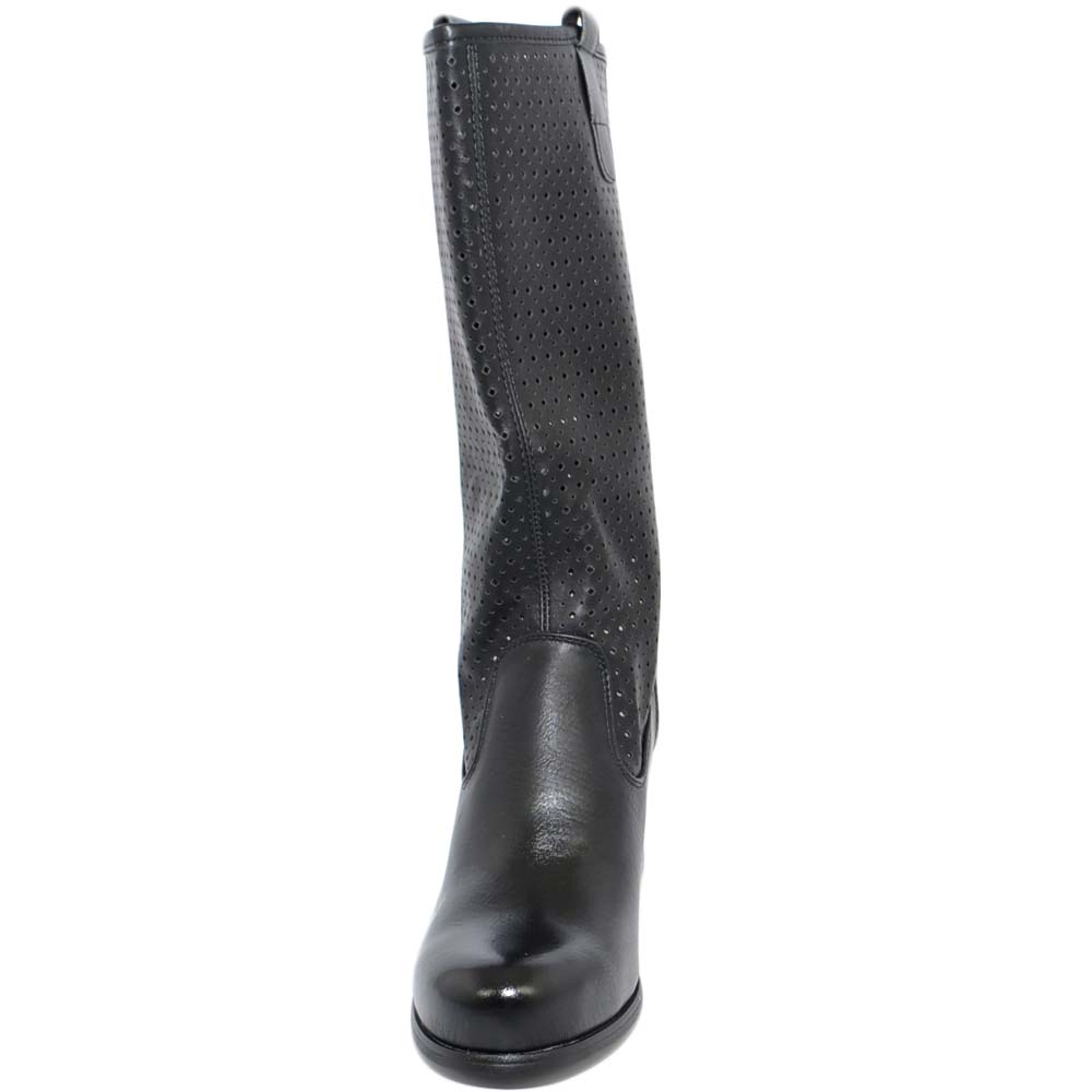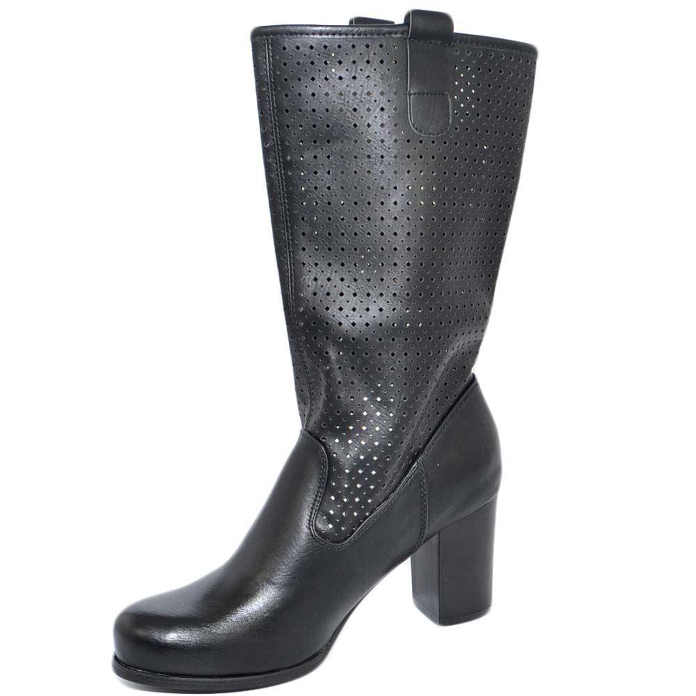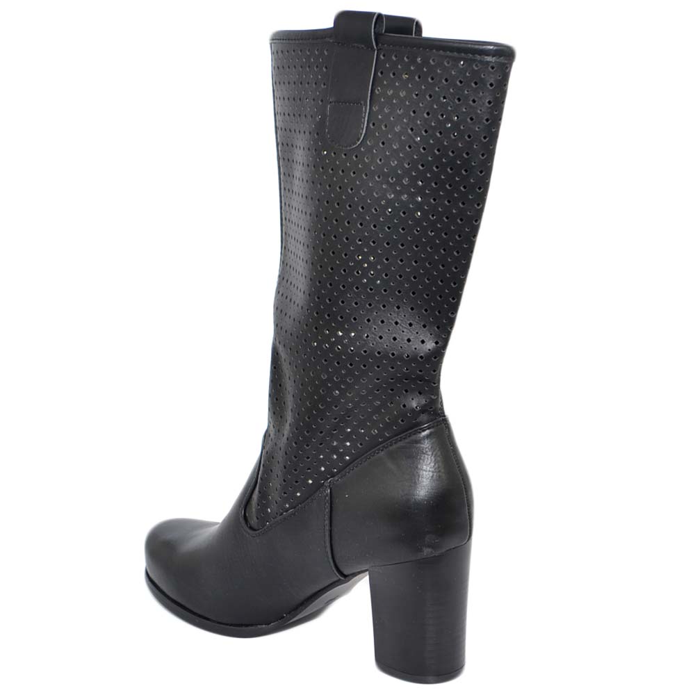 Stivali donna neri con plateau estivi gambale traforato altezza polpaccio con tacco grosso comodo e zip evergreen