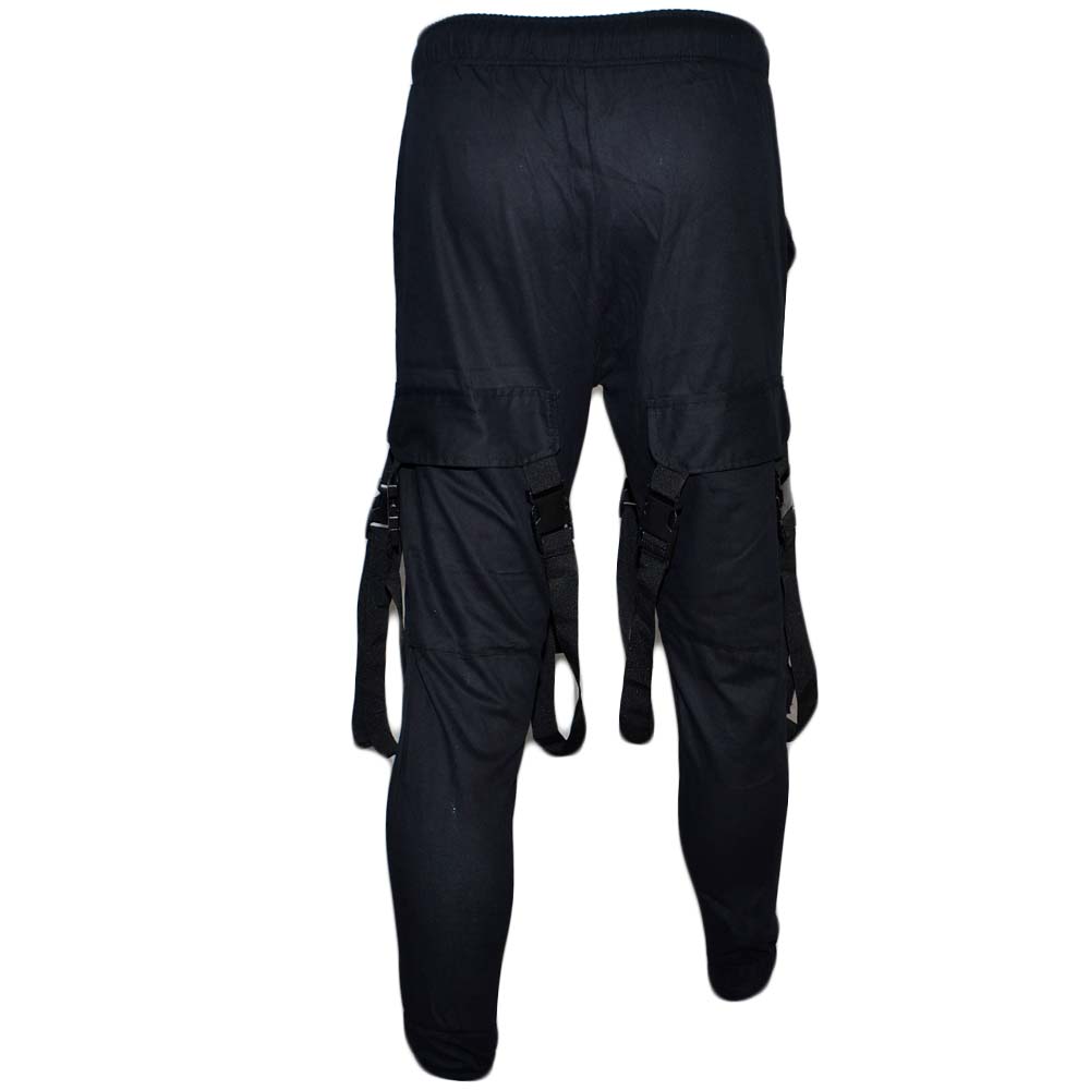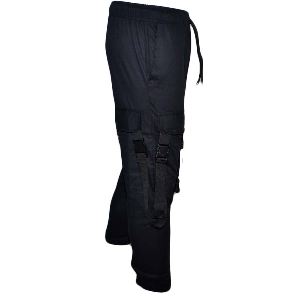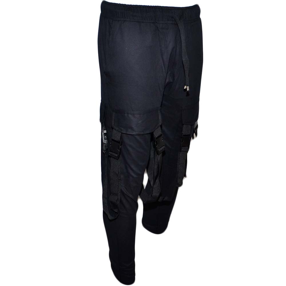 Pantaloni tuta cargo uomo nero con tasconi laterali con laccio in vita comodo casual moda militare