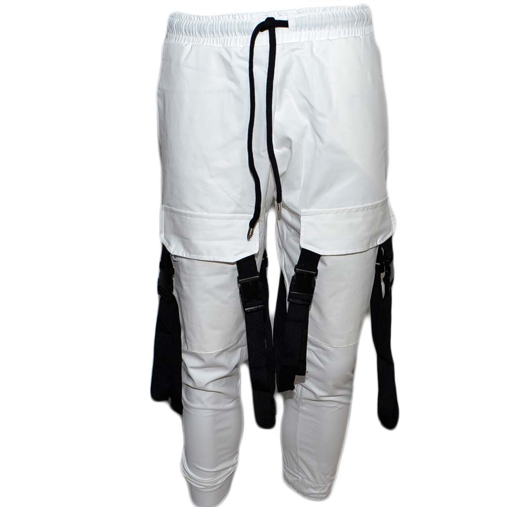 Pantaloni tuta cargo uomo bianco con tasconi laterali con laccio in vita comodo casual moda militare