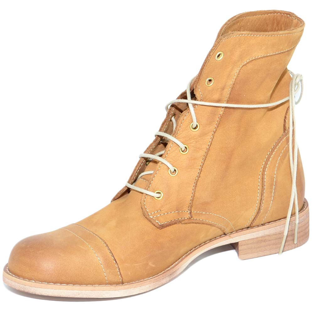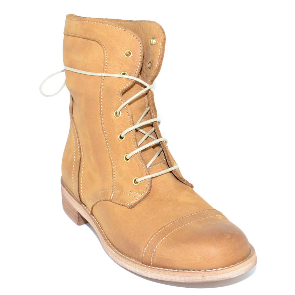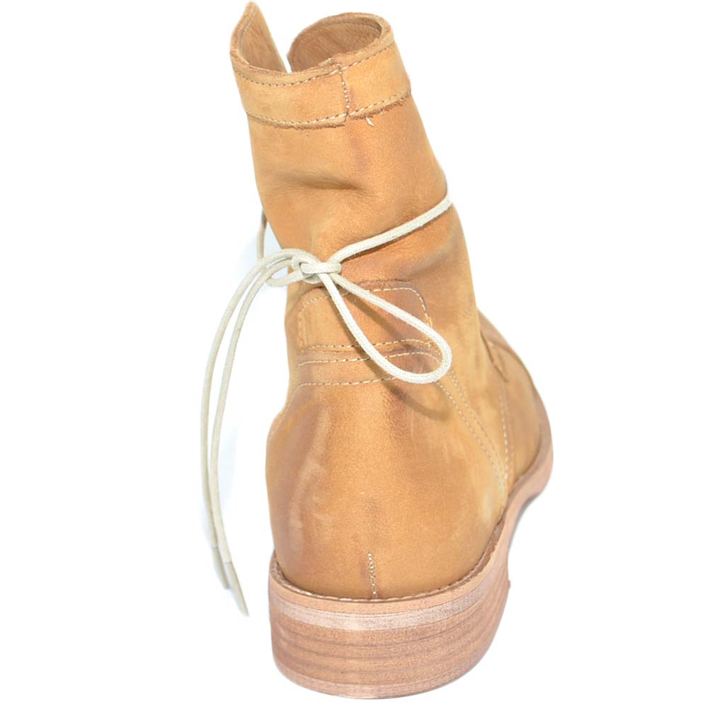 Anfibio donna stivaletto in vera pelle nabuk cuoio spazzolato a mano con fondo in vero cuoio linea handmade