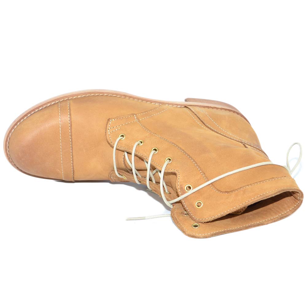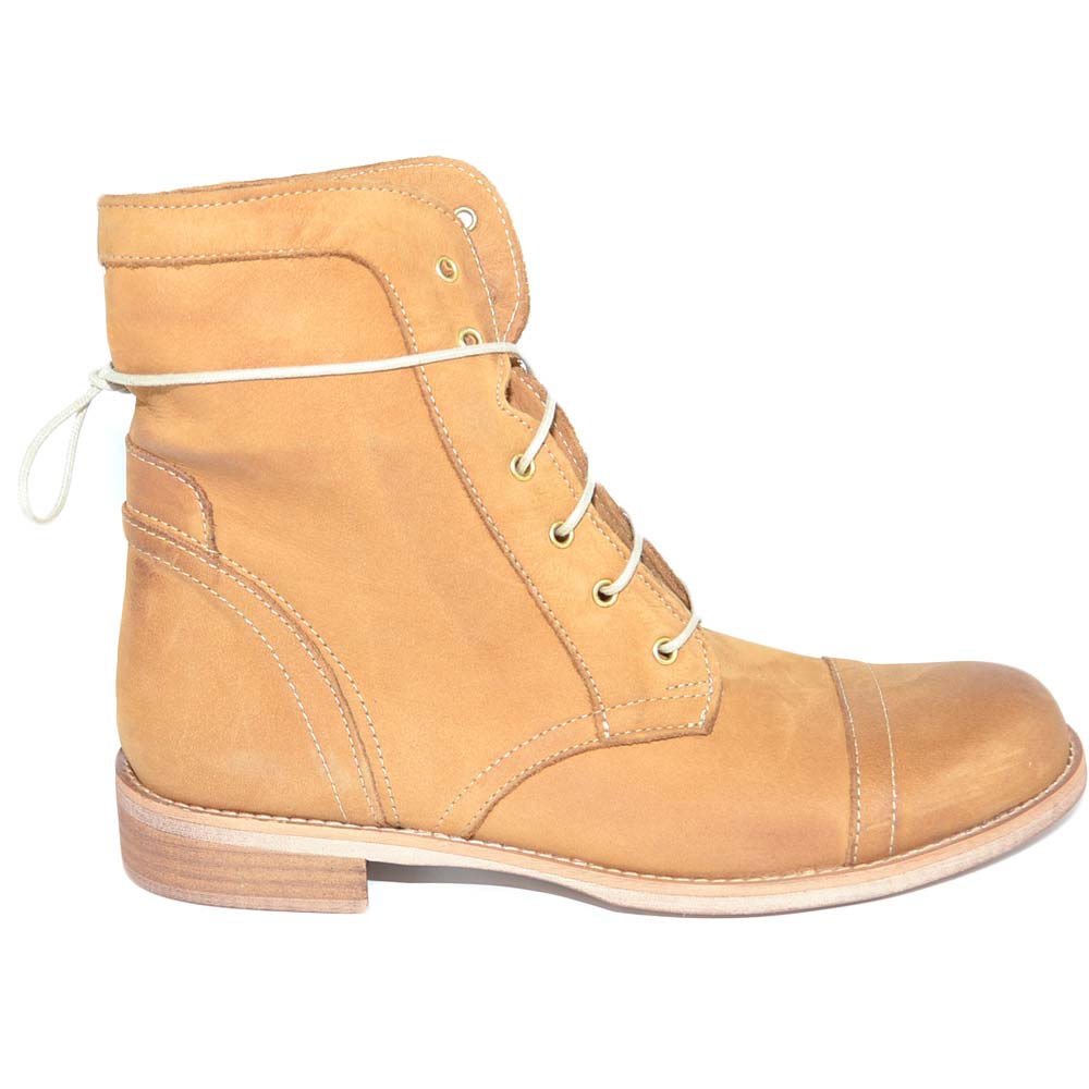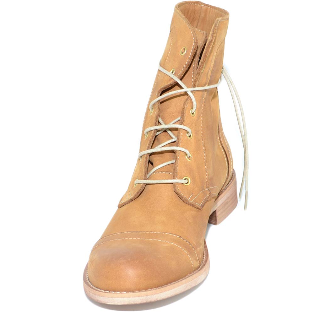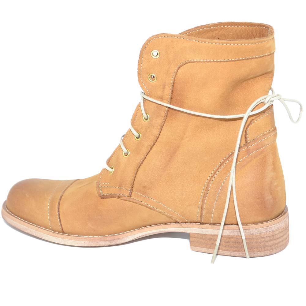 Anfibio donna stivaletto in vera pelle nabuk cuoio spazzolato a mano con fondo in vero cuoio linea handmade