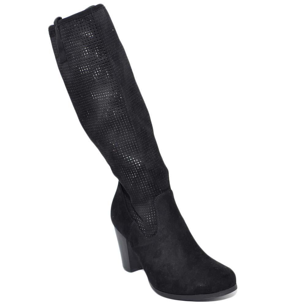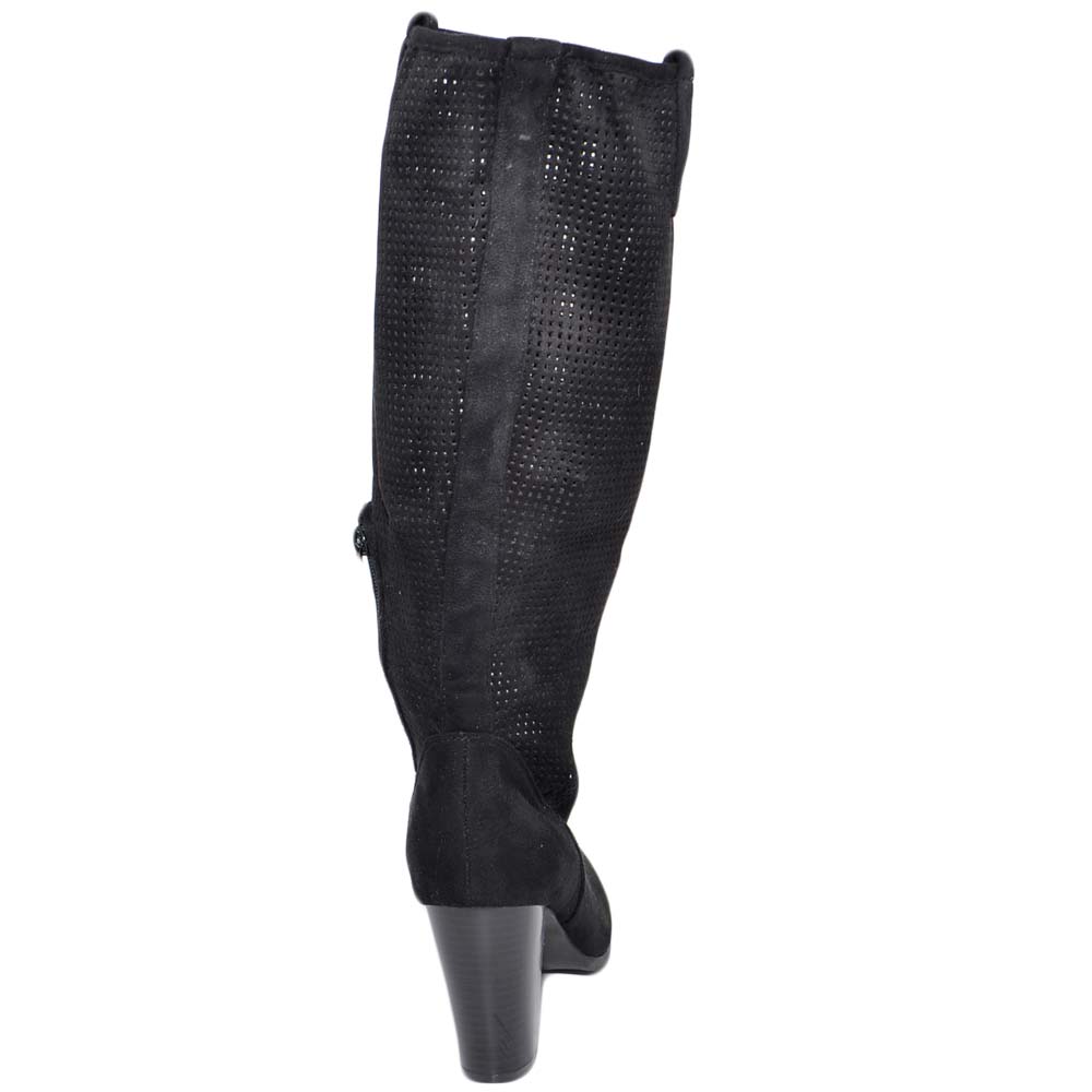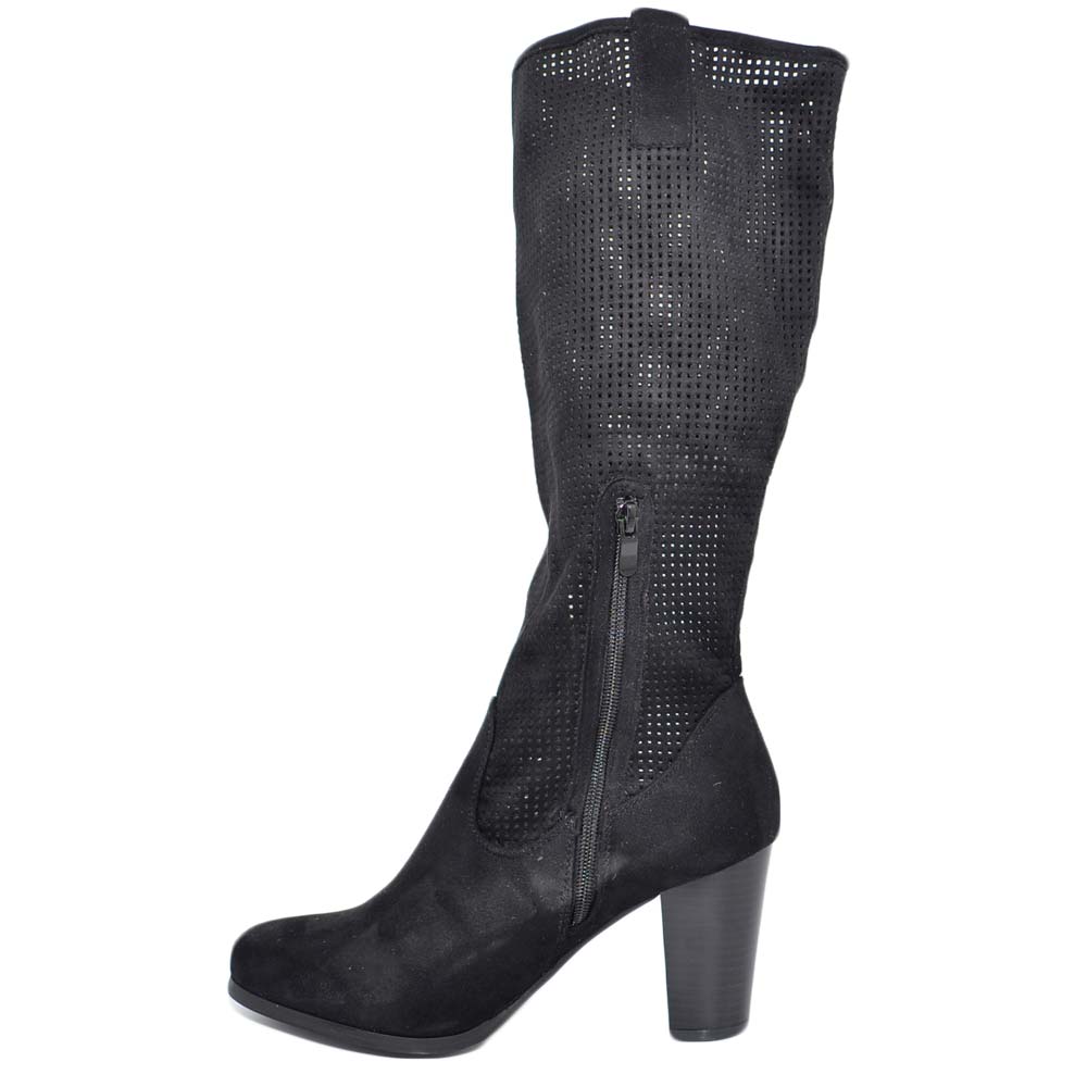 Stivali donna nero con plateau estivi gambale traforato altezza polpaccio con tacco grosso comodo e zip