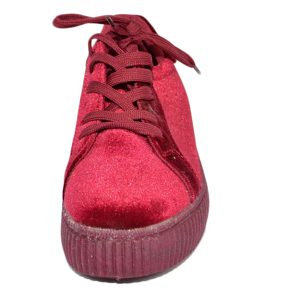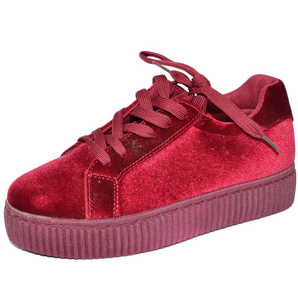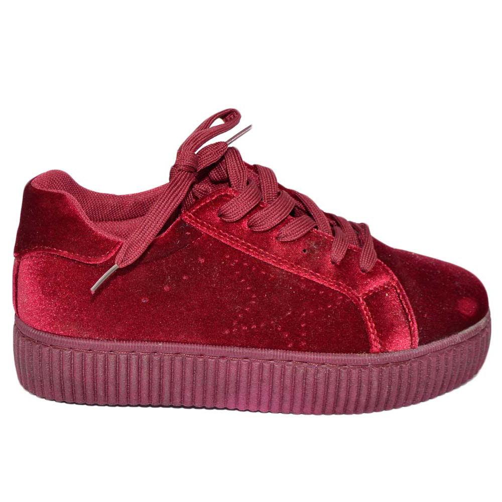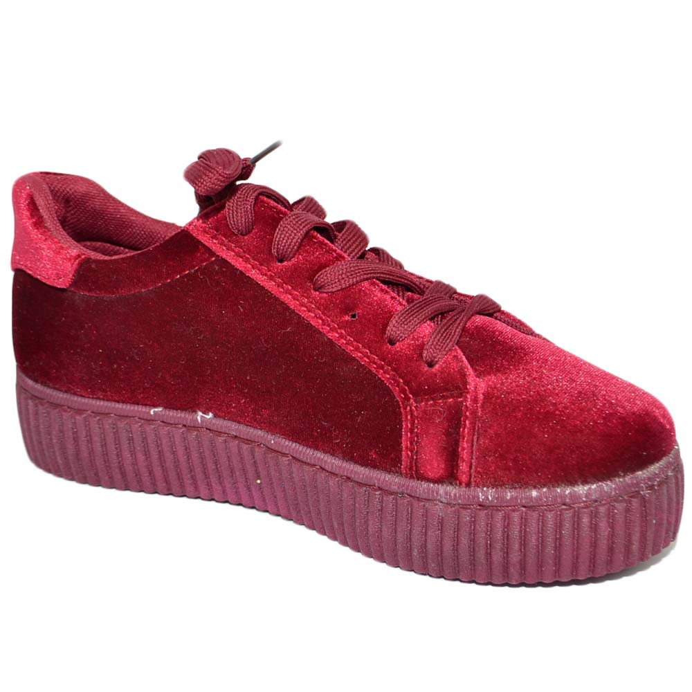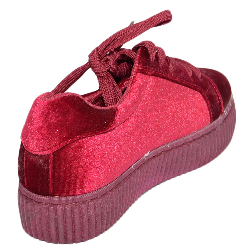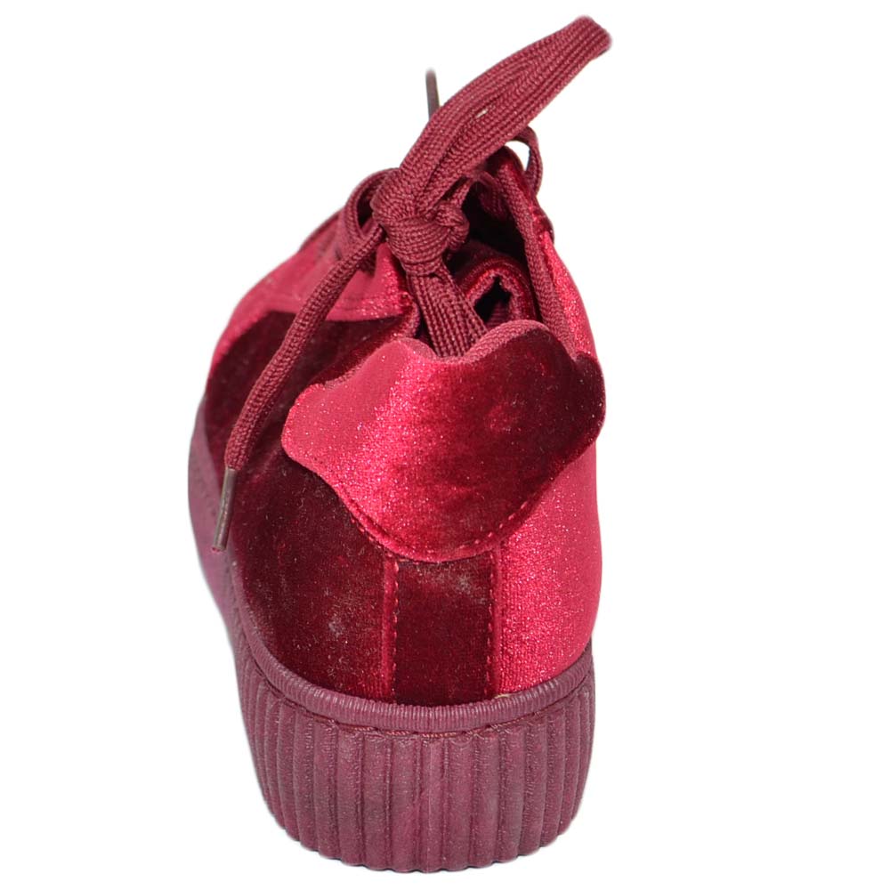 Sneakers bassa donna bordeaux ciniglia con fondo alto platform creepers lacci in tinta moda confort antistrecth