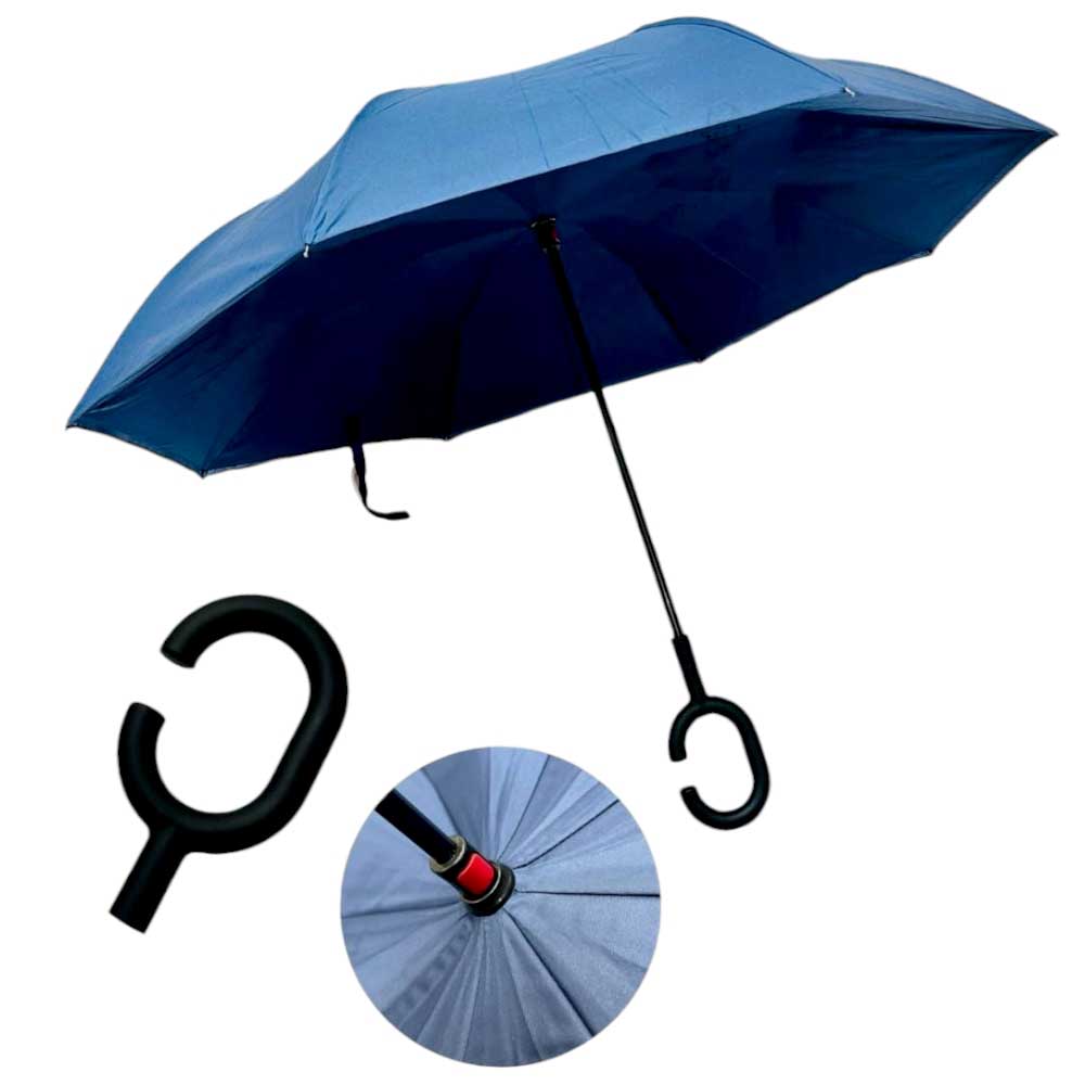 Ombrello blu  invertito doppio strato antivento con Manico a Forma di C Ribaltabile Inverso Anti UV.