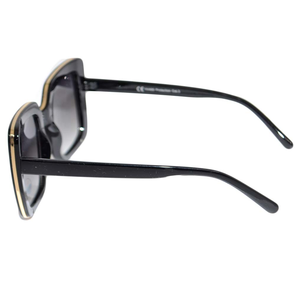 OCCHIALI DA SOLE DONNA SUNGLASSES NERO IN OSSO LENTE CALIBRATA QUADRATA OVERSIZE MADE IN ITALY