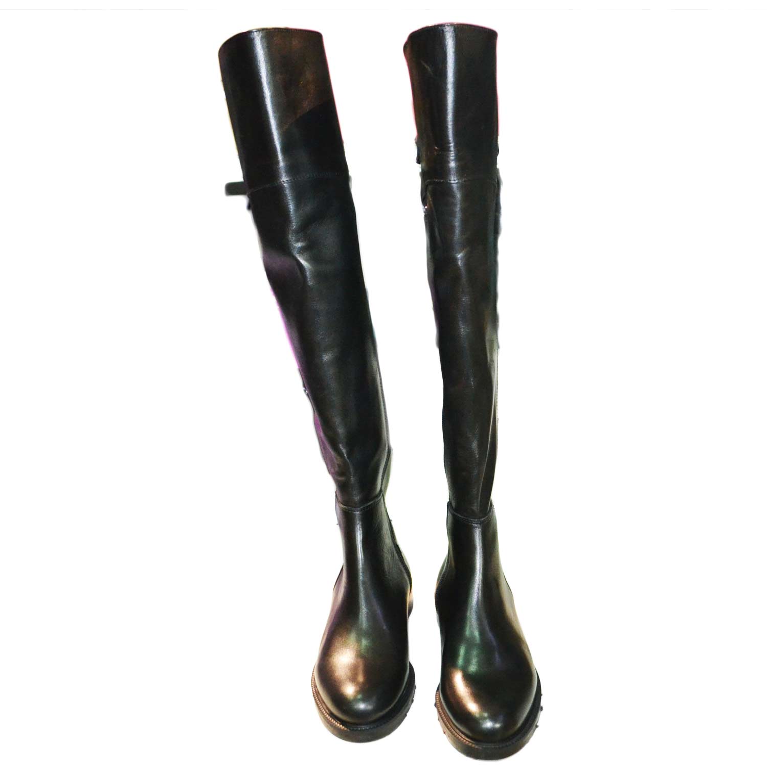 STIVALE ALTO CON FIBBIE ACCESSORI VERA PELLE NERO