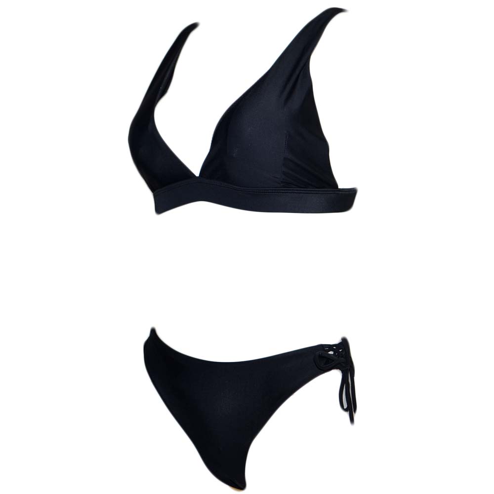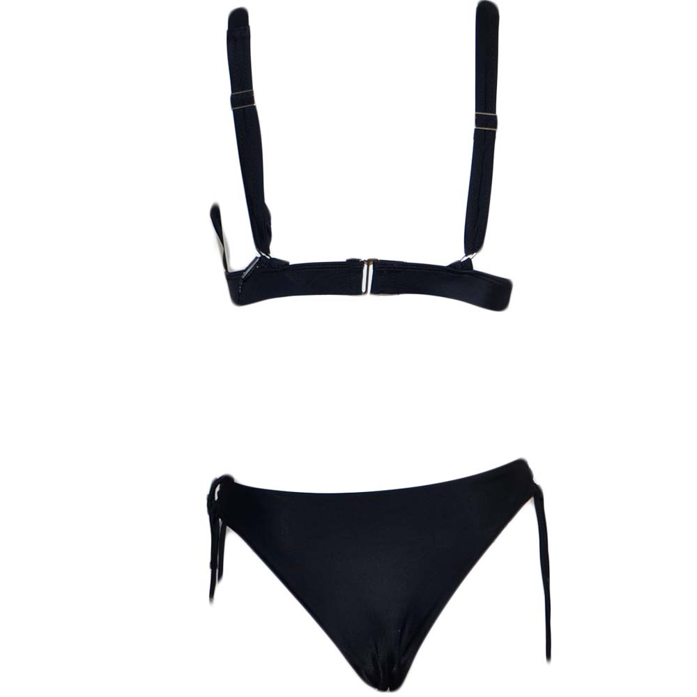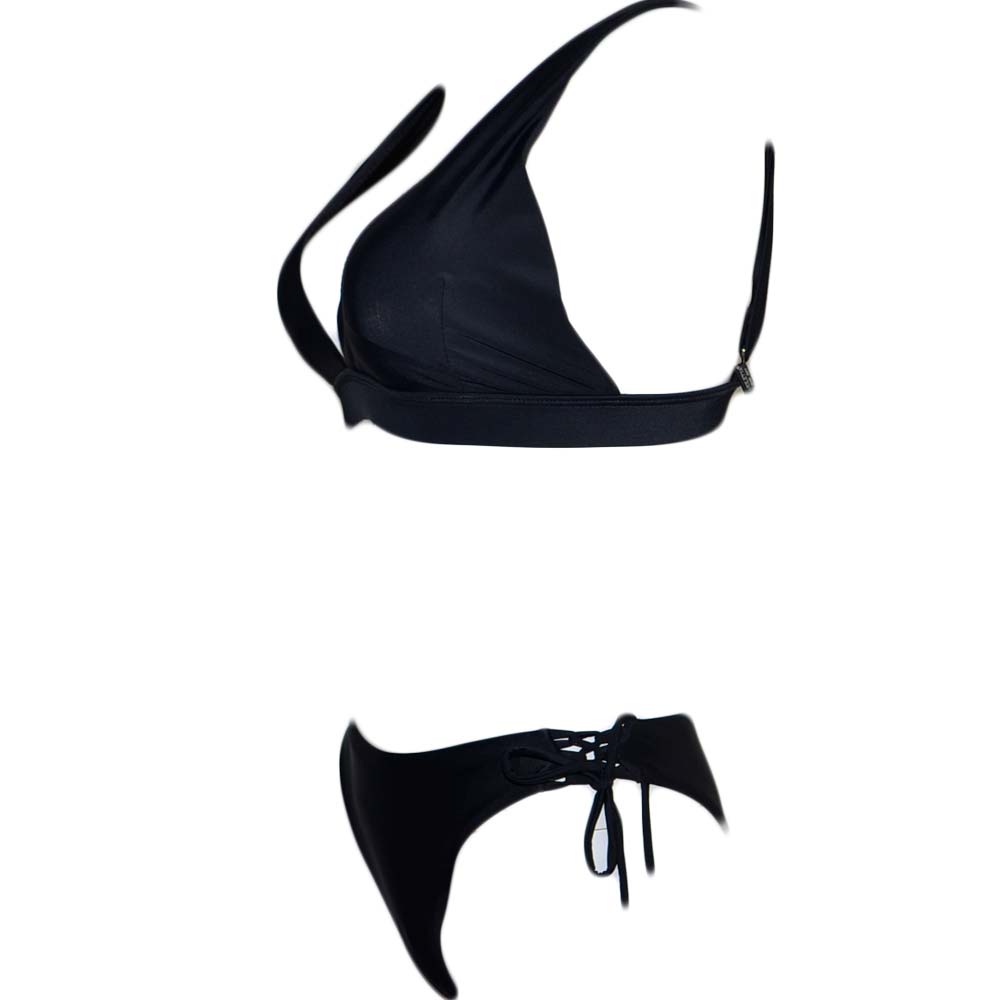 Costume da bagno donna nero bikini swimwear con slip laccetti incrociati e top bralette regolabile con gancio moda
