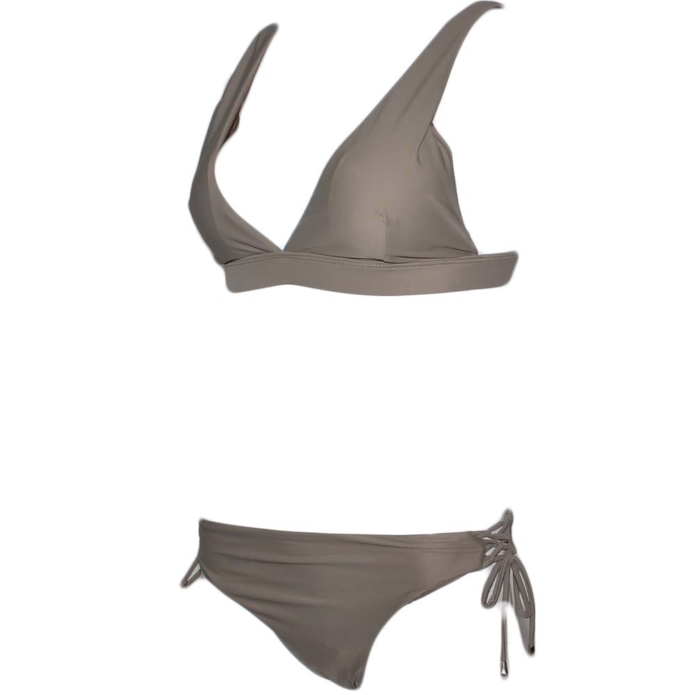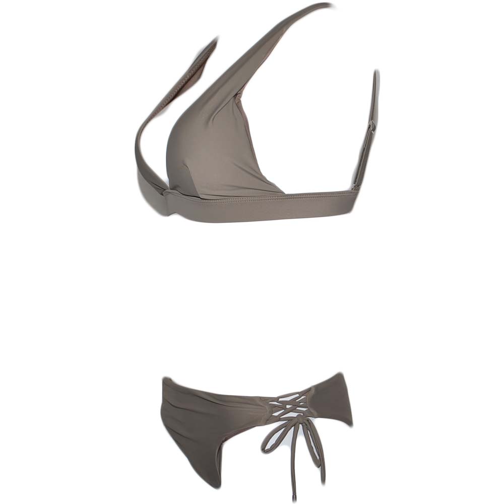 Costume da bagno donna verde bikini swimwear con slip laccetti incrociati e top bralette regolabile con gancio moda