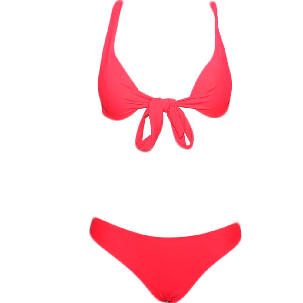 Costume da bagno corallo donna bikini swimwear con slip Basic e top bralette regolabile che si allaccia davanti moda