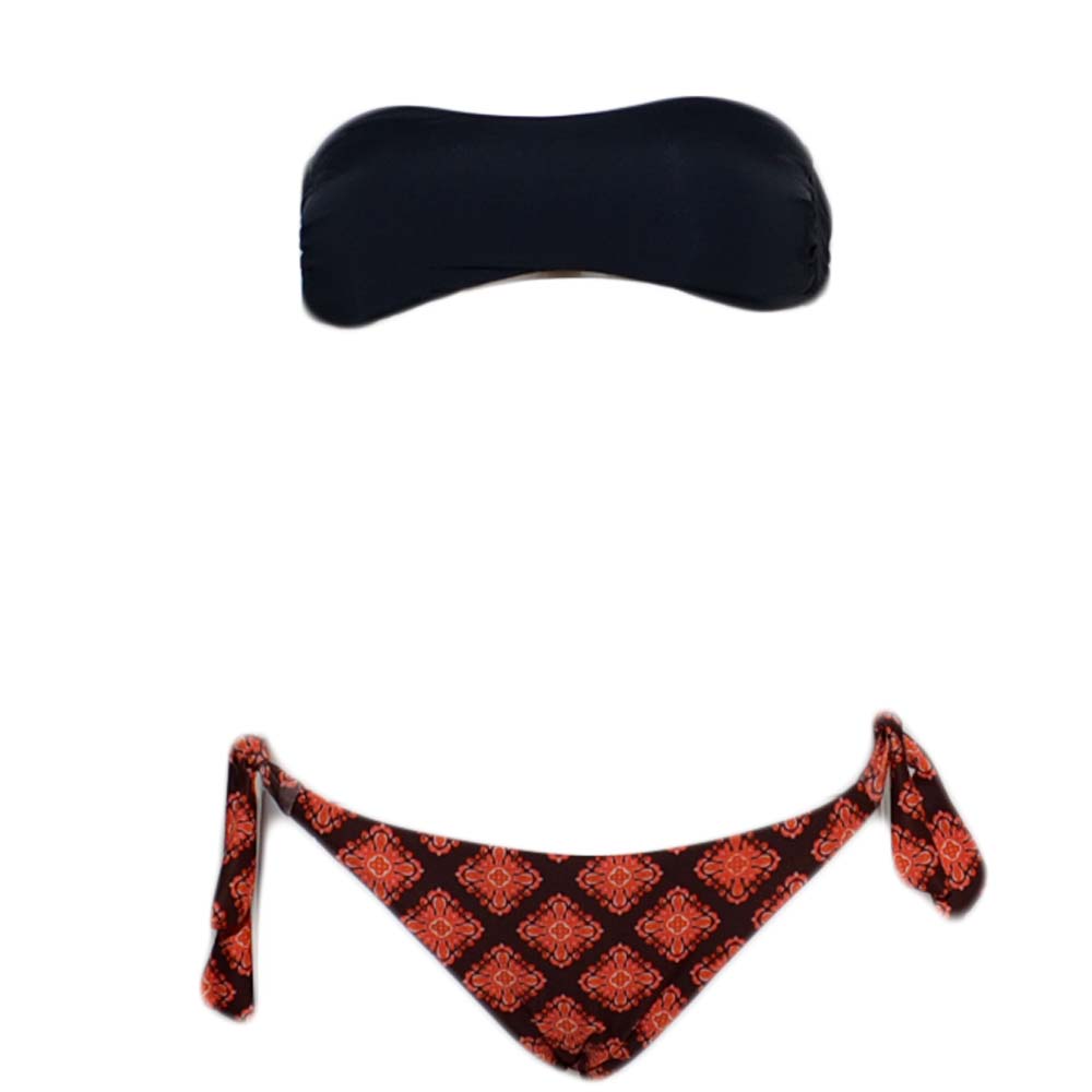 Costume da bagno donna bikini swimwear con slip regolabile laccetto brasiliana fantasia astratta e fascia basic nera