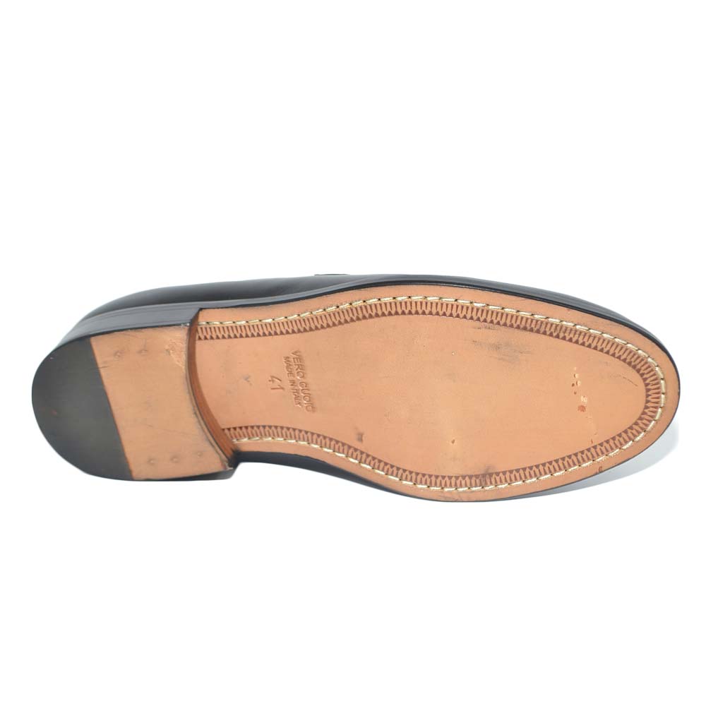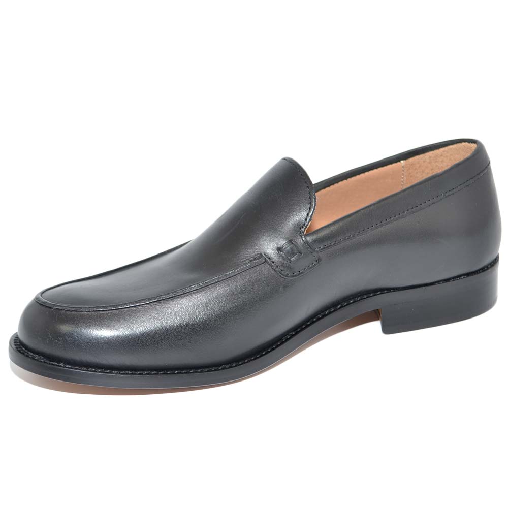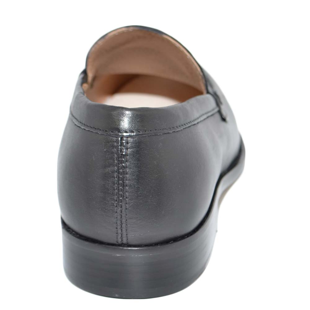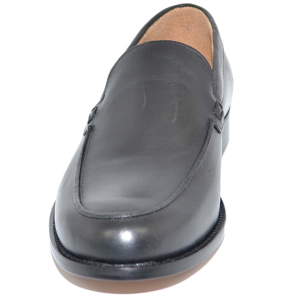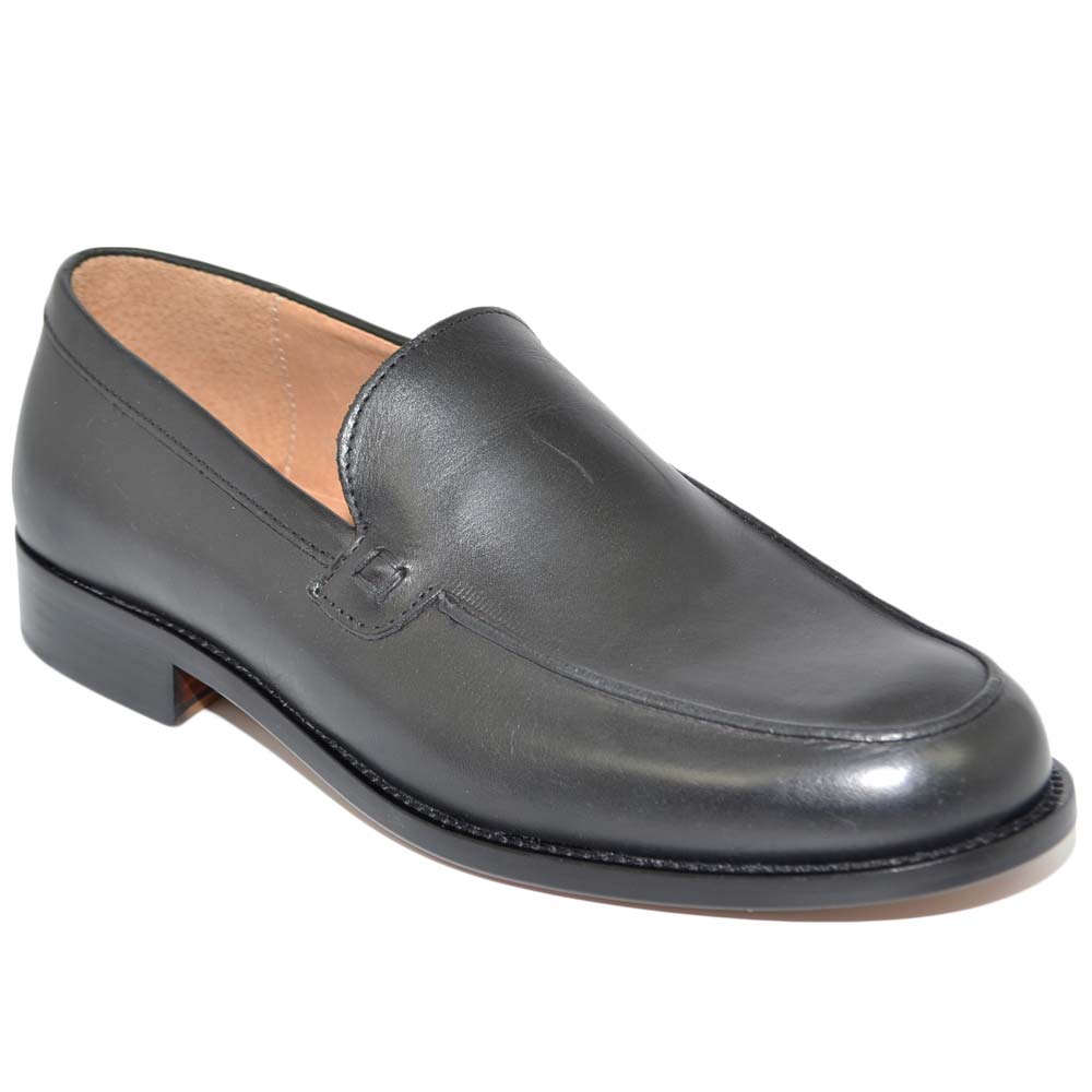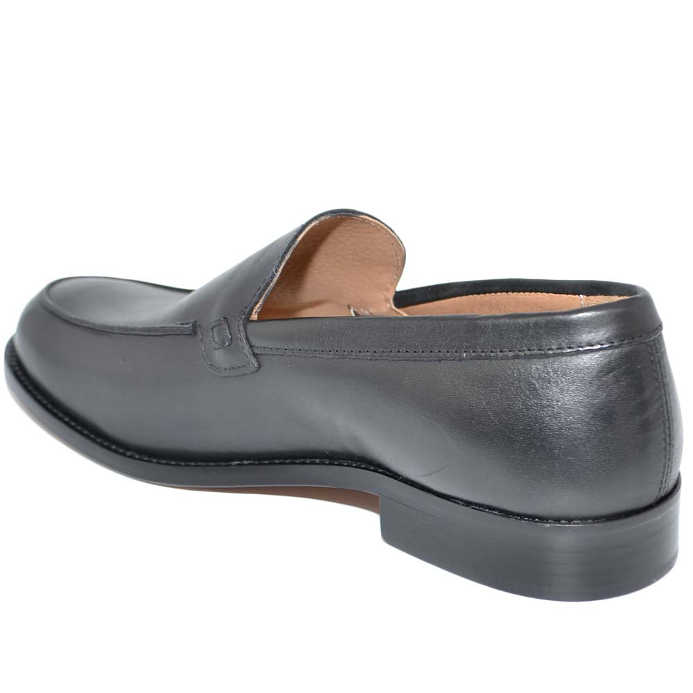 Mocassino uomo liscio classico vera pelle di nappa nero morbidissima con fondo cuoio artigianale fatti a mano in italia
