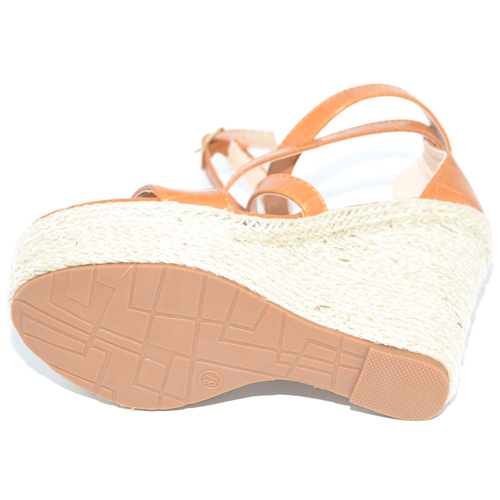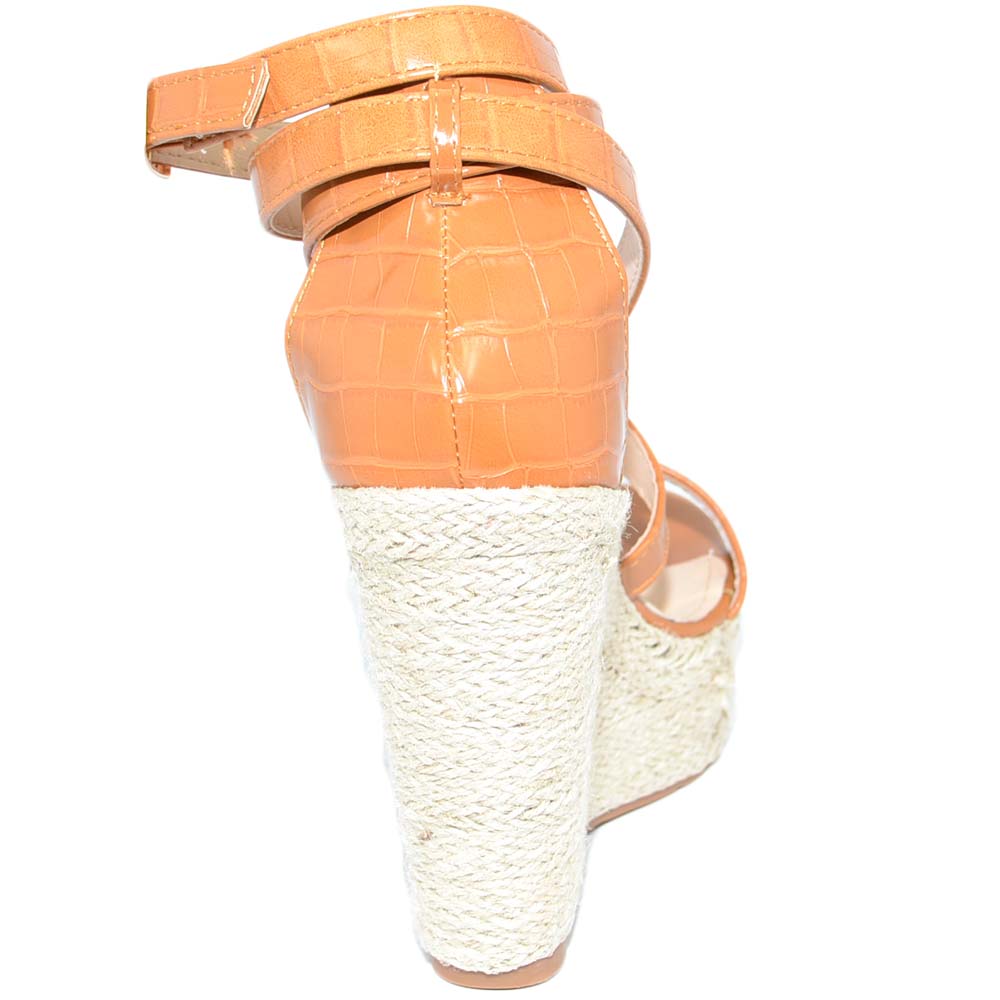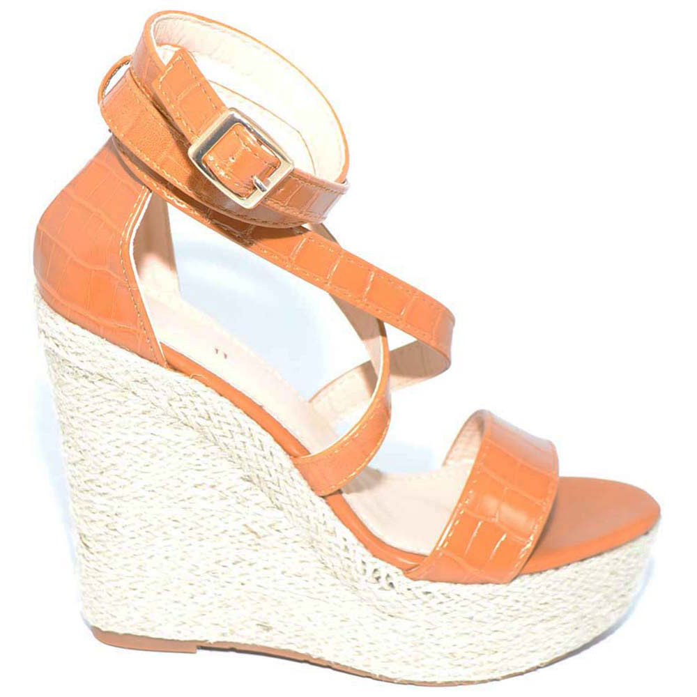 Zeppe platform cuoio donna con tacco unito in sughero fascie incrociate sul dorso e chiusura con cinturino alla schiava