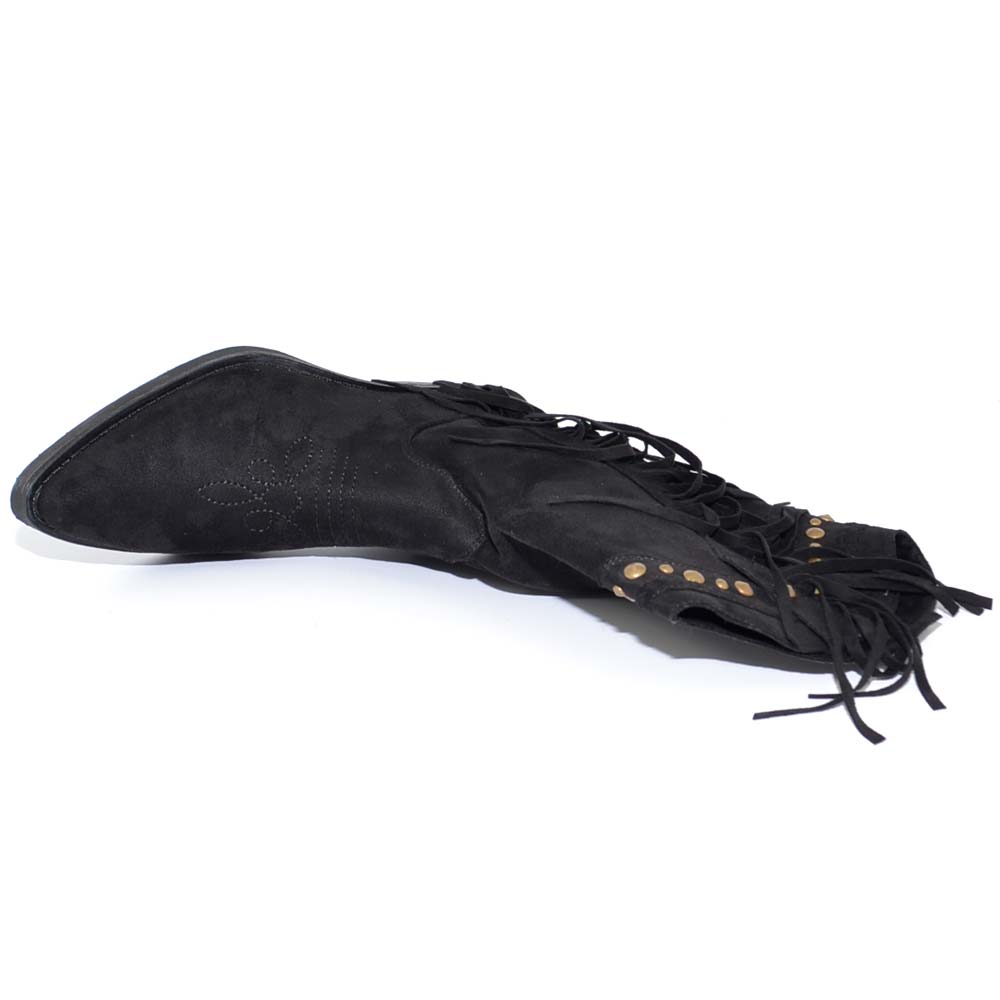 Stivali donna camperos texani neri scamosciati con frange borchie dorate roxanne a punta altezza polpaccio con zip