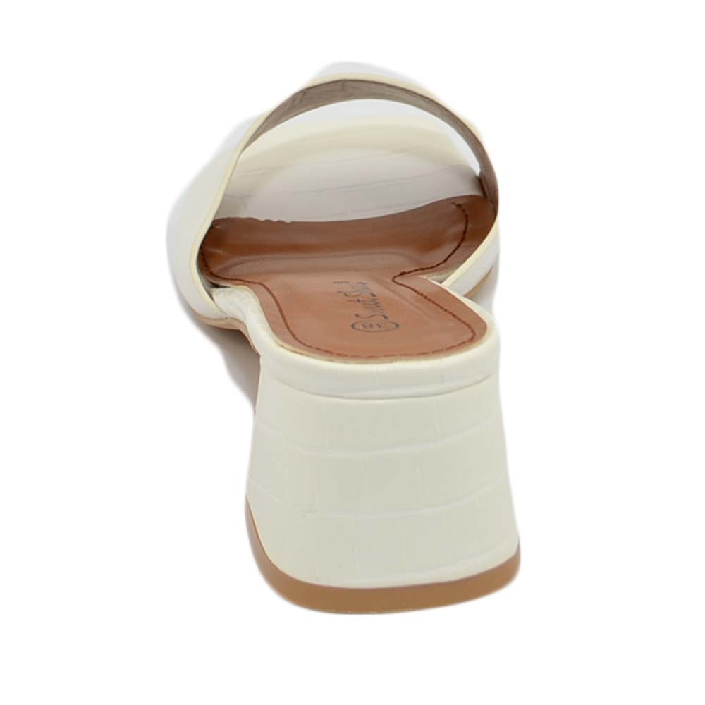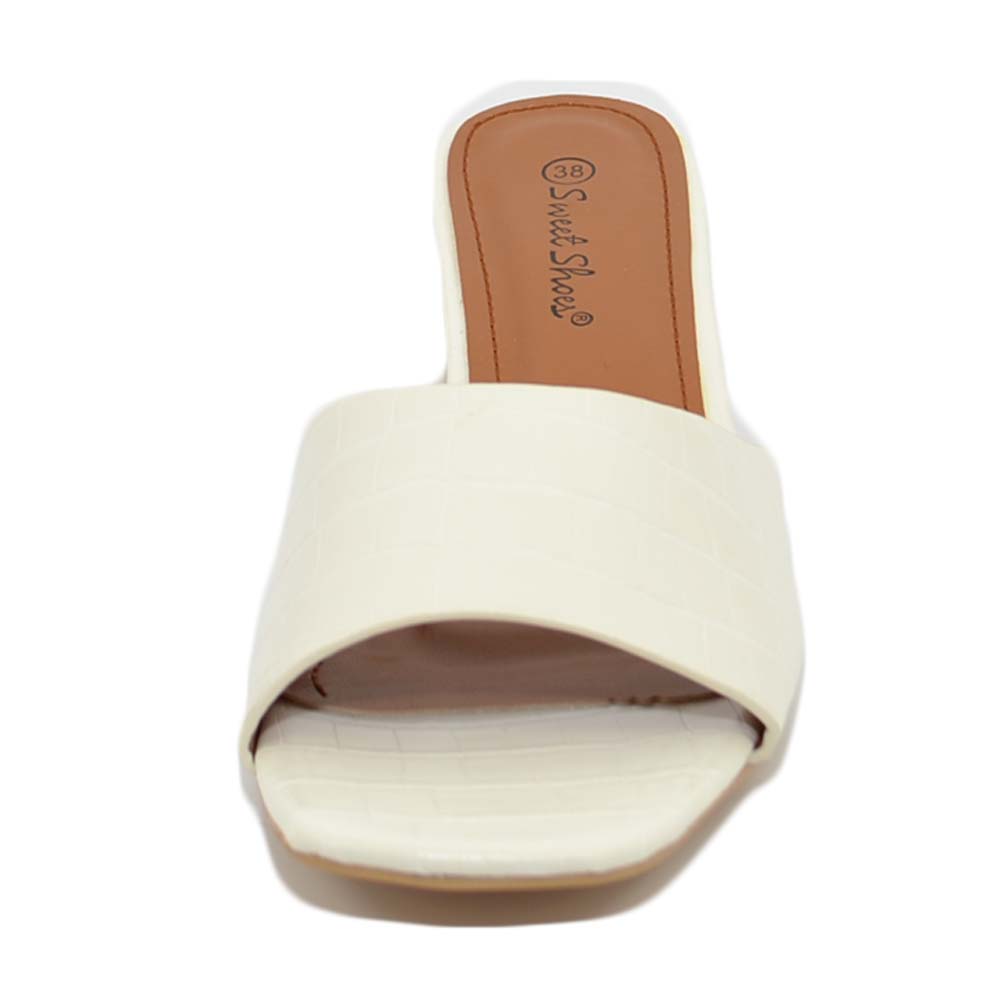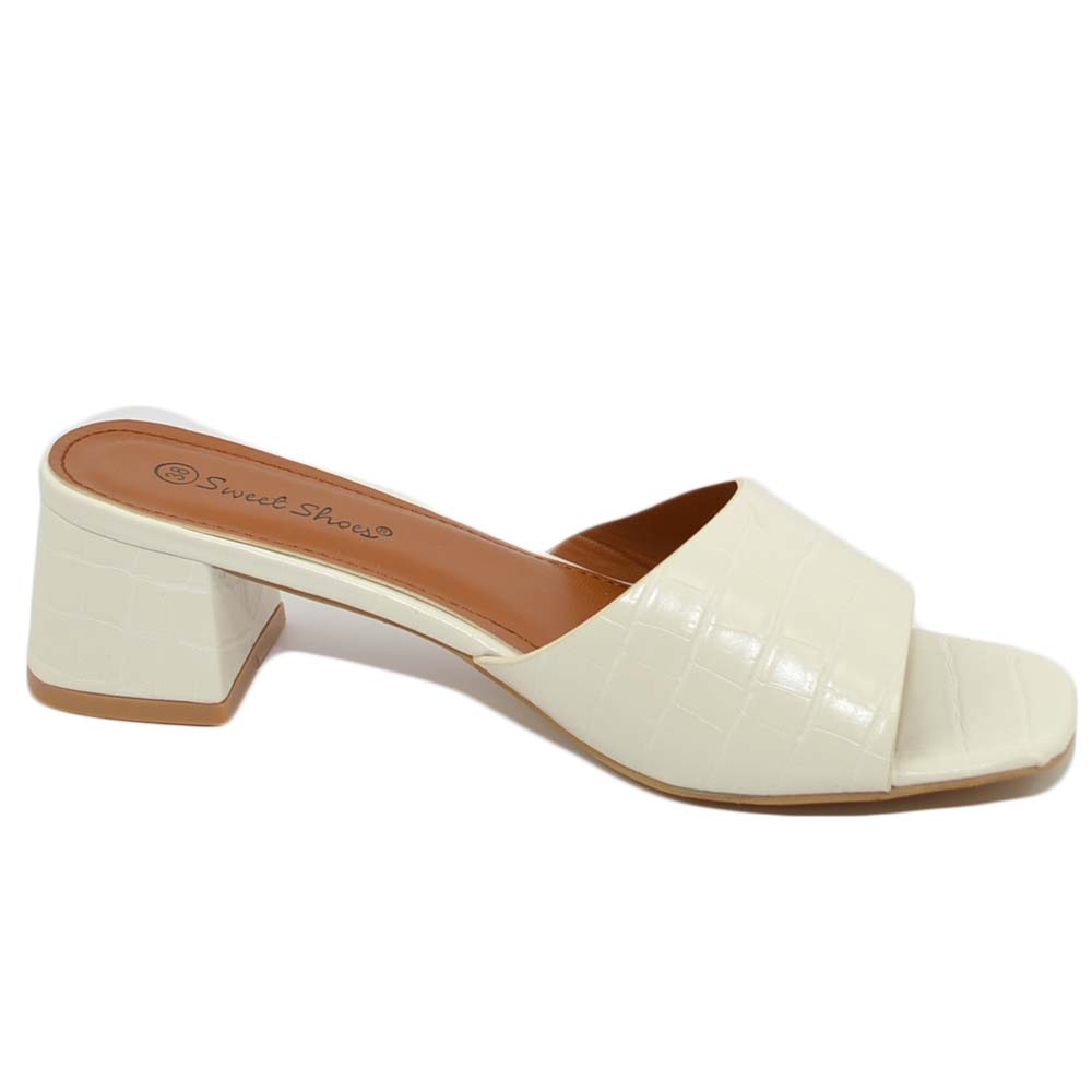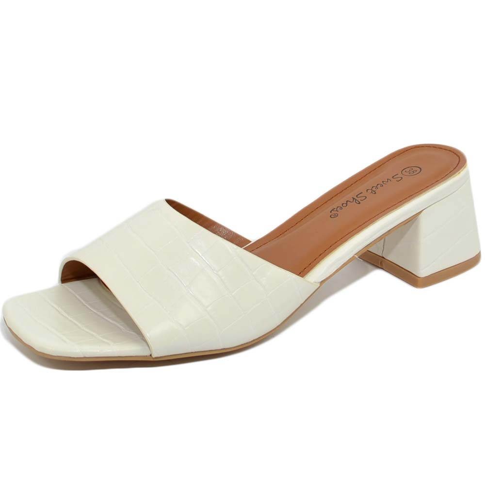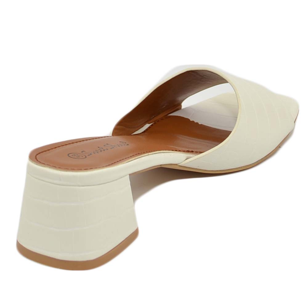 SANDALO DONNA SABOT BIANCO PITONATO A PUNTA QUADRATA CON FASCETTA E TACCO COMODO ANNI 30 4 CM MODA CHIC