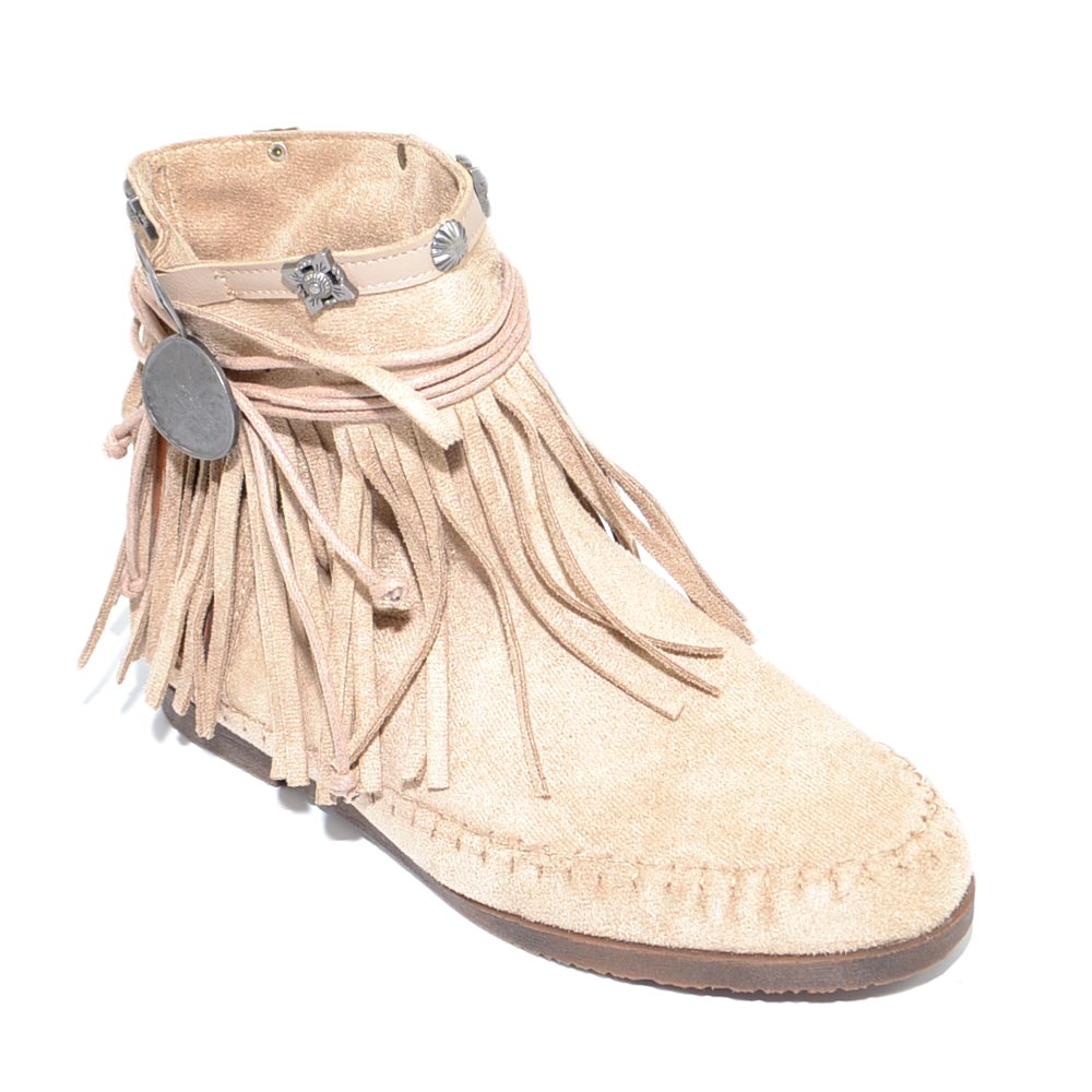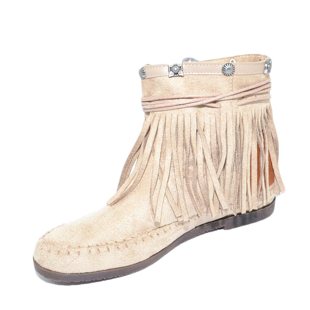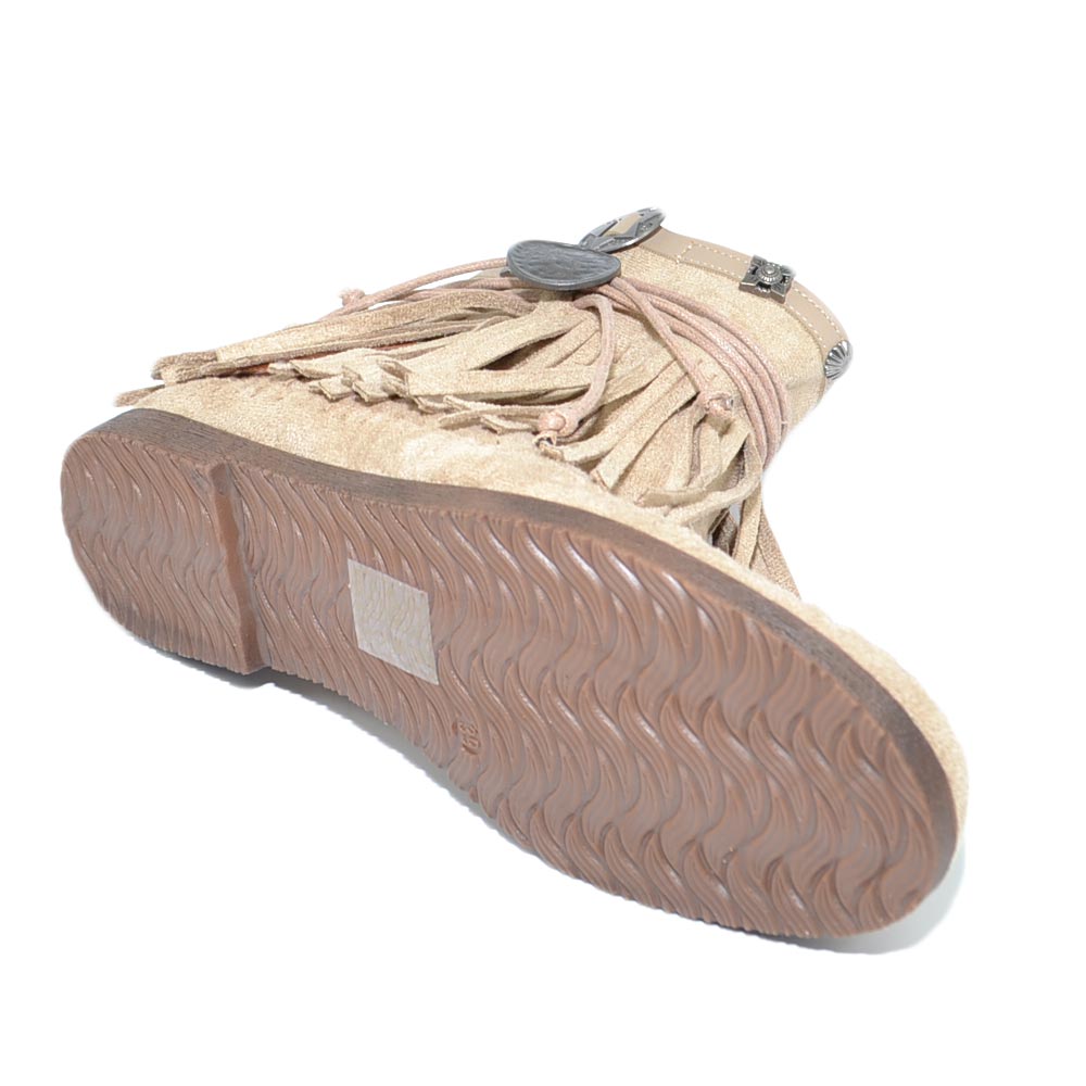 Stivaletti donna estivi indianini beige freschi con frange borchie fondo in gomma e paglia comode moda