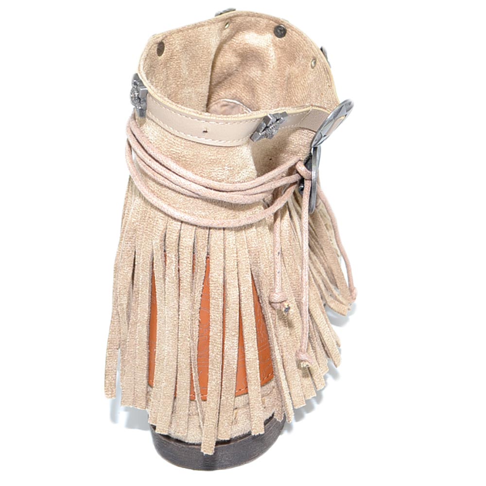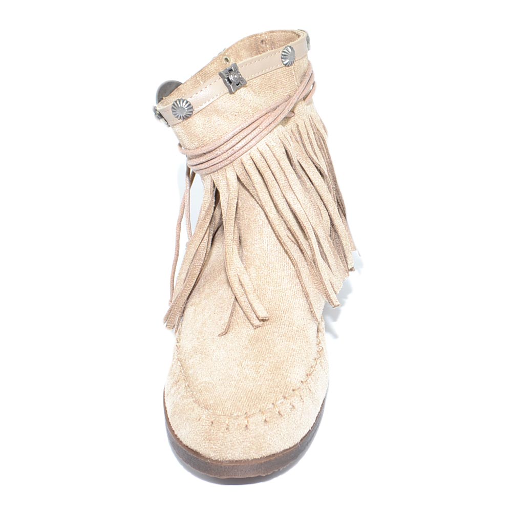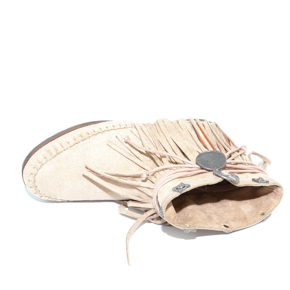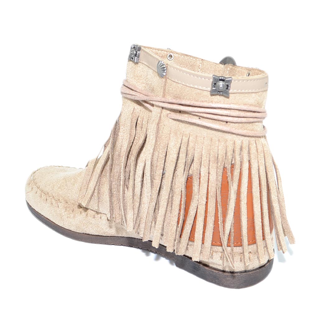 Stivaletti donna estivi indianini beige freschi con frange borchie fondo in gomma e paglia comode moda