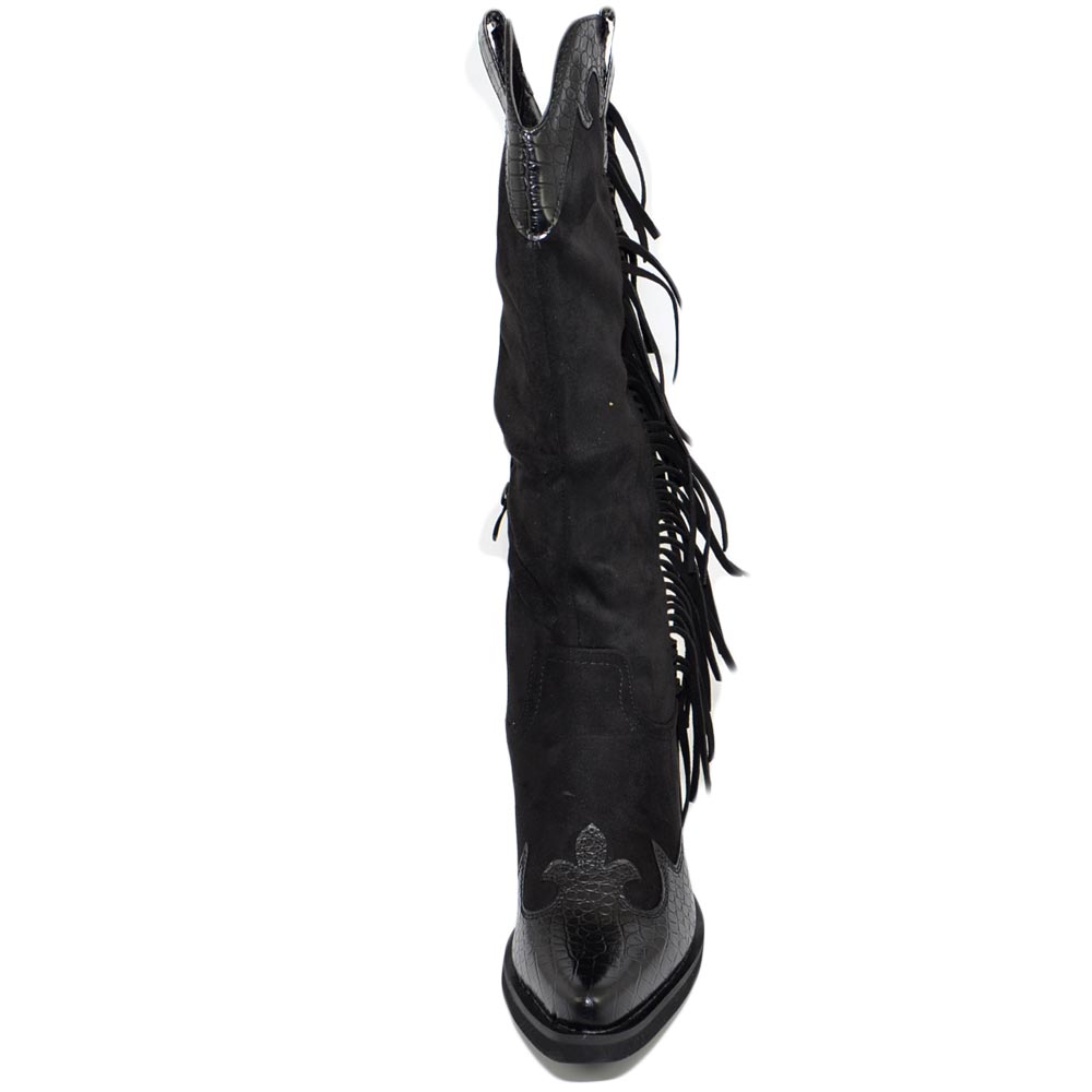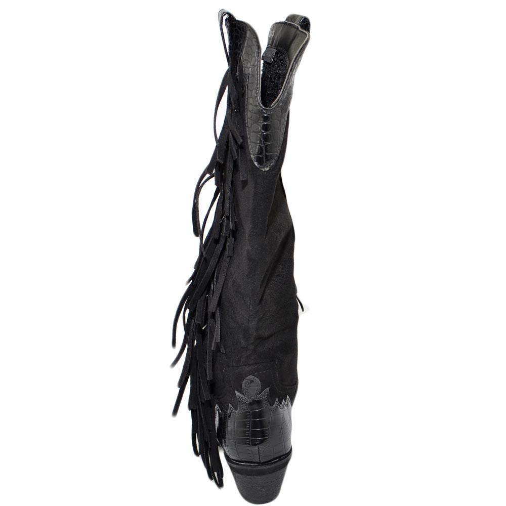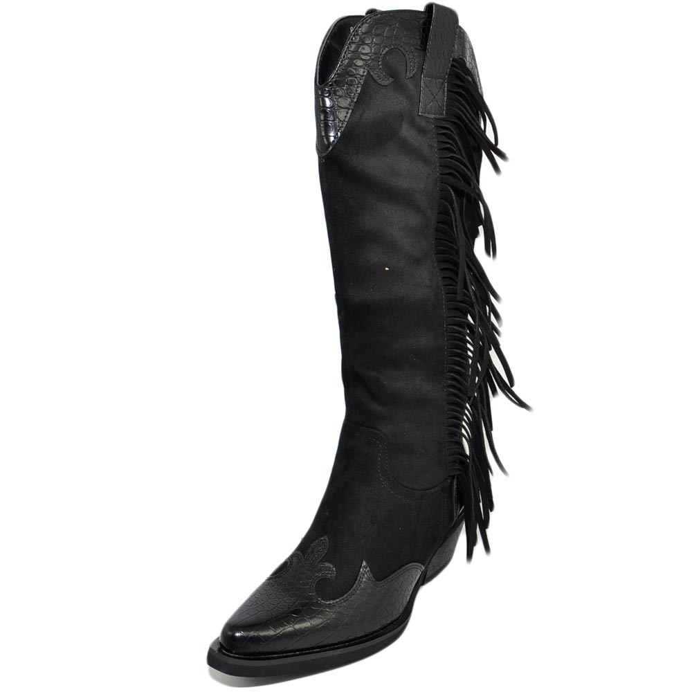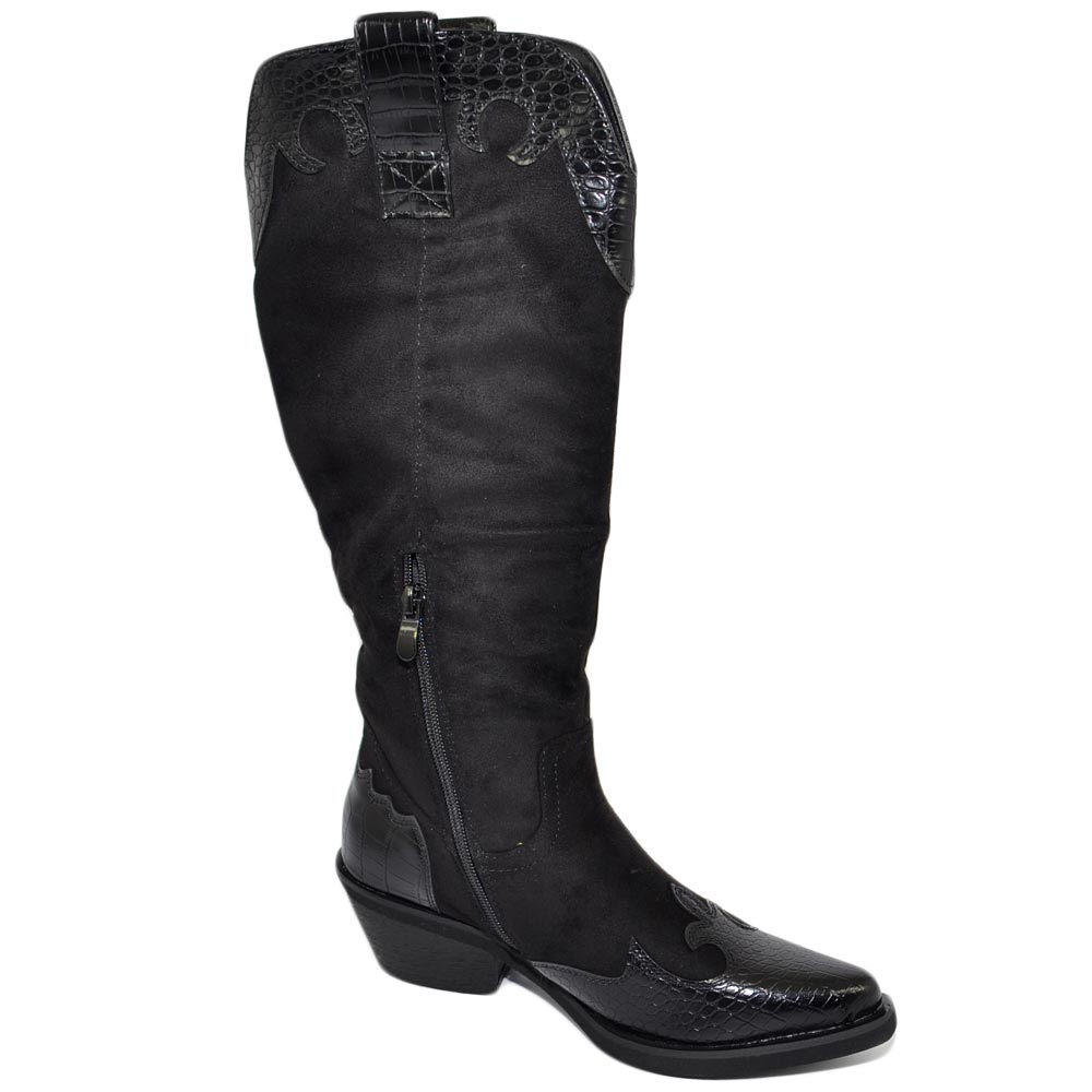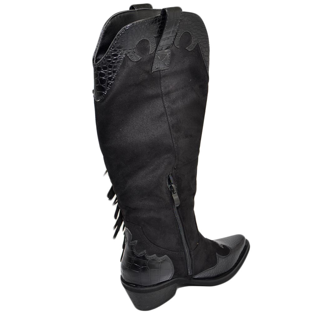 Stivali donna camperos texani stile western nero fantasia astratta pelle su camoscio tinta unita sopra ginocchio zip