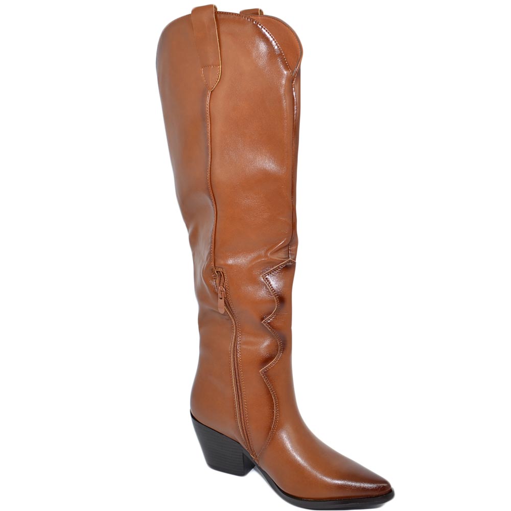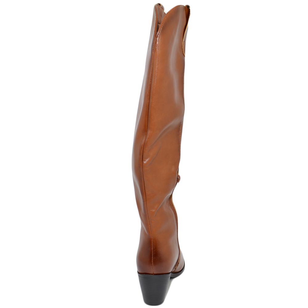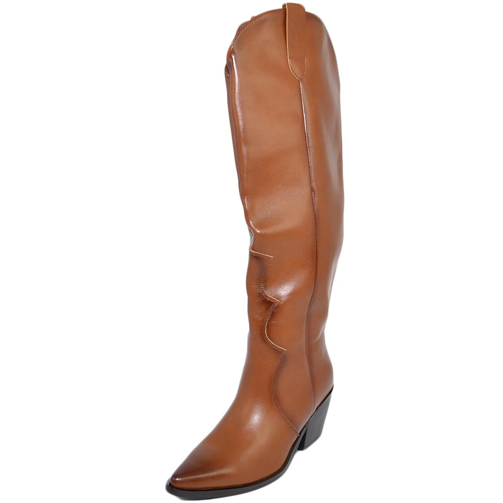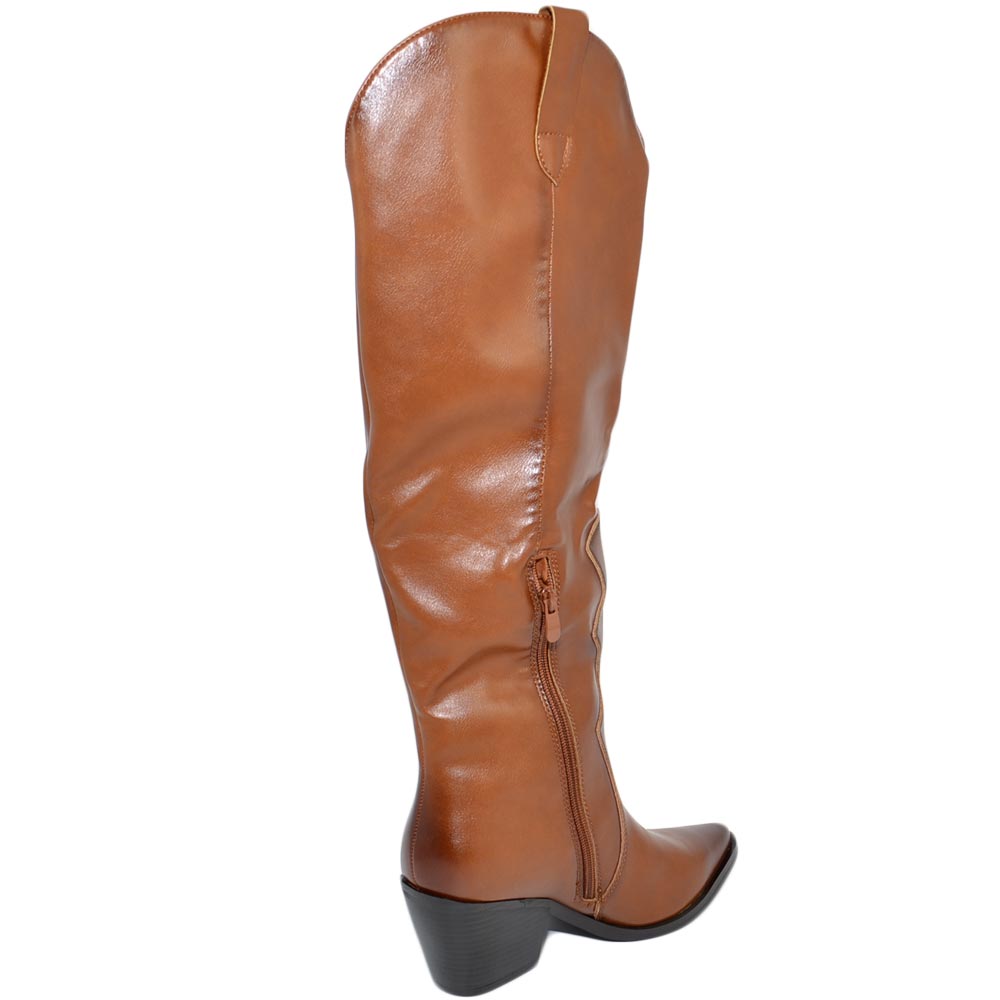 Stivali texani texani donna marroni rigidi al ginocchio tacco basso comodi lisci con scollo a V moda camperos