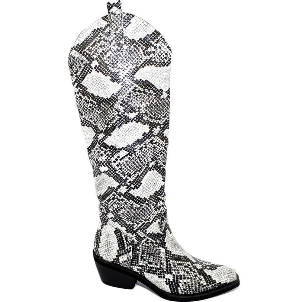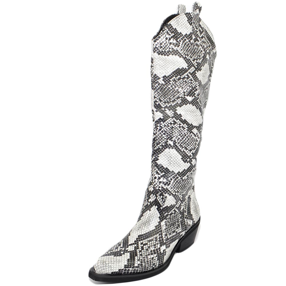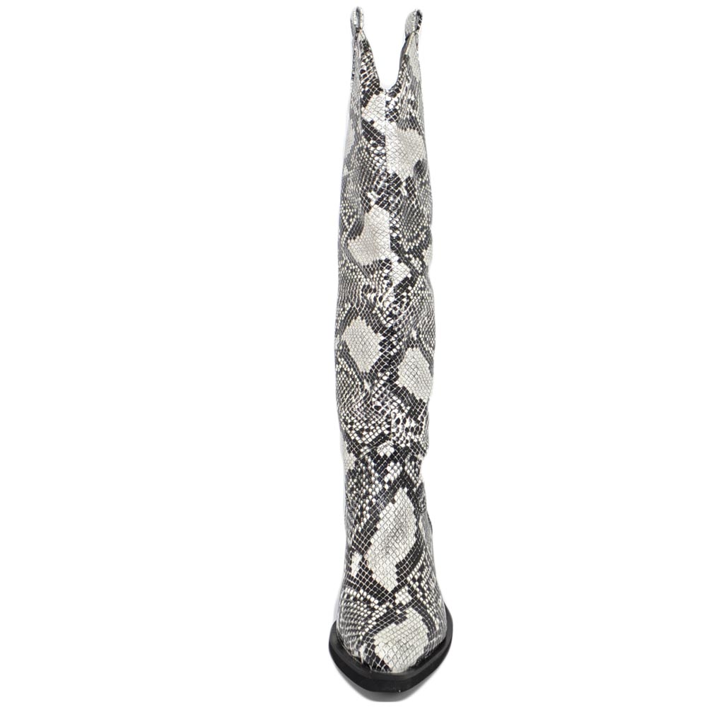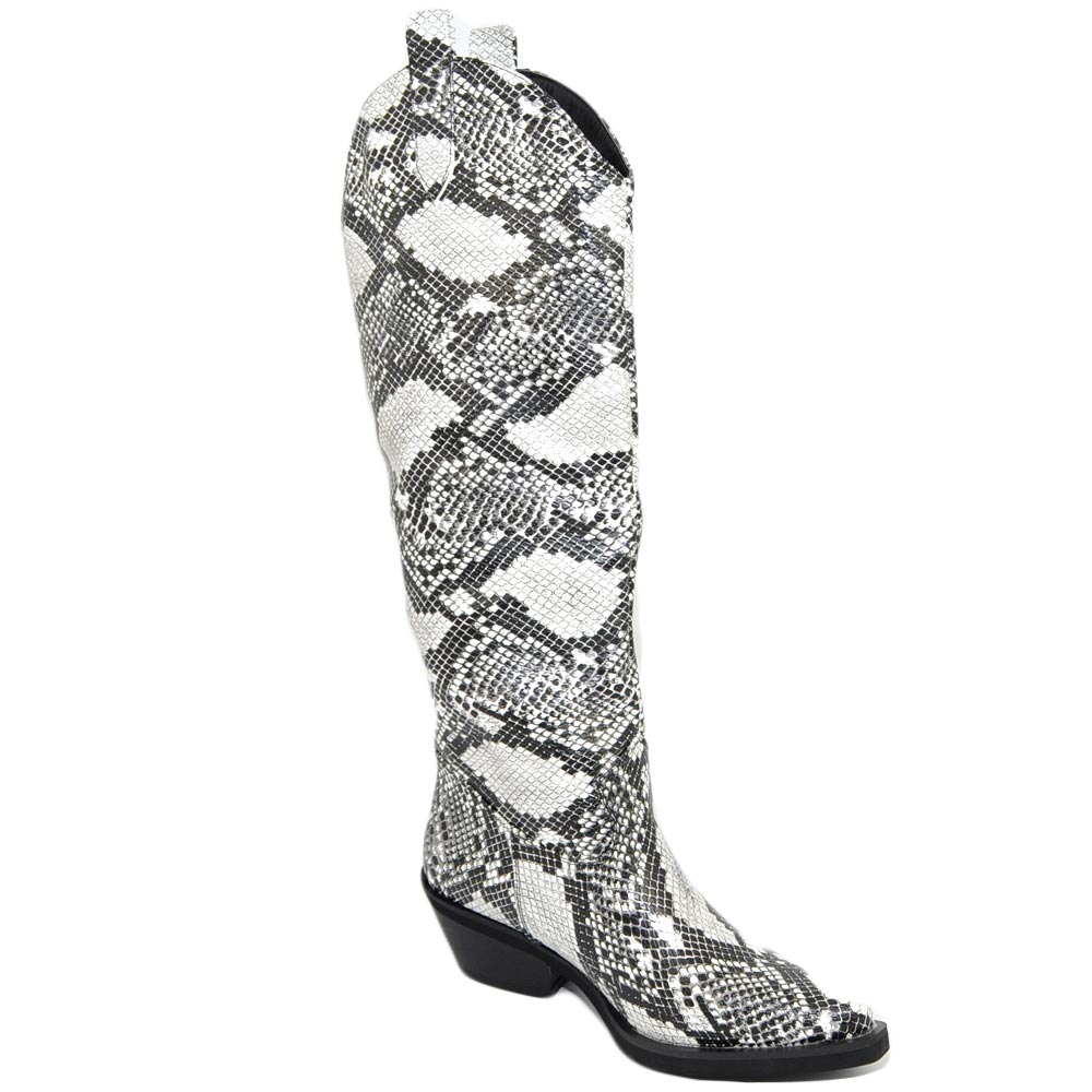 Camperos alti da donna nero pitonato bianco fino al ginocchio a punta stile texano moda cowboy tendenza moda spazzolati