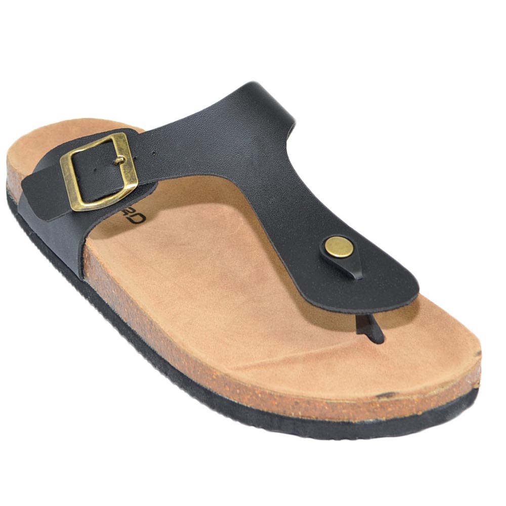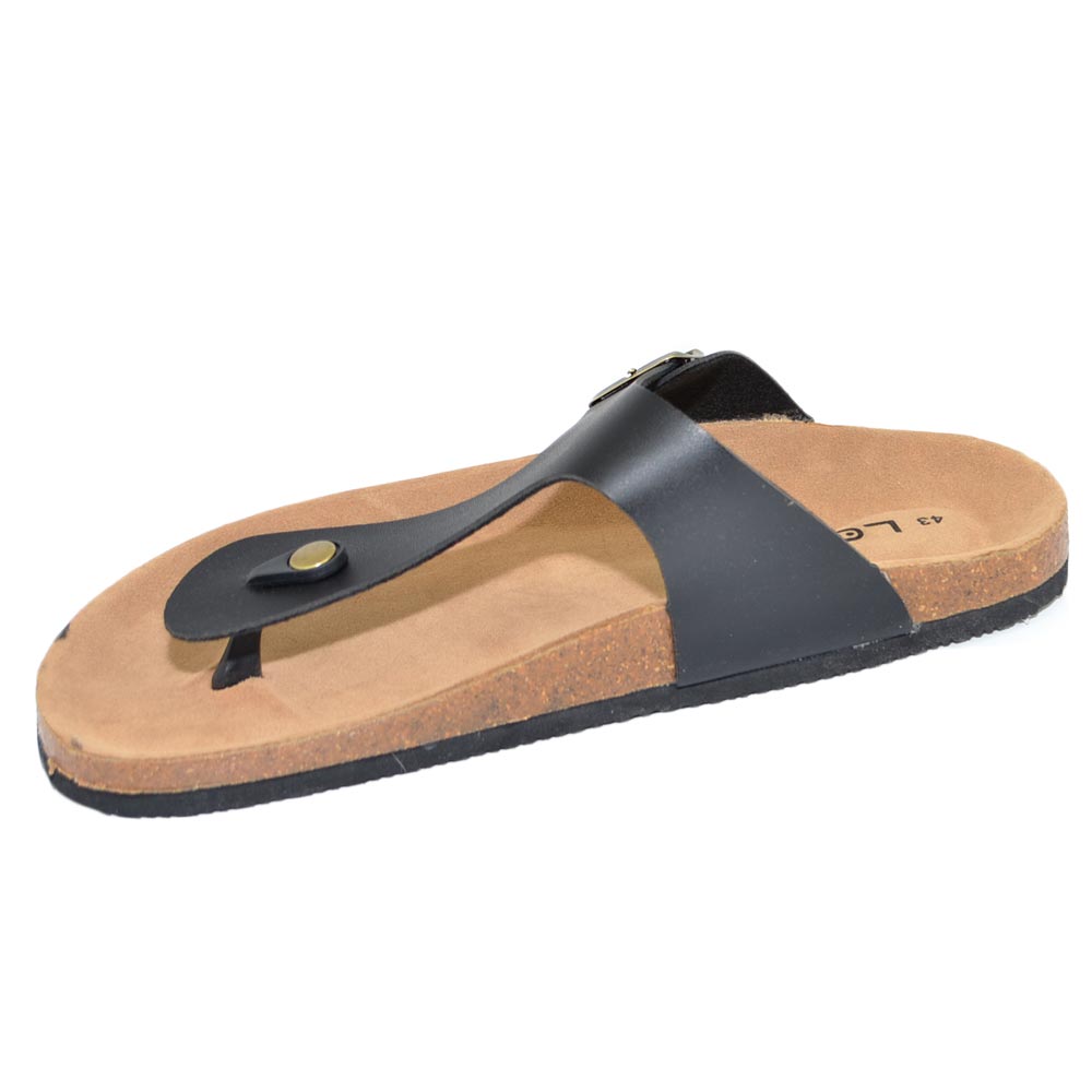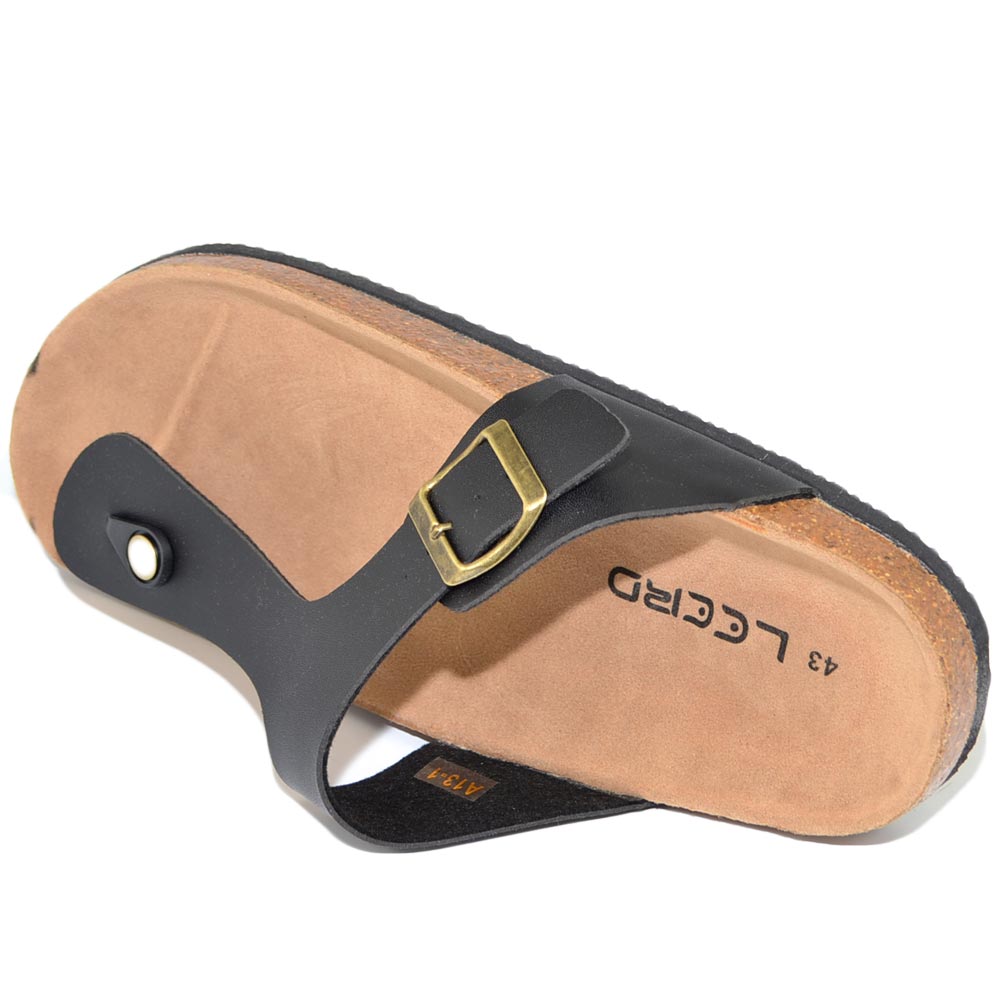 Sandalo uomo scarpe estivo nero in pelle infradito flat pantofole aggrappanti morbide made in italy moda