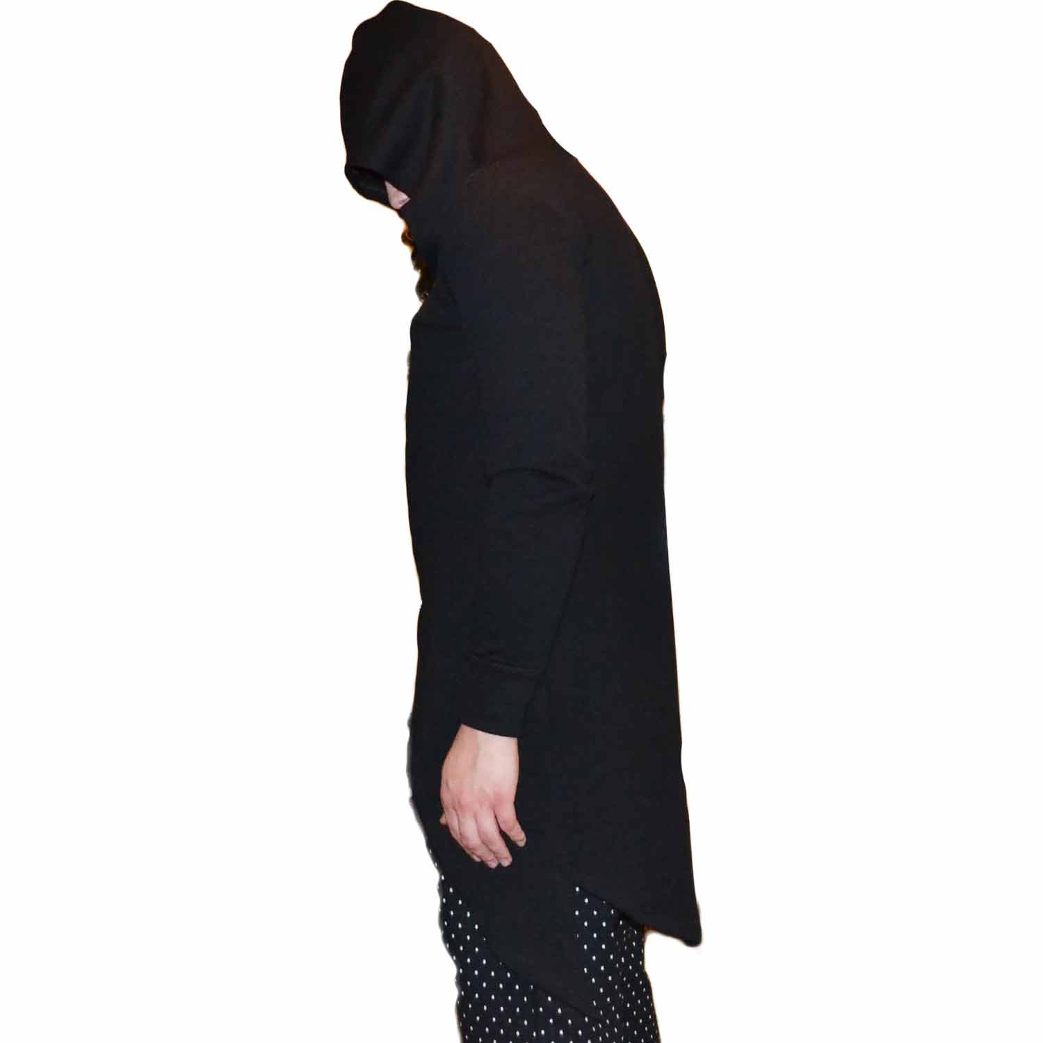 felpone lungo pinguino fashion zip nero uomo cappuccio