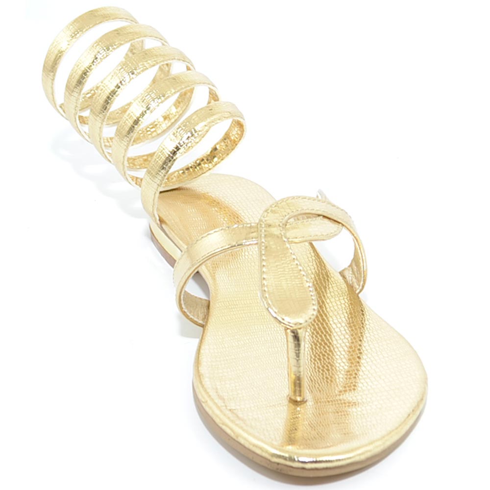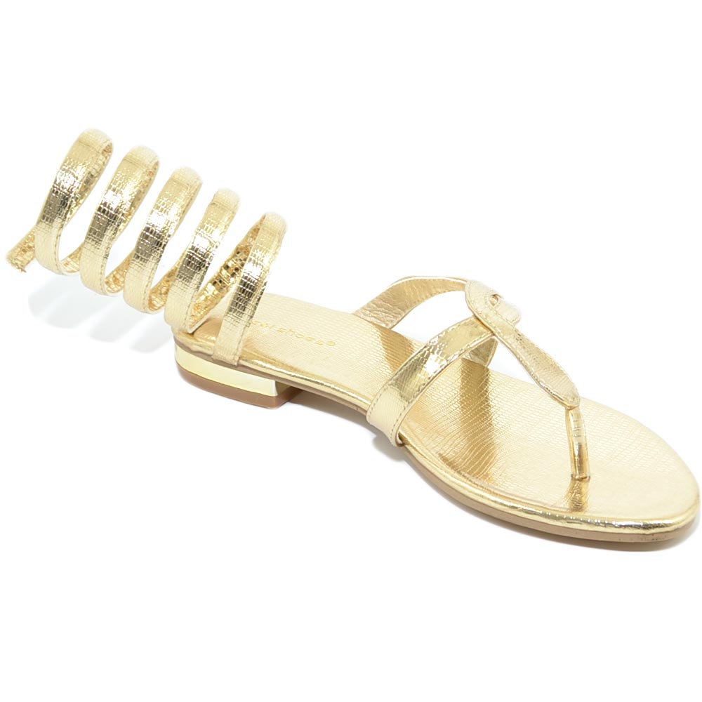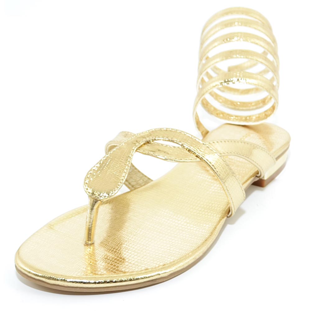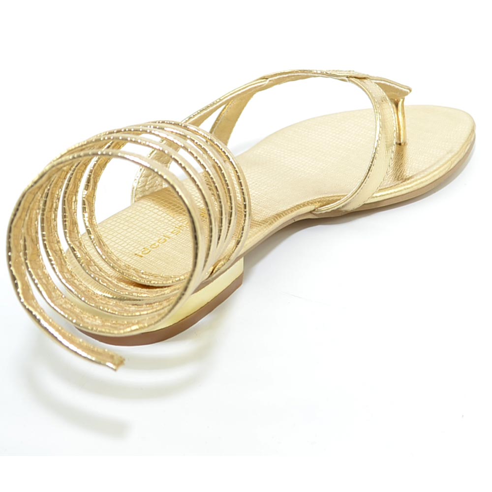 Sandalo basso donna oro estivo alla schiava infradito serpendito gladiatore regolabile moda formentera glamour
