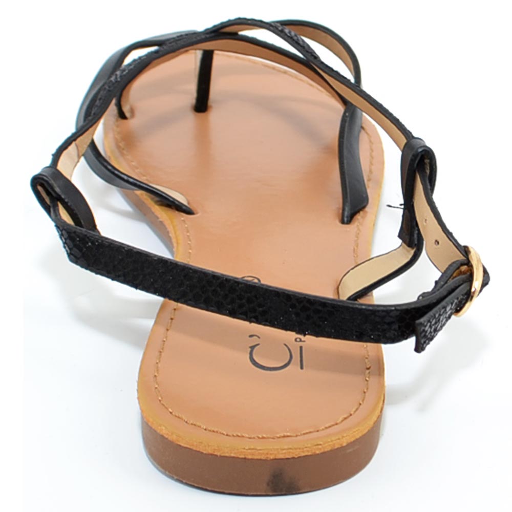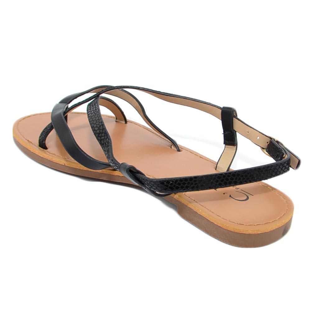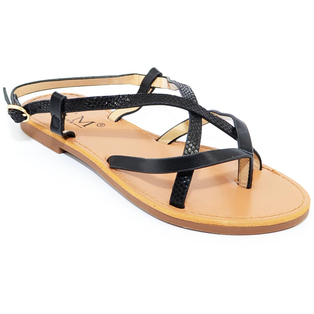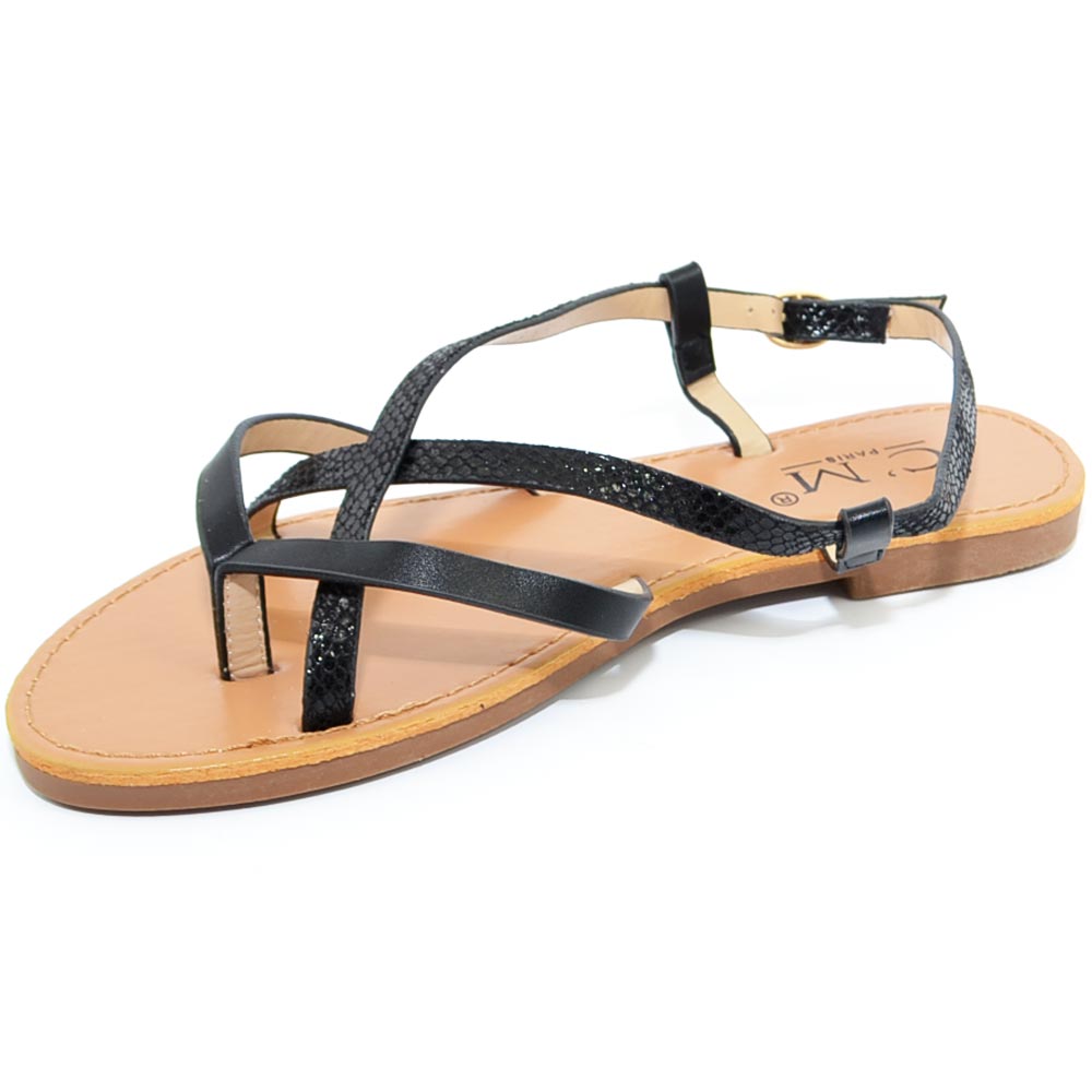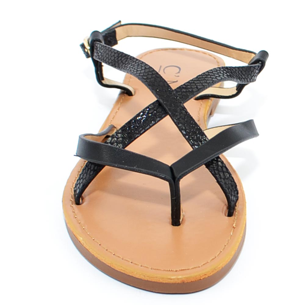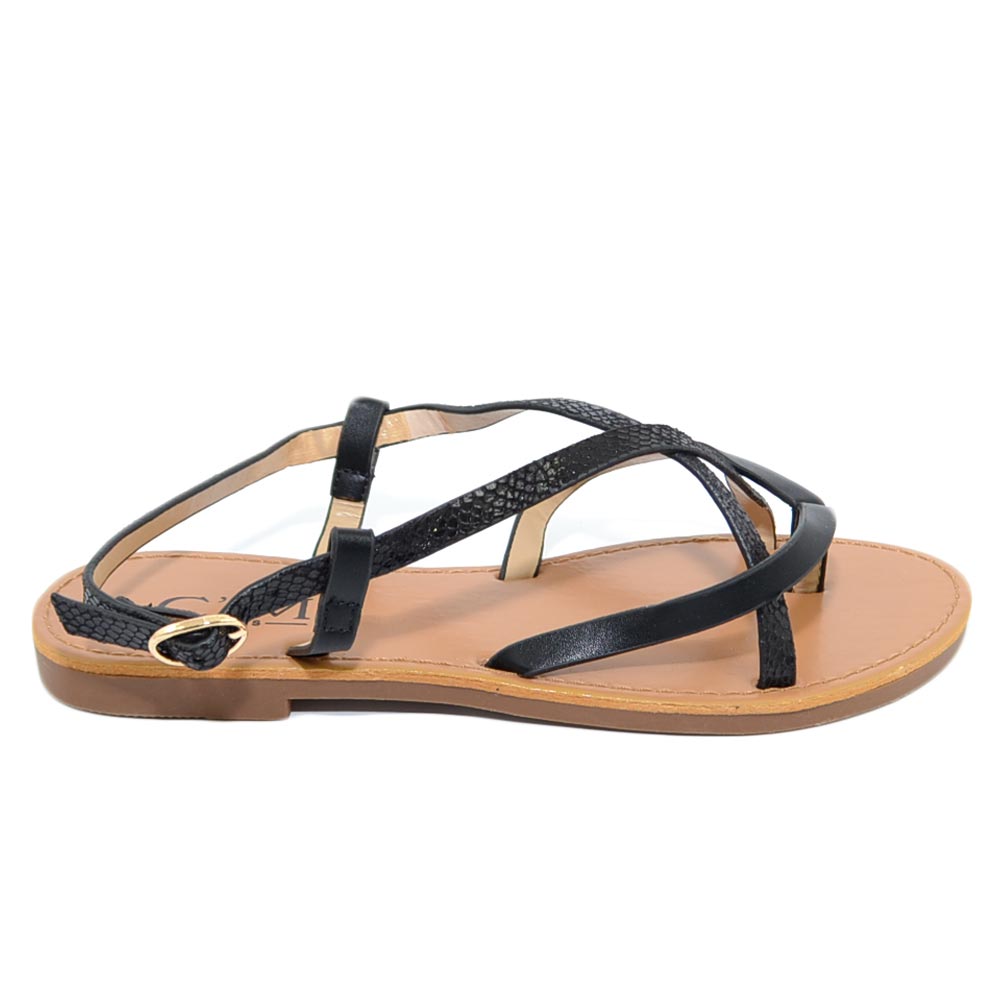 Sandalo basso positano donna infradito con fascetta incrociata nero cinturino alla caviglia antiscivolo linea basic chic