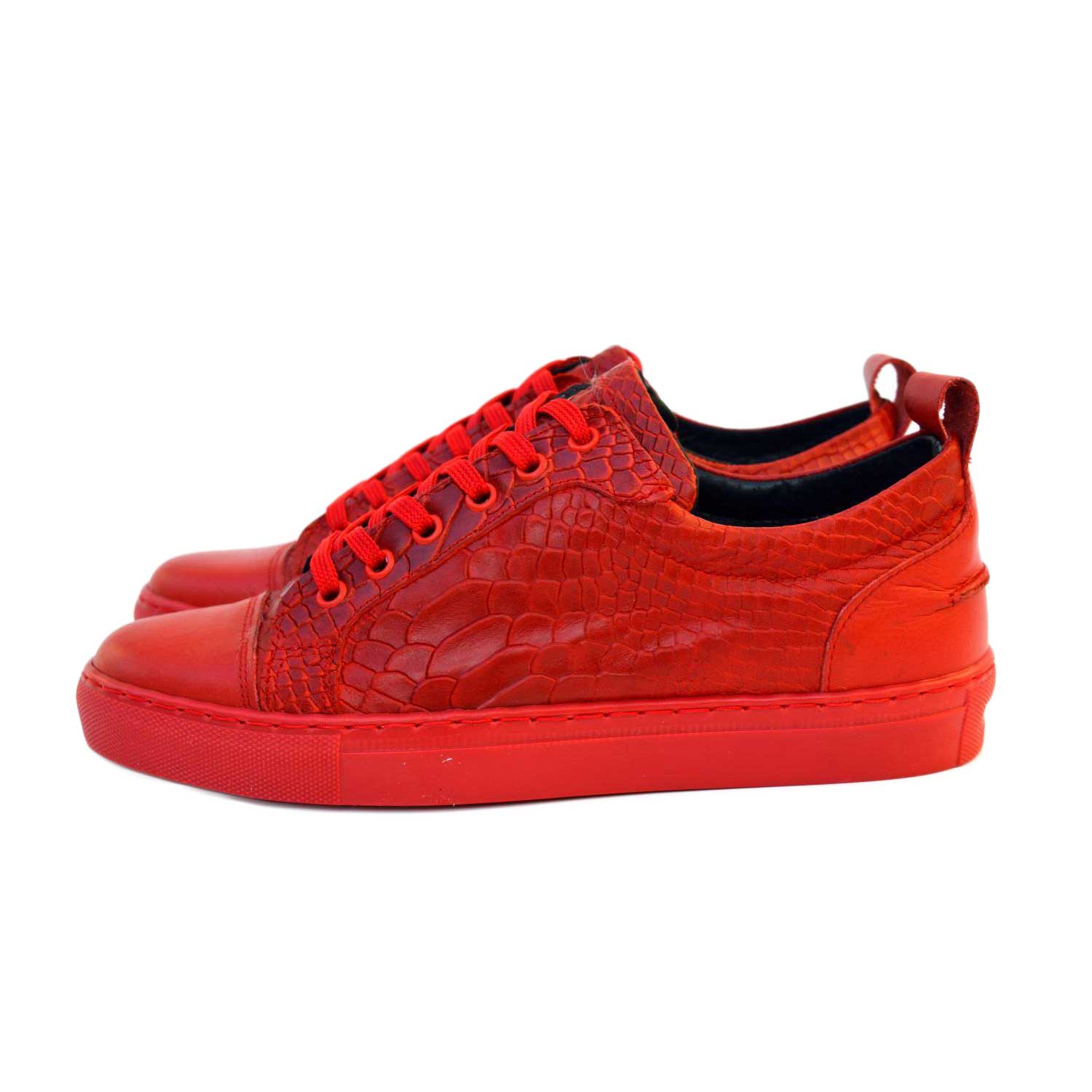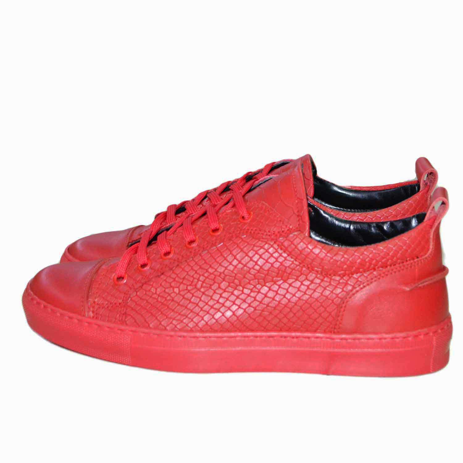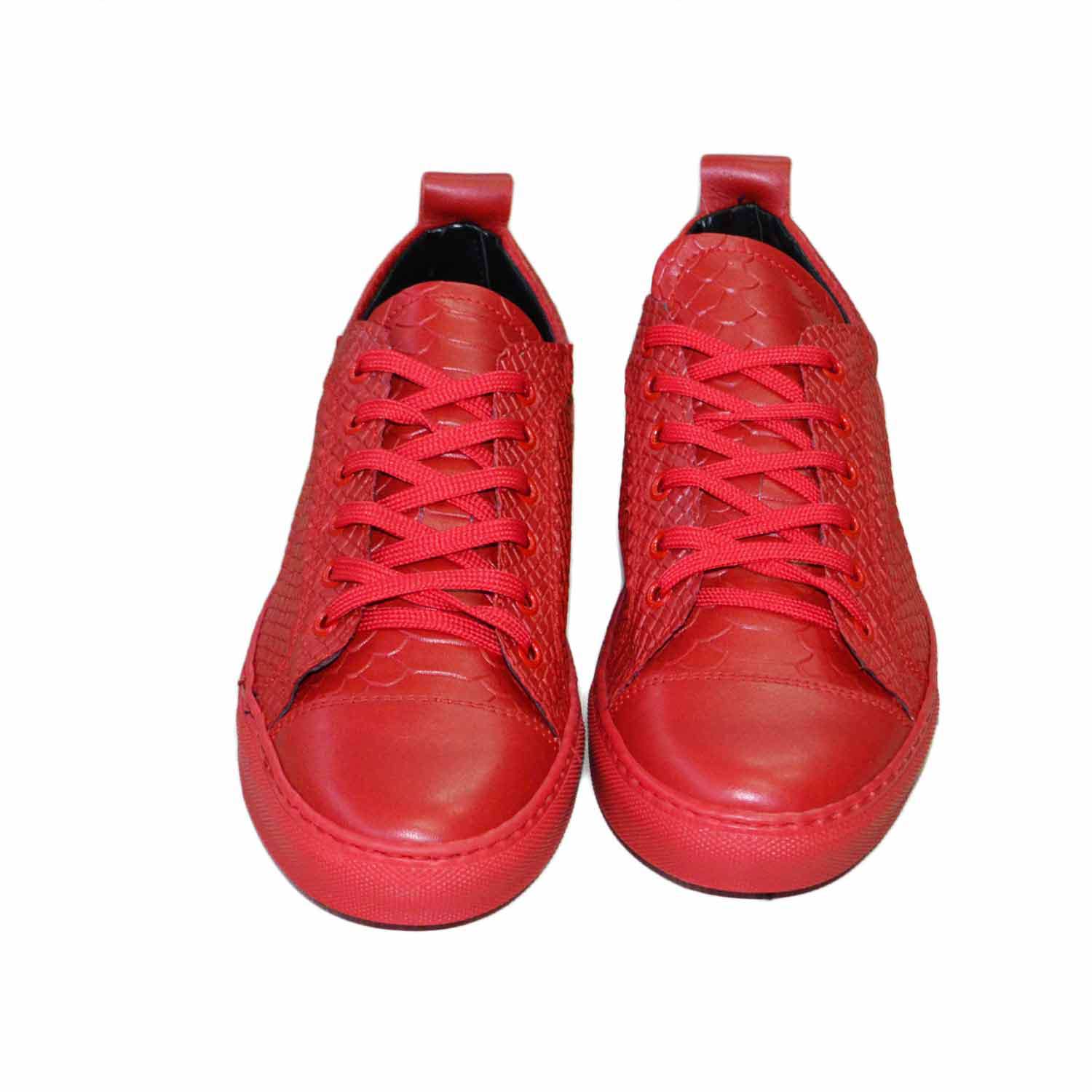 sneakers bassa pelle rosso squamata con punta di pelle london vera pelle