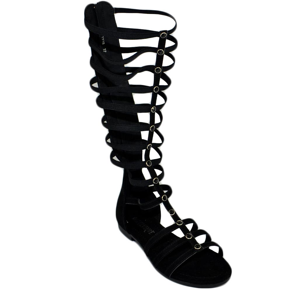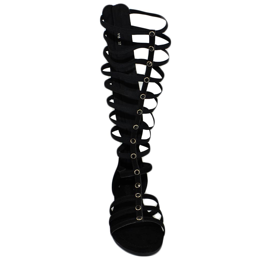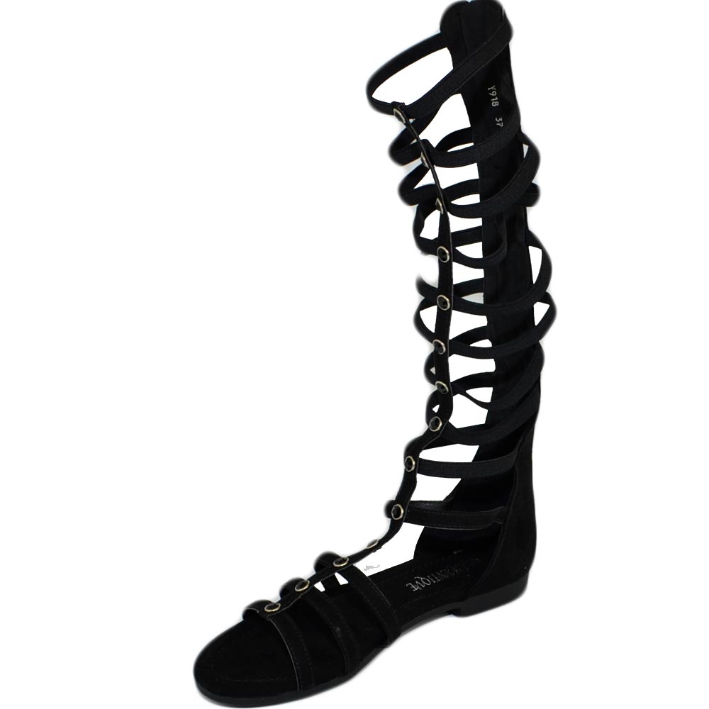Stivali sandali alla schiava donna nero elastici borchie regolabile al polpaccio con zip facili da infilare gladiatori