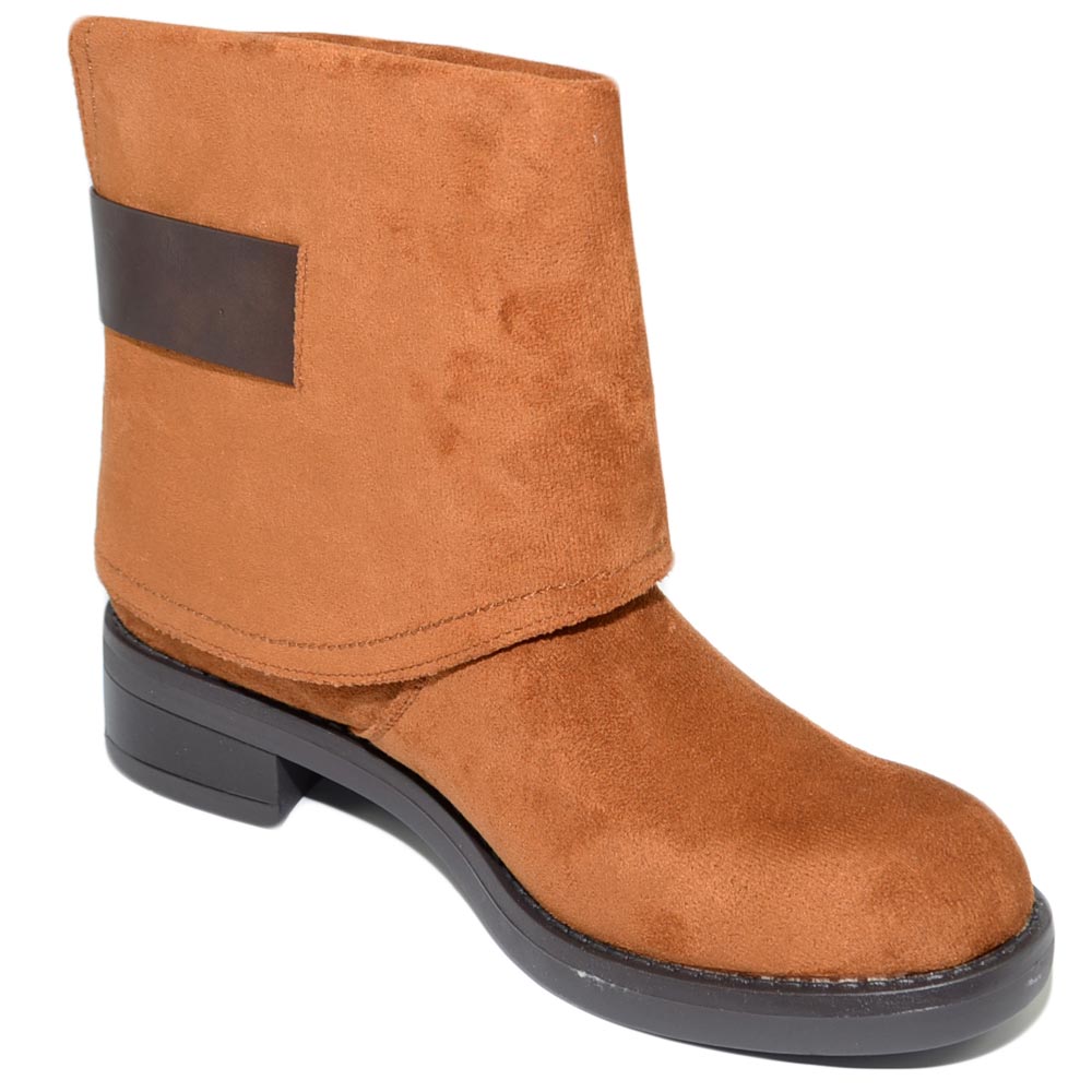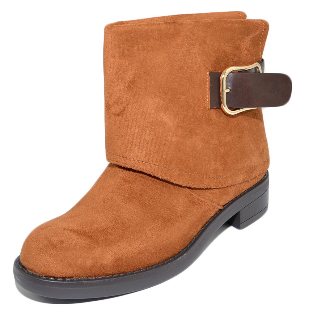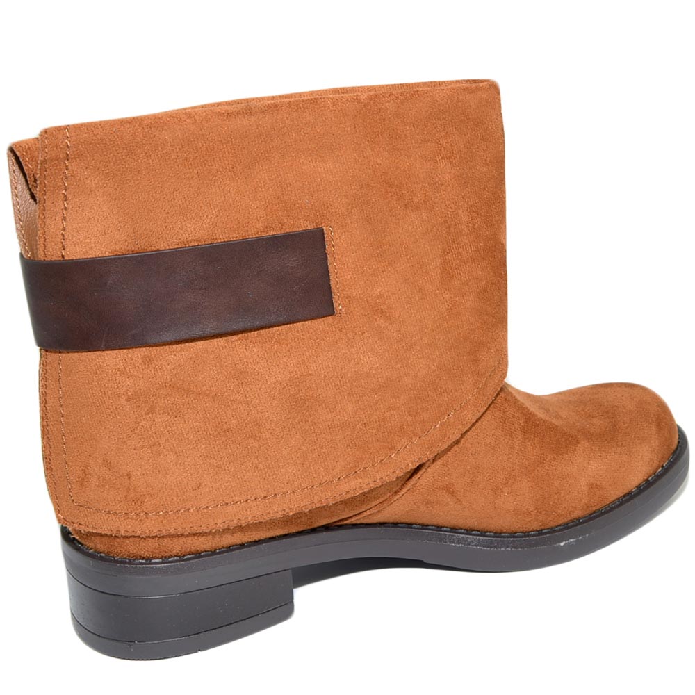 Stivali bassi donna morbidi biker in camoscio cuoio risvolto e fibbia in contrasto fondo comodo antiscivolo moda glamour