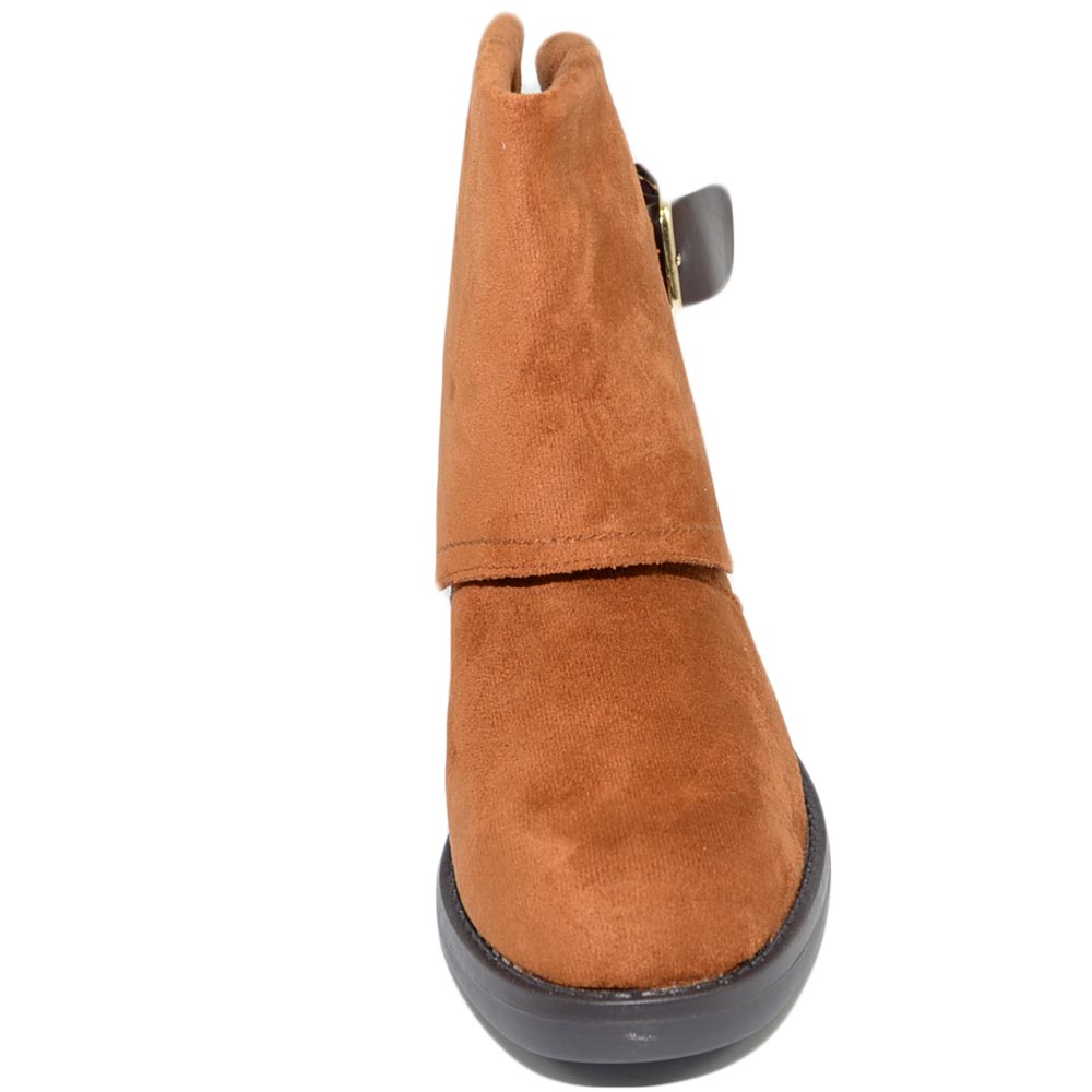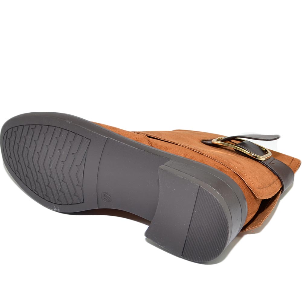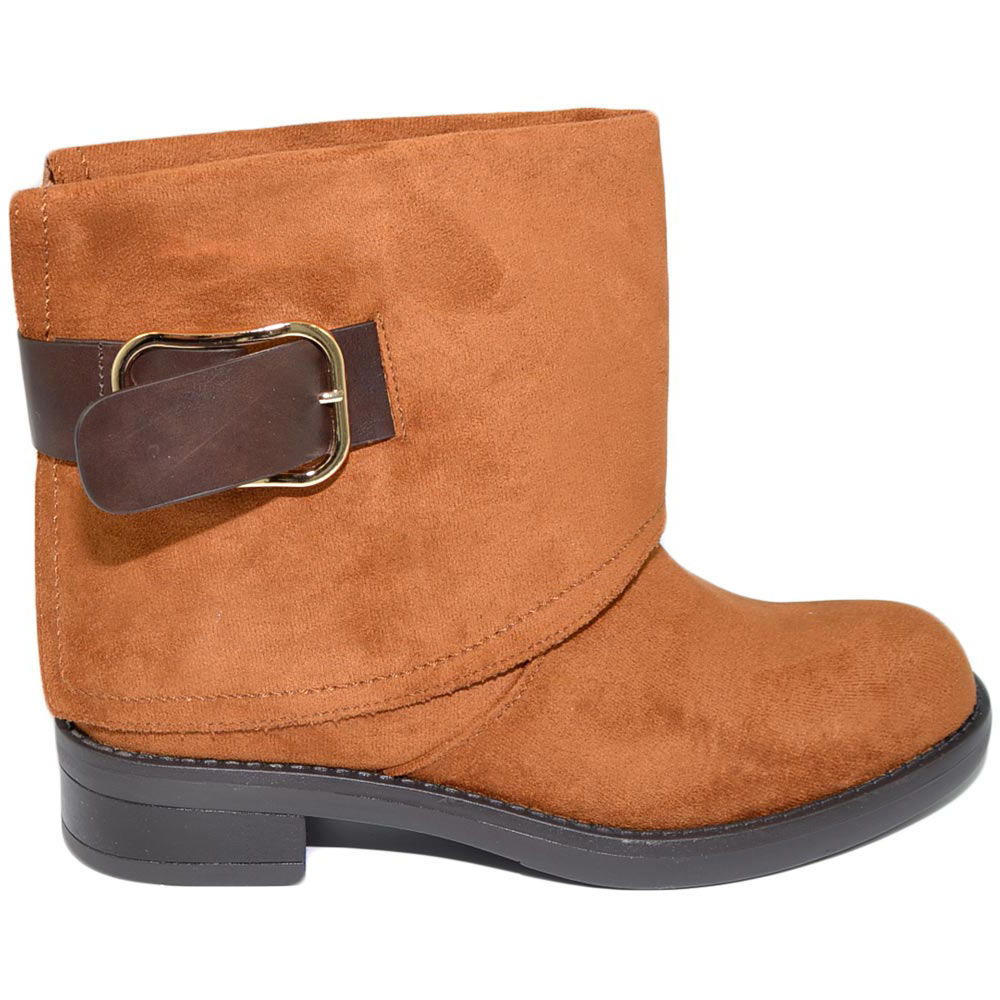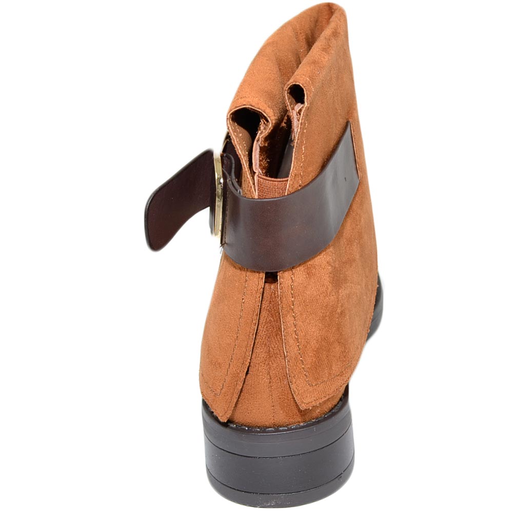 Stivali bassi donna morbidi biker in camoscio cuoio risvolto e fibbia in contrasto fondo comodo antiscivolo moda glamour