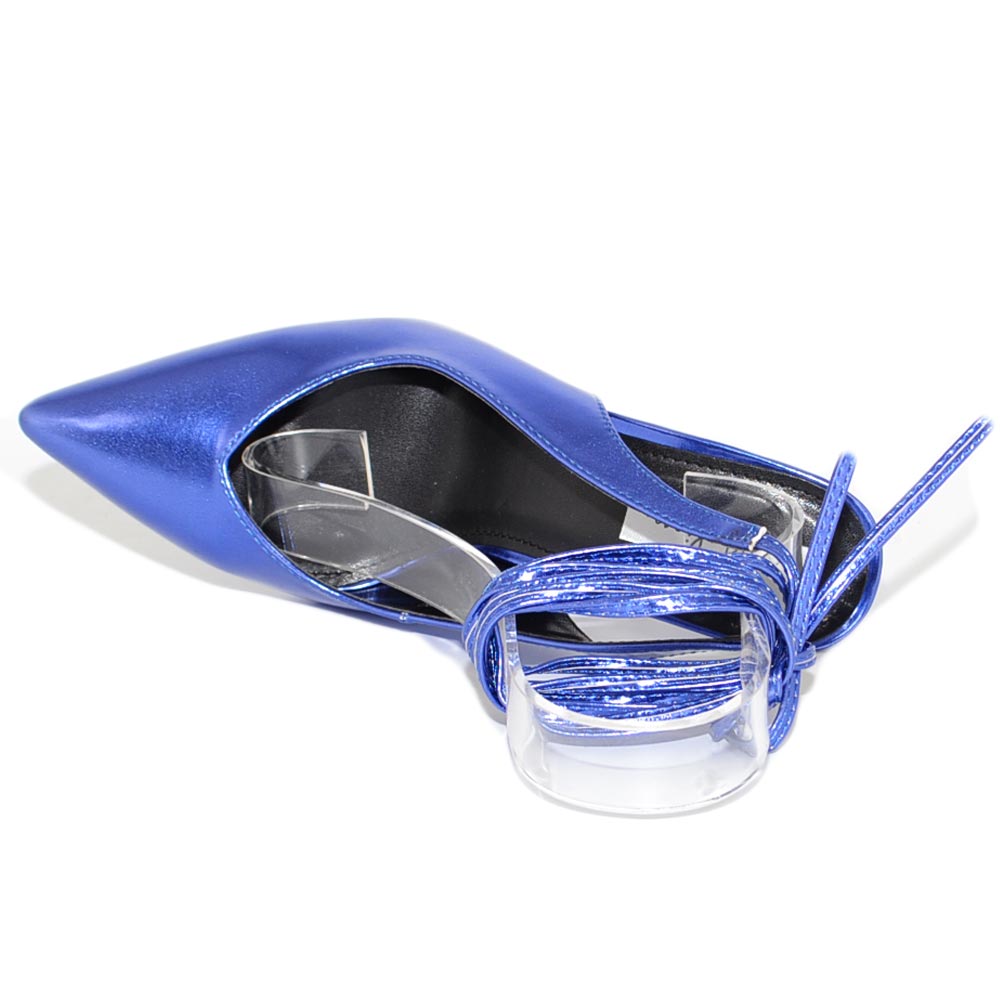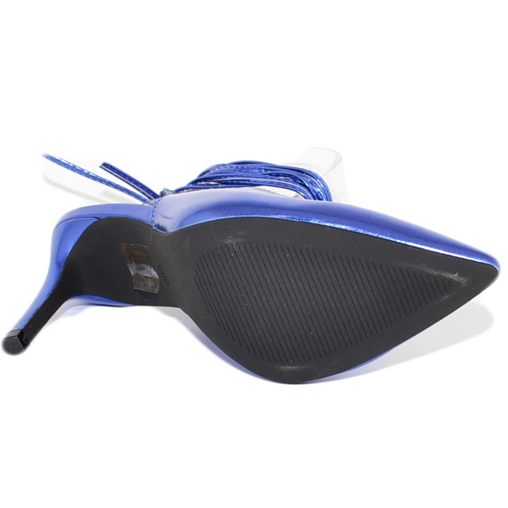 Scarpa tacco donna blu elettrico sandalo punta tallone scoperto allacciatura schiava caviglia lacci scollo v decollete