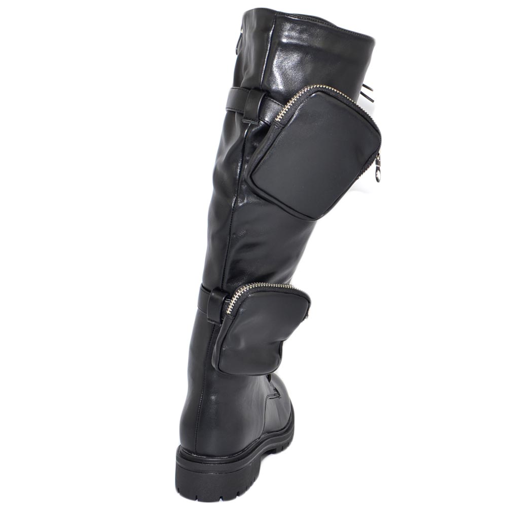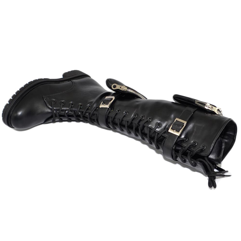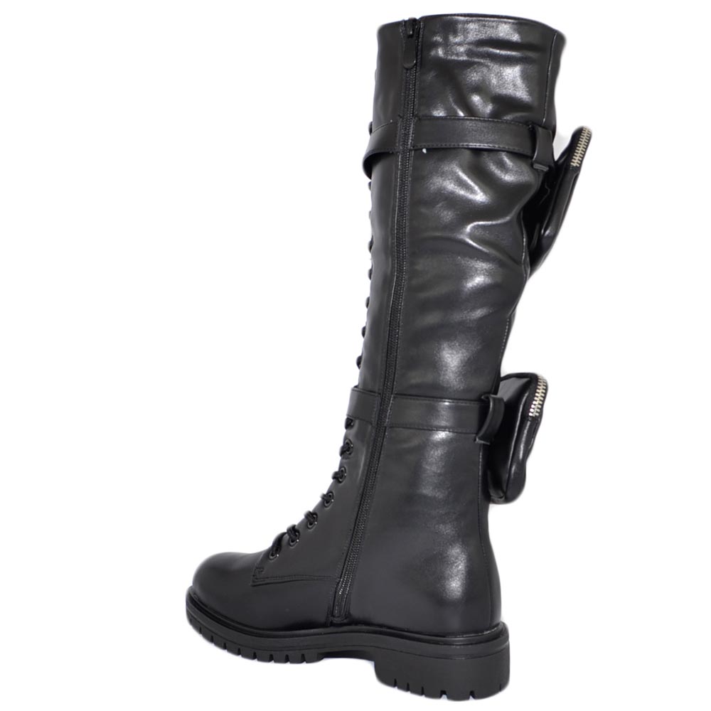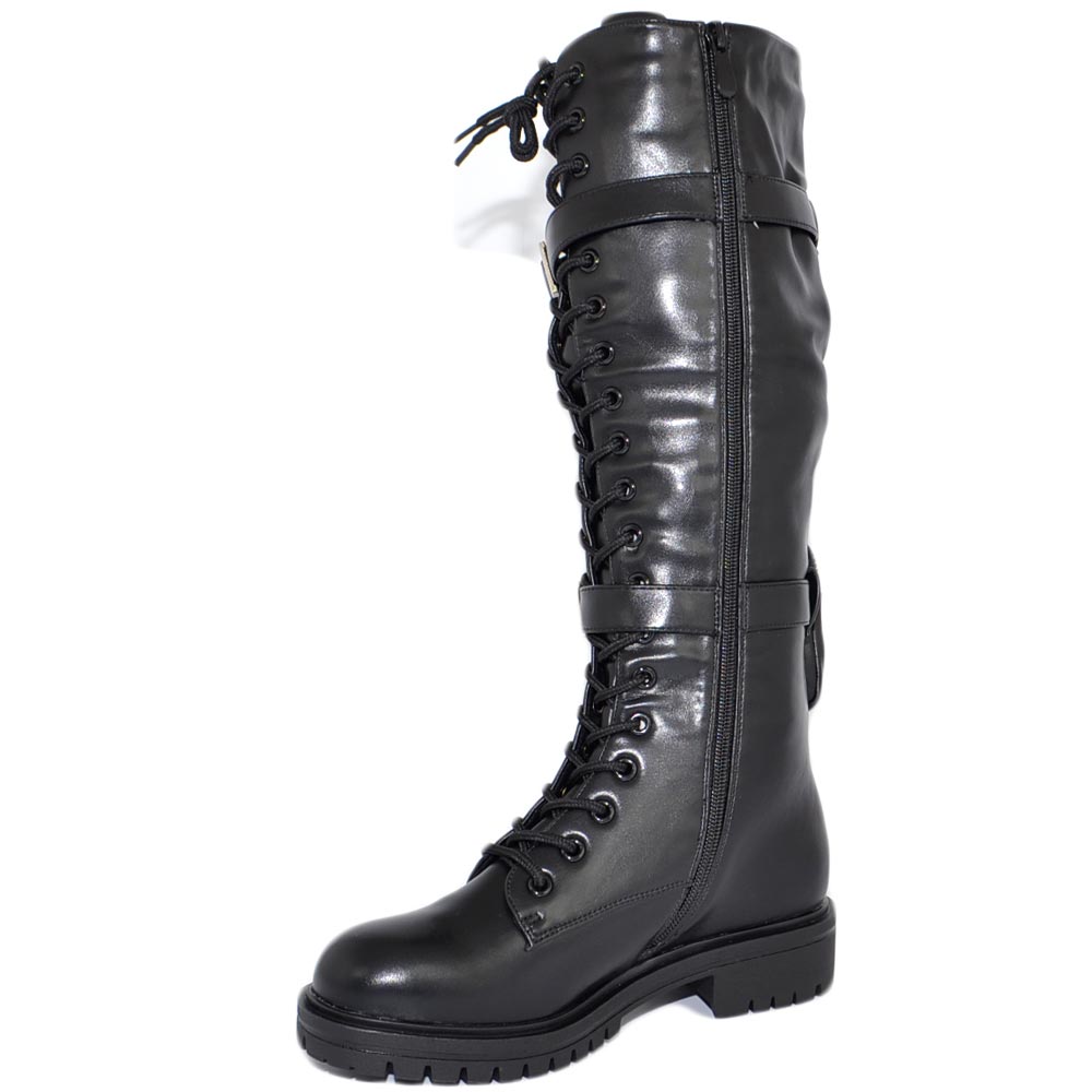 Stivali anfibi donna platform modello chiara doppio taschino zip altezza ginocchio moda street lacci lunghi regolabili